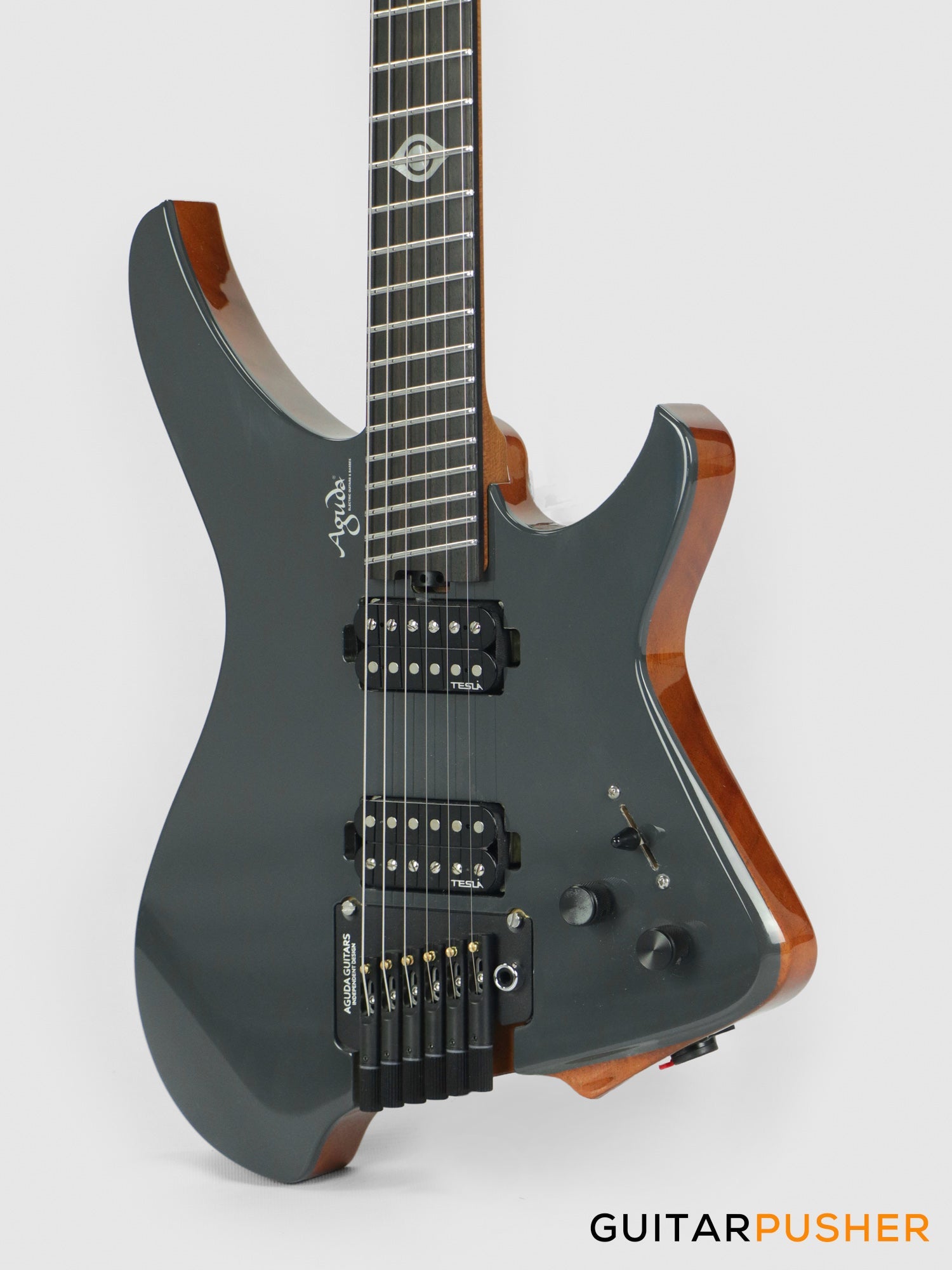 Aguda Black Hole Headless Electric Guitar Mahogany Body Ebony Fretboard - Grey Natural