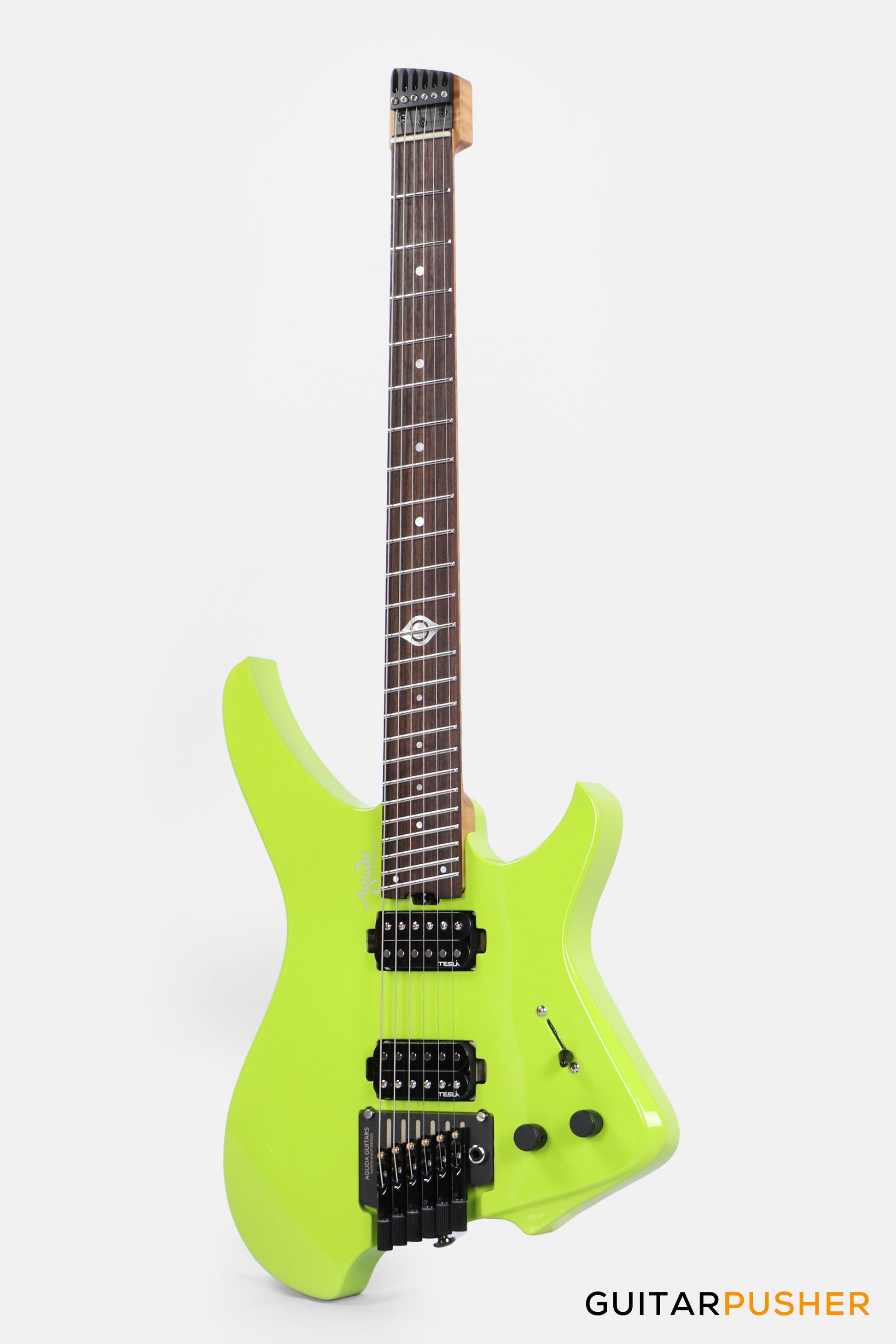 Aguda Black Hole Headless Electric Guitar Mahogany Body Ebony Fretboard - Neon Green
