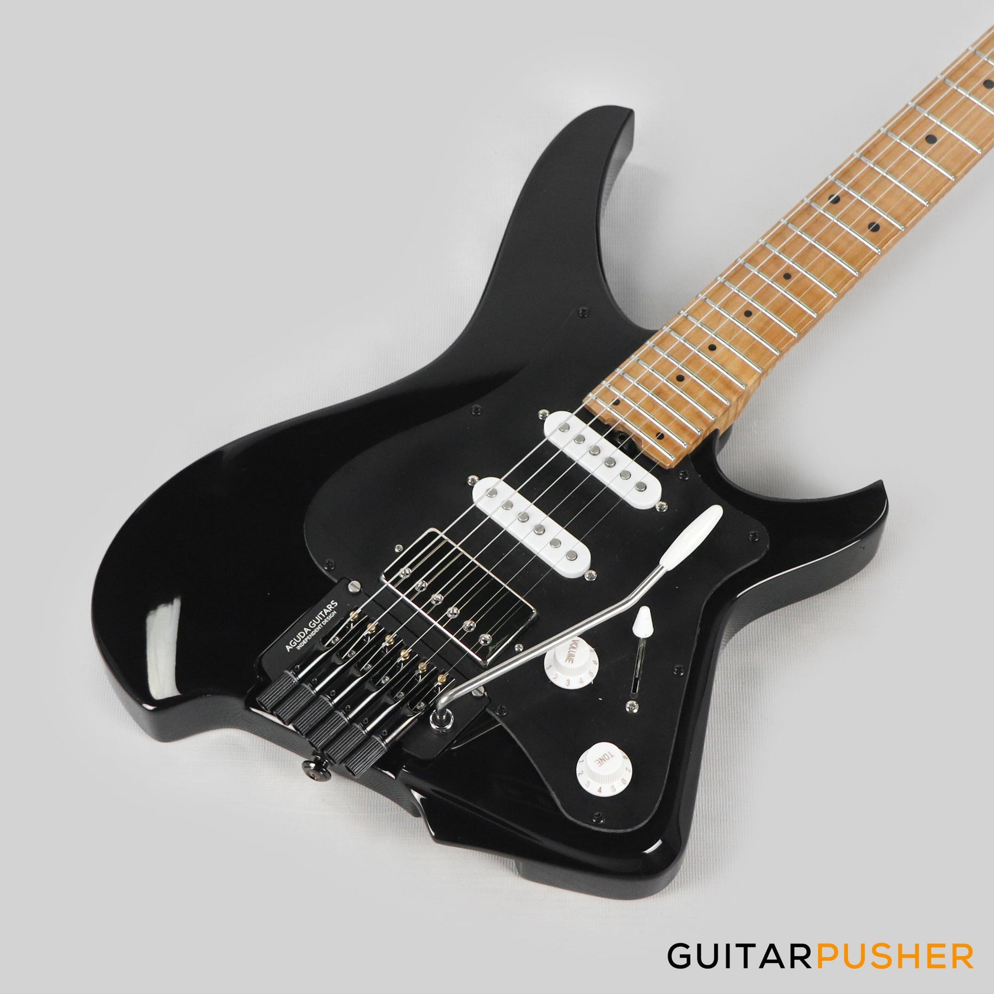 Aguda Musicboy Pro Headless Electric Guitar Alder Body Roasted Maple Fretboard - Gilmour Black w/ Black Pickguard