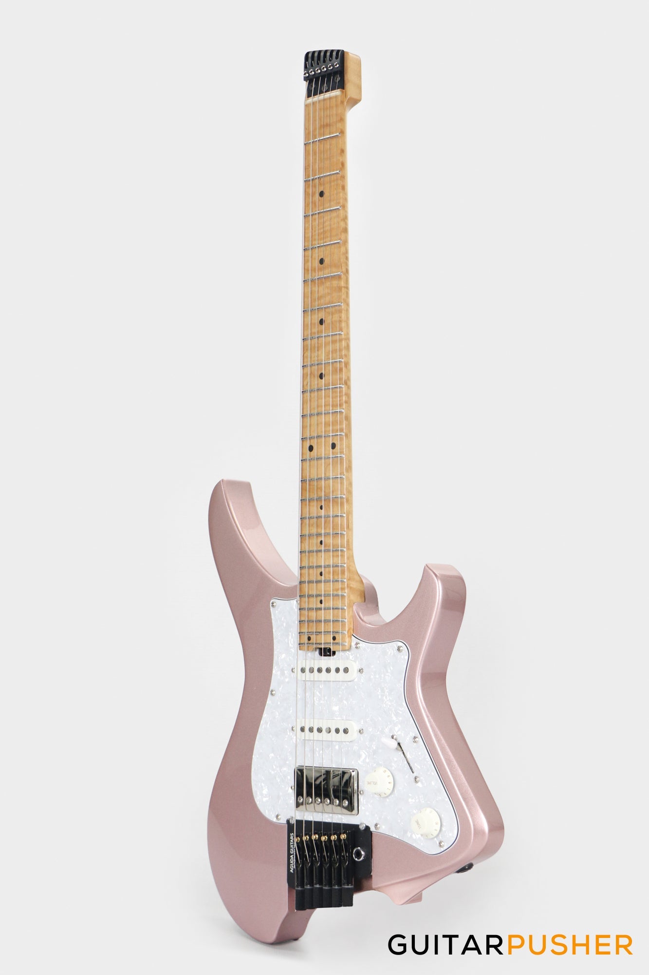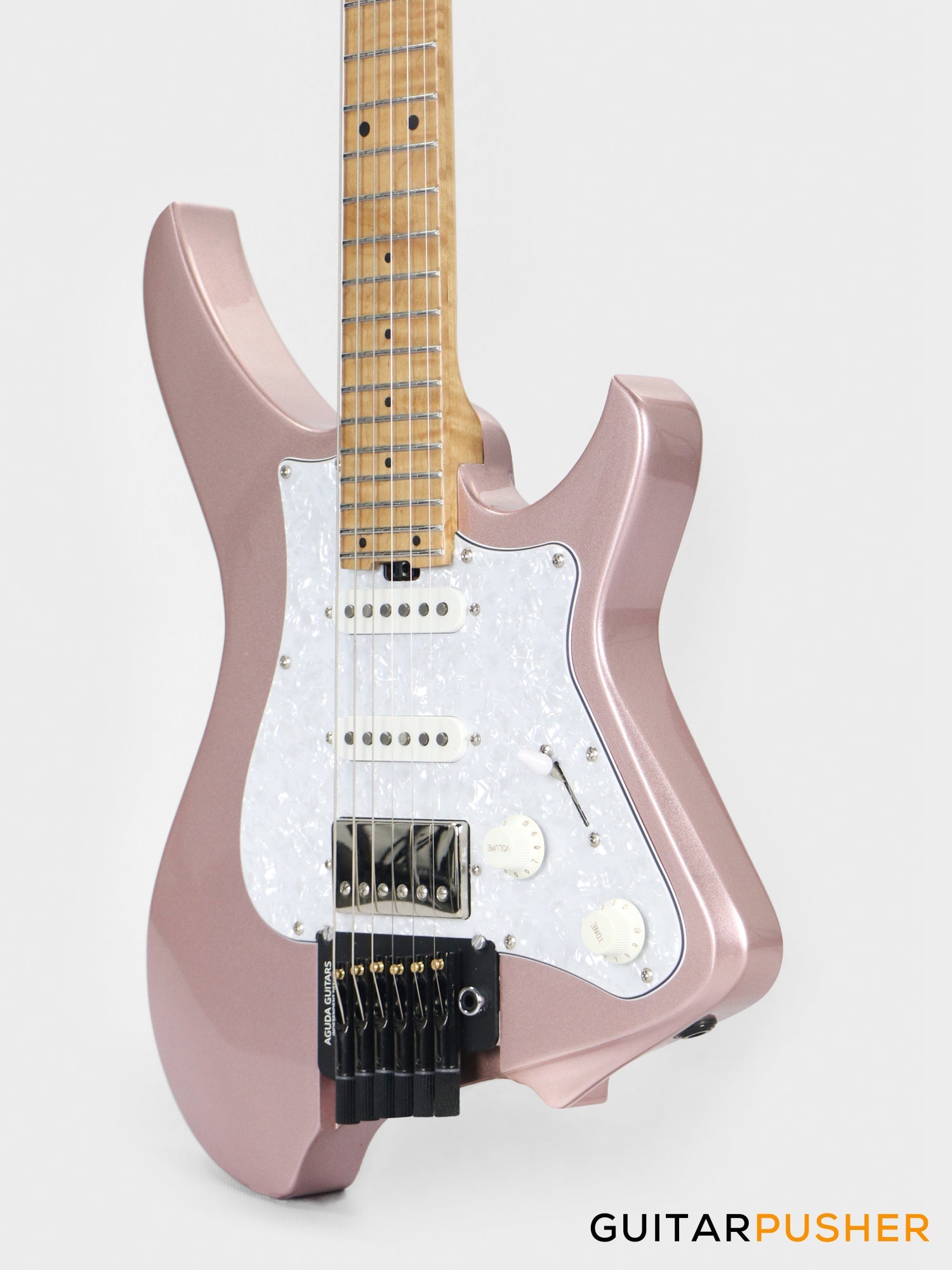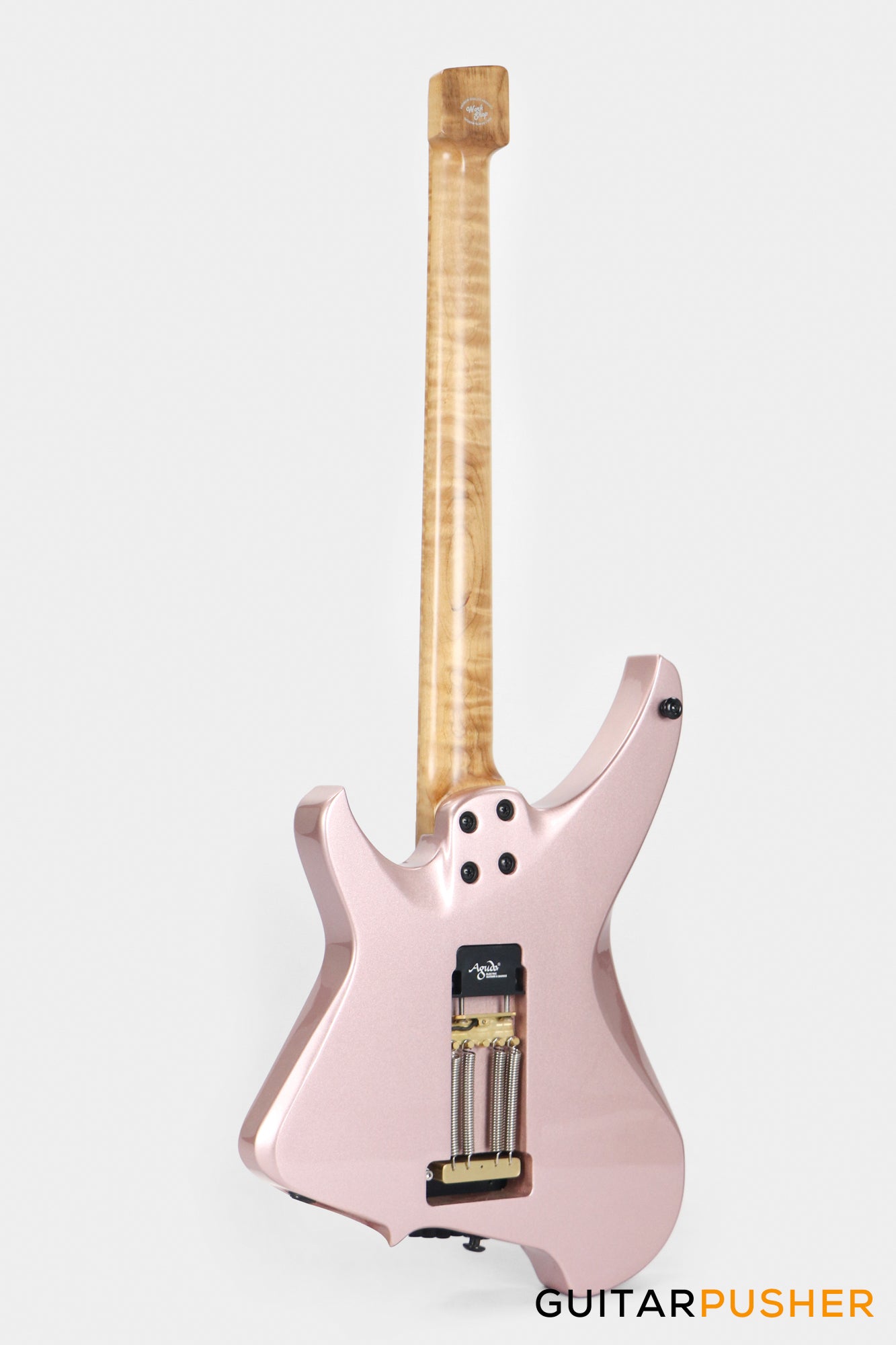Aguda Musicboy Pro Headless Electric Guitar Alder Body Roasted Maple Fretboard - Rose Gold w/ Pearloid Pickguard