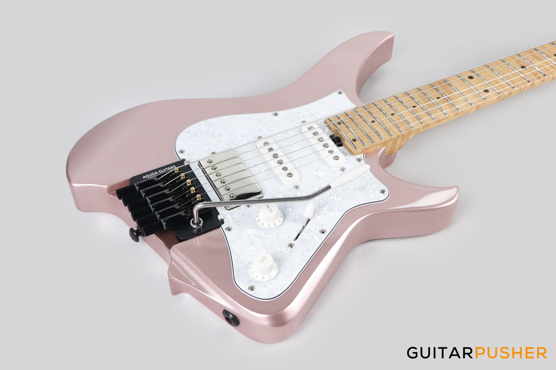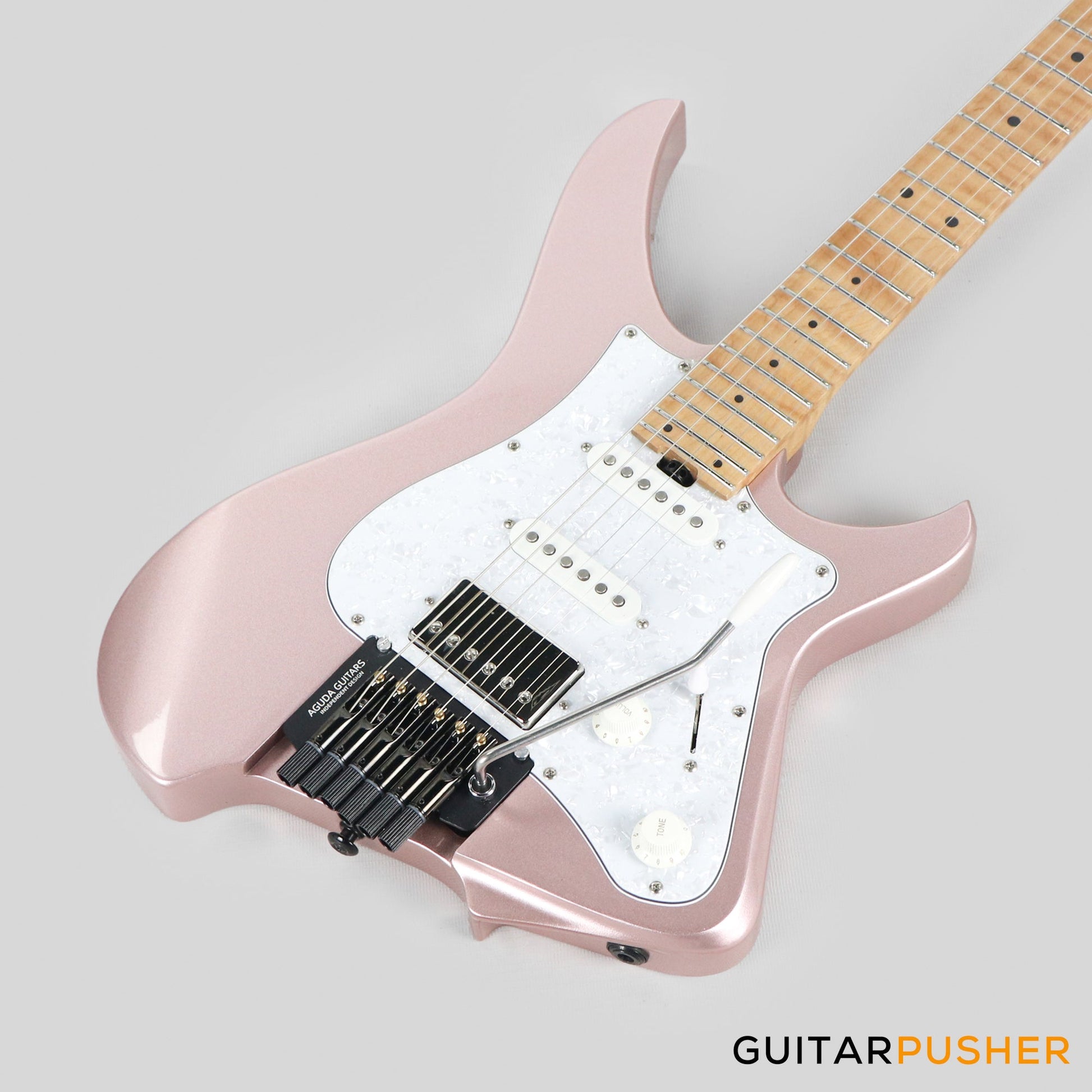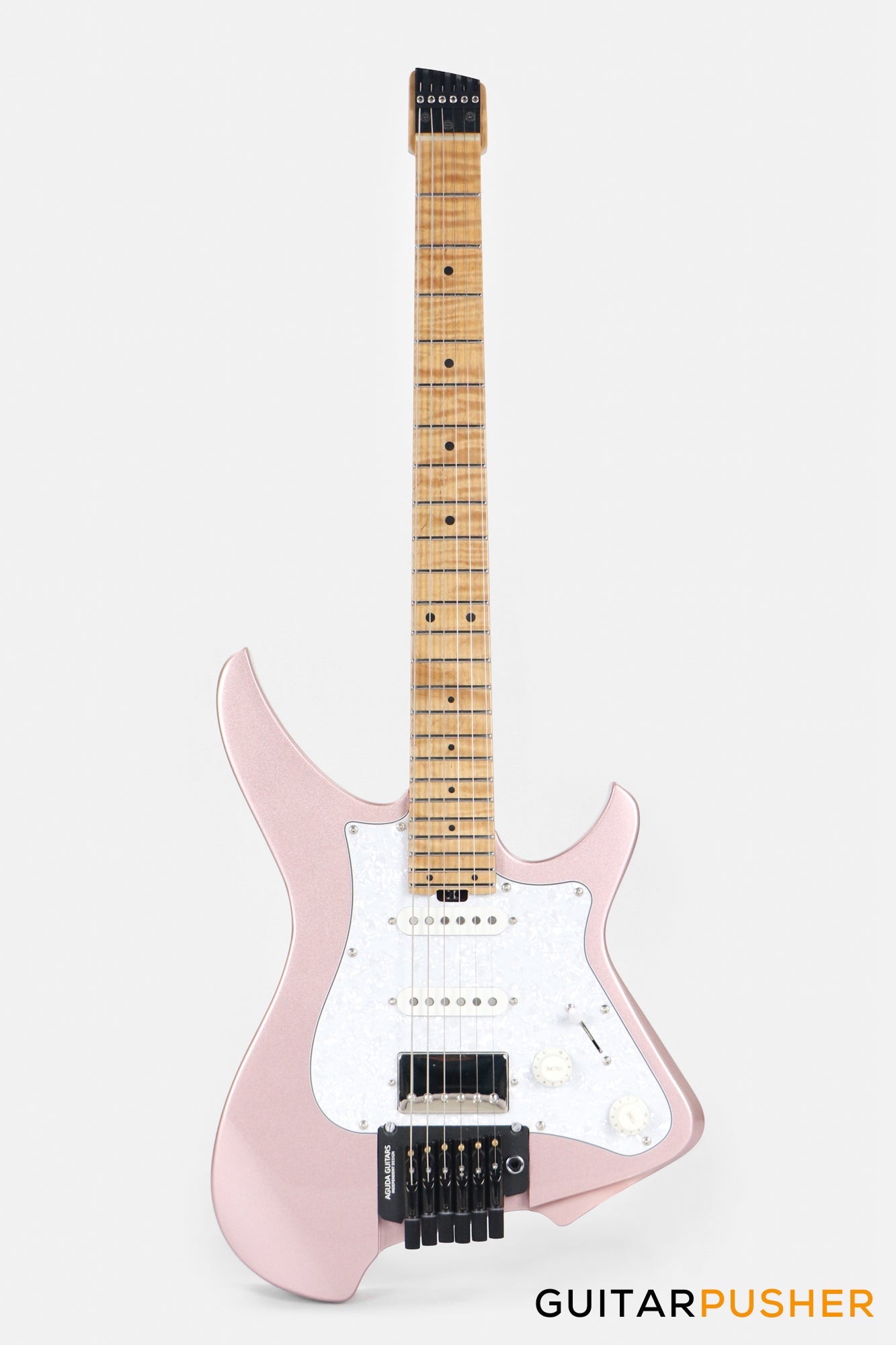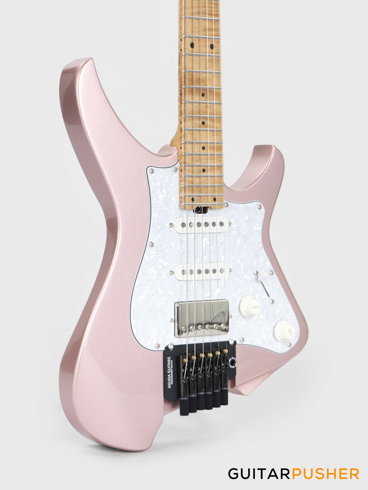 Aguda Musicboy Pro Headless Electric Guitar Alder Body Roasted Maple Fretboard - Rose Gold w/ Pearloid Pickguard