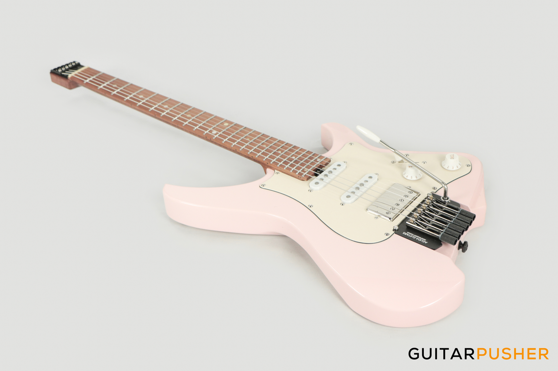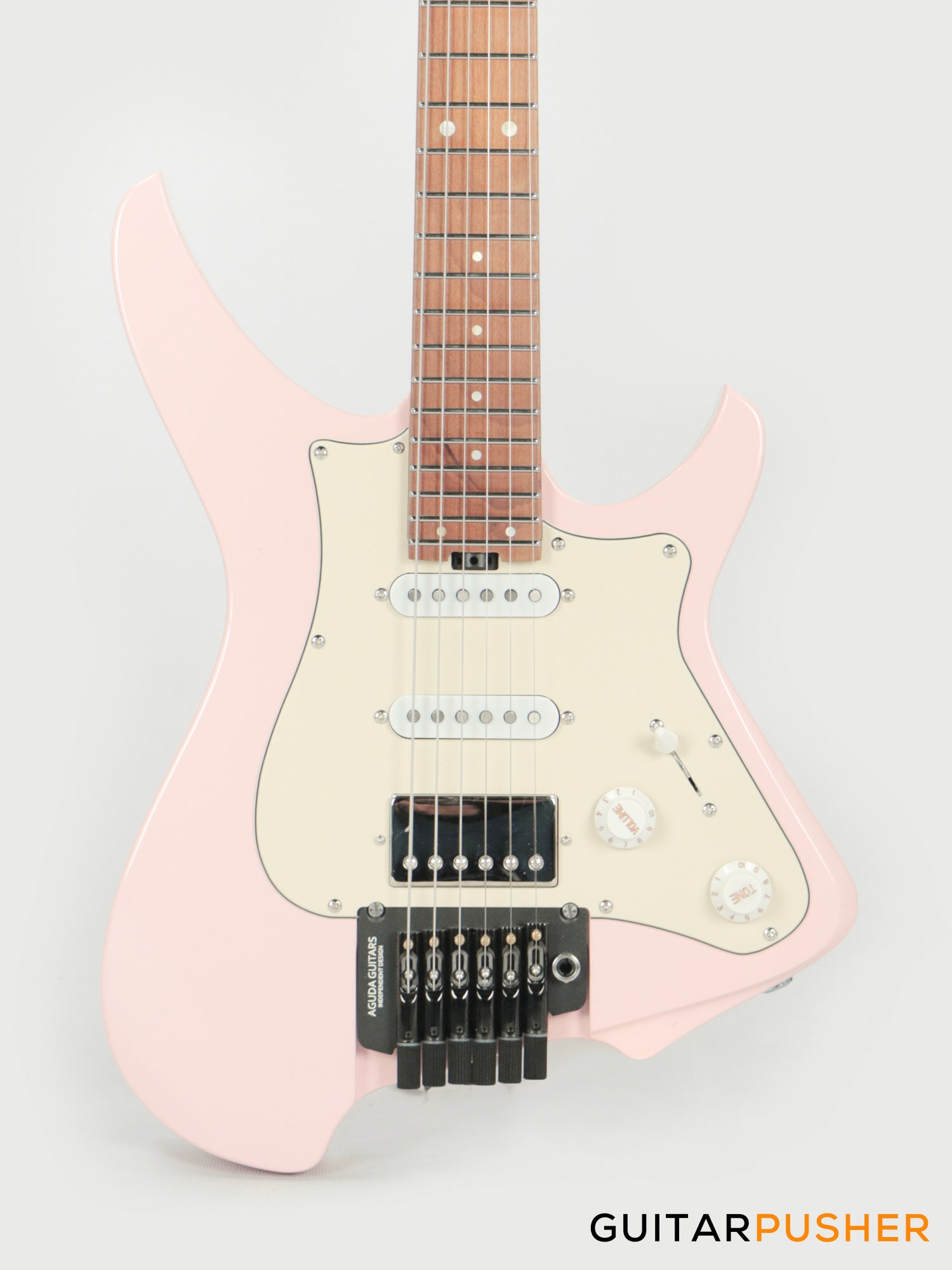 Aguda Musicboy Pro Headless Electric Guitar Alder Body Roasted Maple Fretboard - Shell Pink w/ Cream Pickguard