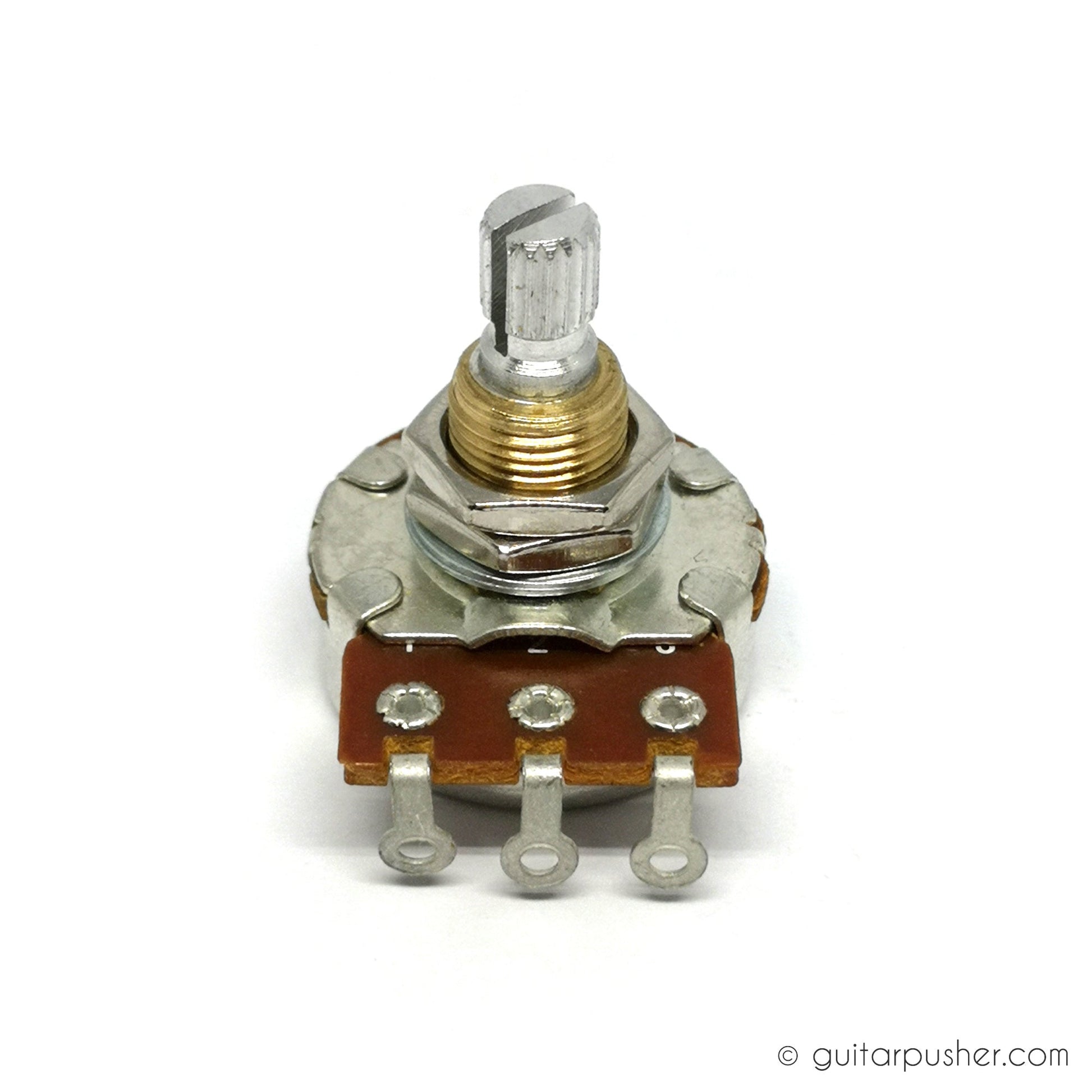 - Shaft texture- can besplit shaftorsolid shaft. Split shaft is used for no-screw knobs while solid shaft can work only with knobs that have screw. Generally you can use split shaft. Solid shaft are mostly used for telecasters and jazz bass where the knobs have screw