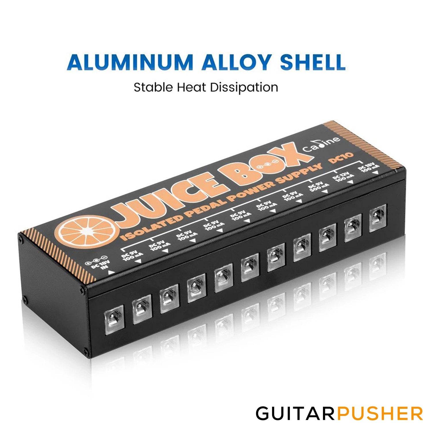 Caline DC10 pedal power supply is ultra-compact with 10 fully isolated power Outlets, Unlike the large transformer fully isolated power supplies, this unique lightweight IC design is smaller, easy to mount and requires less space on your pedal board.