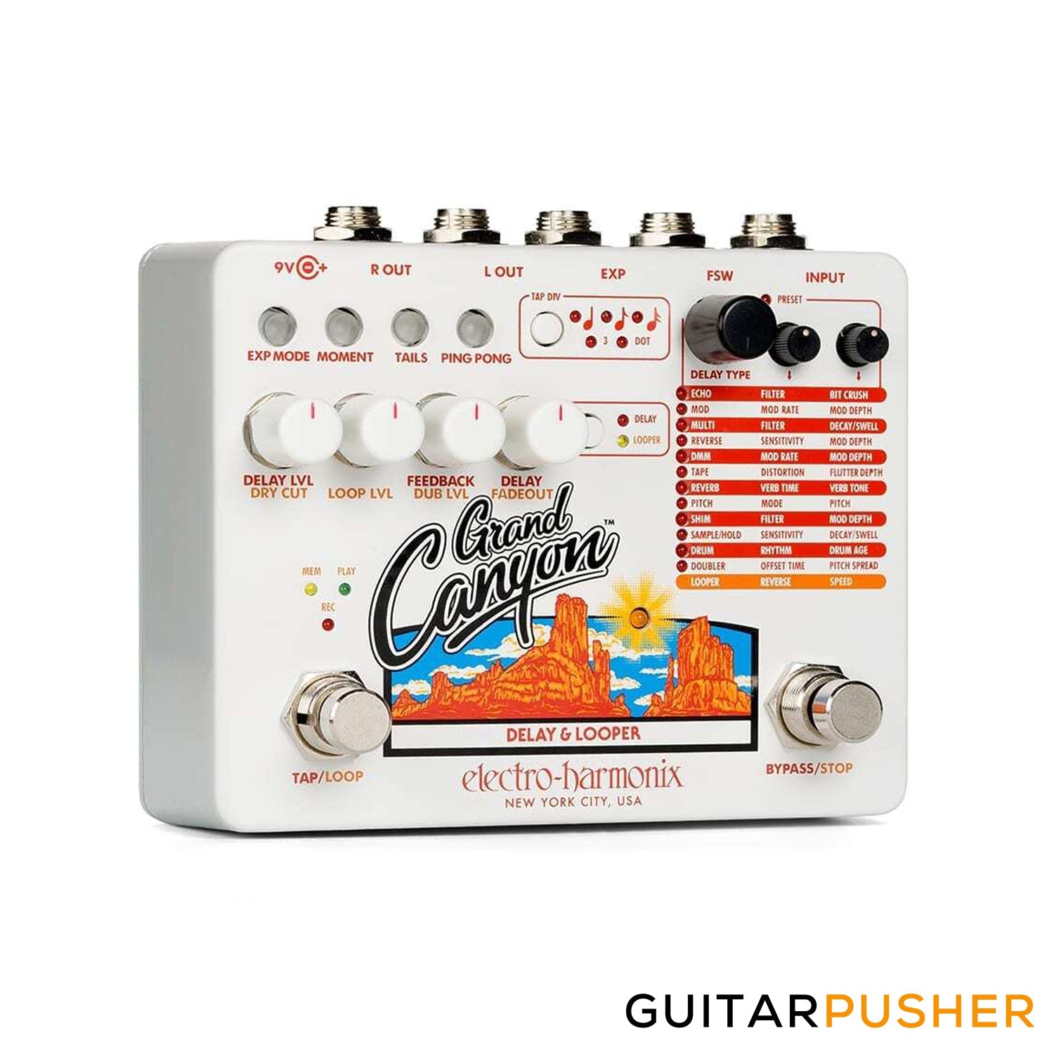 The EHX Grand Canyon is Electro-Harmonix’s most advanced multifunction delay and looper pedal. It’s equipped with 12 effect types plus a fully featured looper capable of recording and overdubbing the Grand Canyon’s effects.