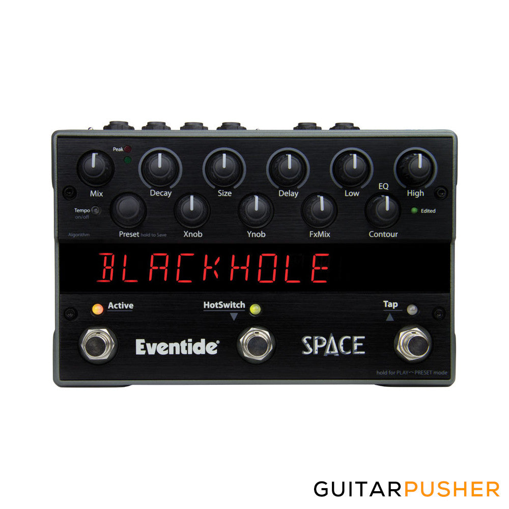 All kinds of reverb! Quality reverbs that raise the bar for stage and studio. Halls, Rooms, Plates from the Eventide flagship rack processors. Speaking of Space... you can really go there, BlackHole reverb with Gravity and Anti-Gravity! And, back here on Earth, this pedal will handle all of your natural (Spring), unnatural (Reverse) and supernatural (ModEchoVerb) needs. Add DualVerb, MangleVerb and DynaVerb from the venerable Eventide Eclipse and Space has got you covered. FunFact: The dedicated HotSwitch allows for instant parameter change with the press of a button.