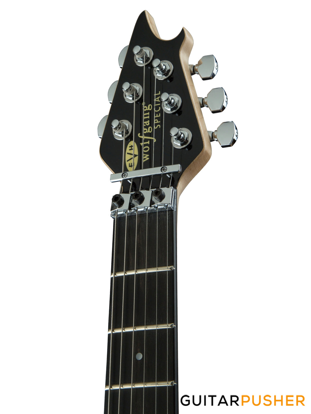 The Wolfgang Special features a basswood body with an arched top and a robust graphite-reinforced bolt-on quartersawn maple neck. The neck is carved and rolled to Eddie Van Halen’s exacting specifications and features a hand-rubbed satin urethane finish on the back. Primed for high performance, energetic riffing and blazing leads, the 12”-16” compound radius ebony fingerboard has 22 jumbo frets and pearloid dot inlays. Truss rod adjustments have also never been easier thanks to a spoke wheel conveniently located at the base of the neck.