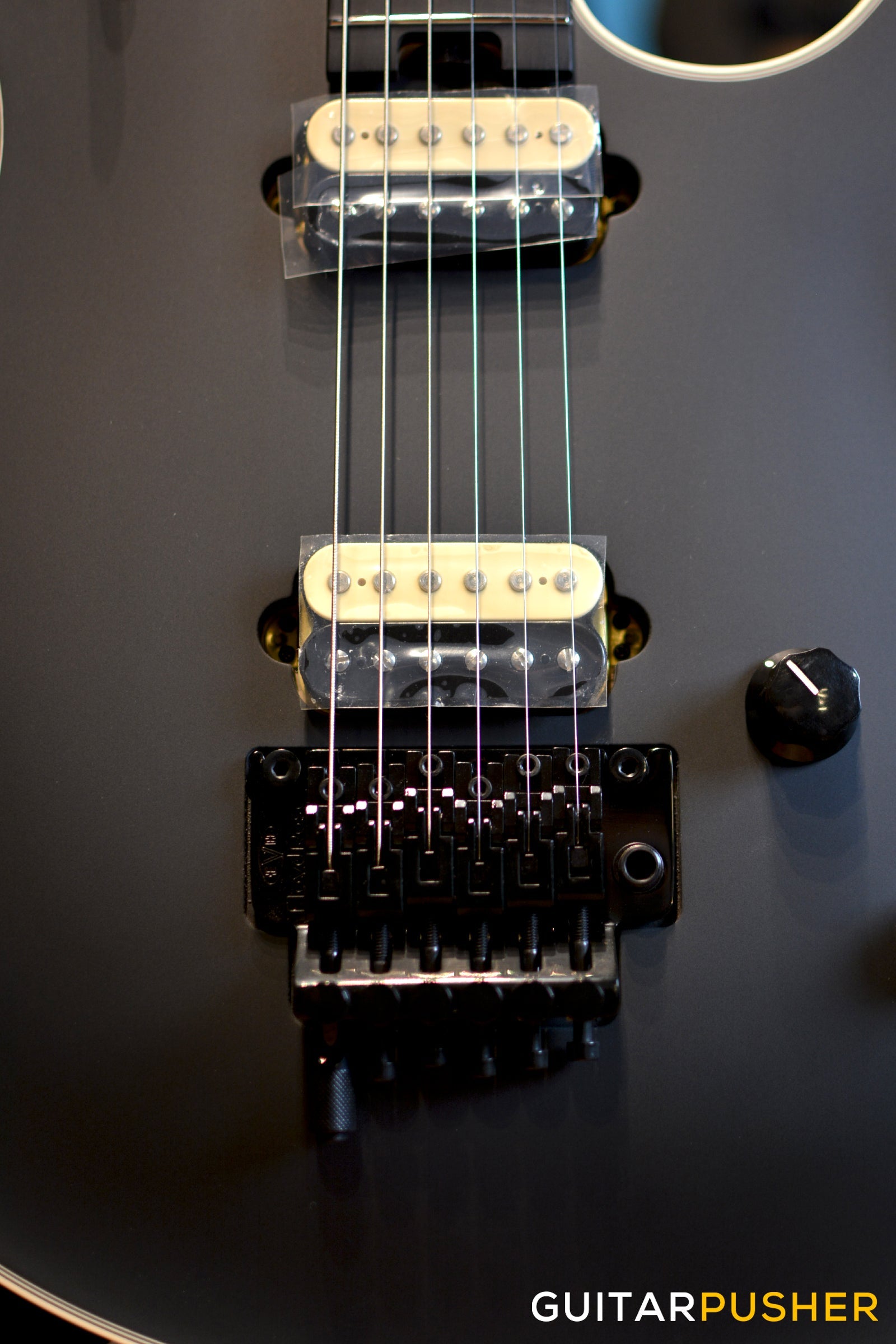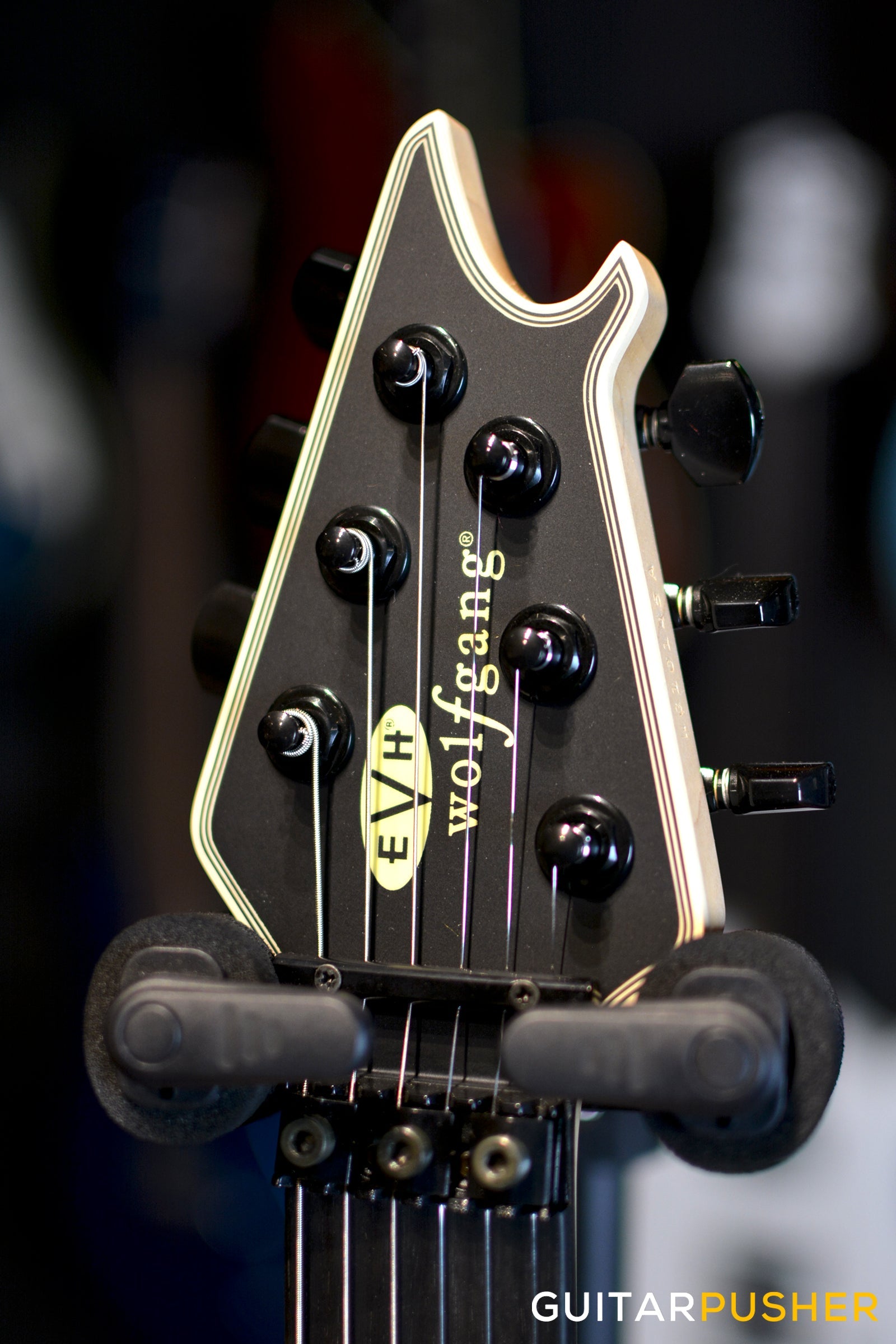 The Wolfgang USA features a basswood body with either an arched big-leaf maple or 5A flame maple top, bolt-on quartersawn maple neck with graphite reinforcement, 12”–16” compound radius ebony fingerboard with 22 vintage stainless steel frets and mother of pearl block inlays (dot inlays on Stealth), direct mount EVH Wolfgang USA zebra humbucking pickups, three-way toggle switching with reverse wiring, volume control with 500K EVH Bourns® low friction pot with treble bleed circuit, tone control with 250K EVH Bourns high friction pot, EVH-branded Floyd Rose® locking tremolo bridge with EVH D-Tuna® and EVH-branded Gotho® High Ratio die-cast tuners with white pearloid buttons.