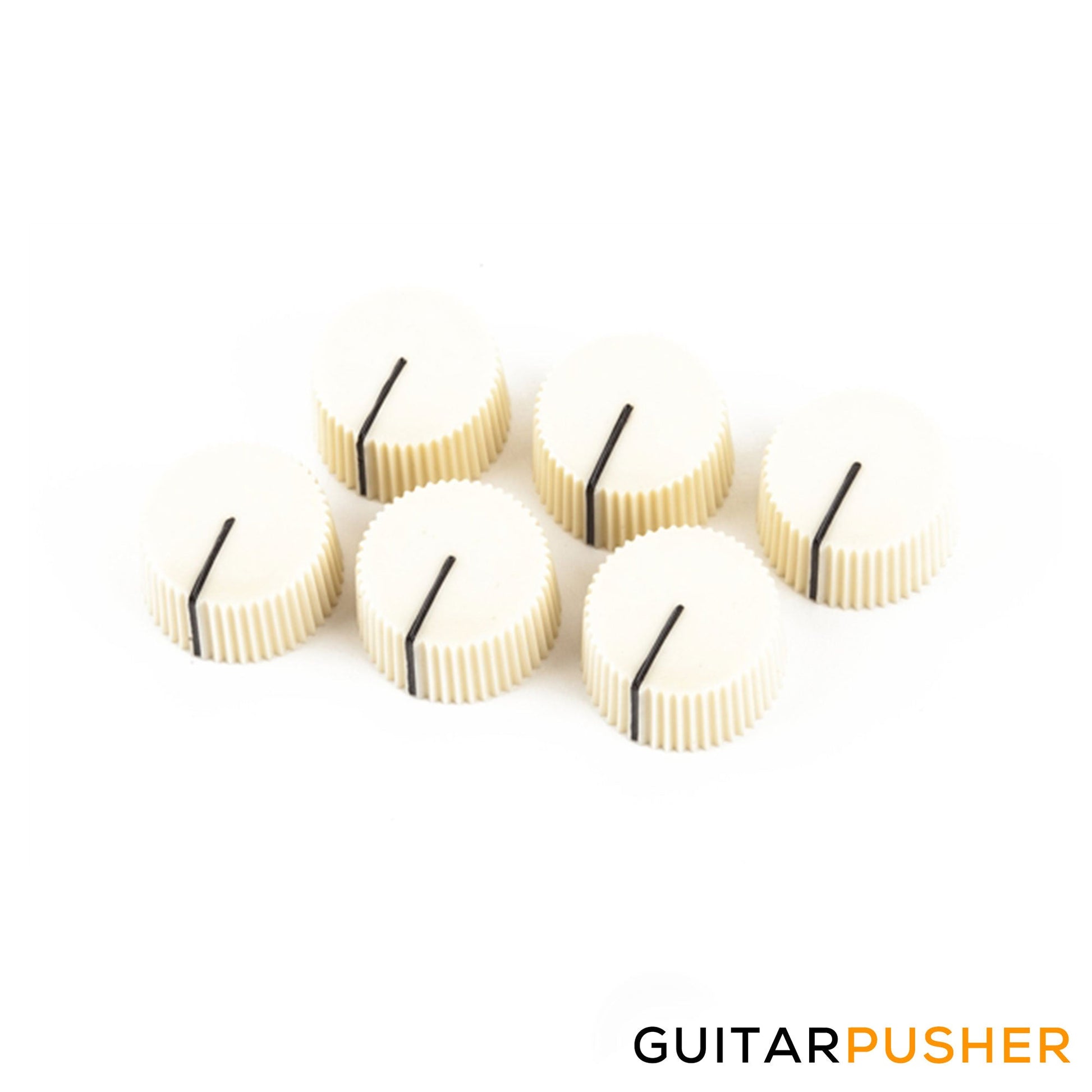 - Set of six cream ribbed replacement amplifier control knobs with black indicator lines
