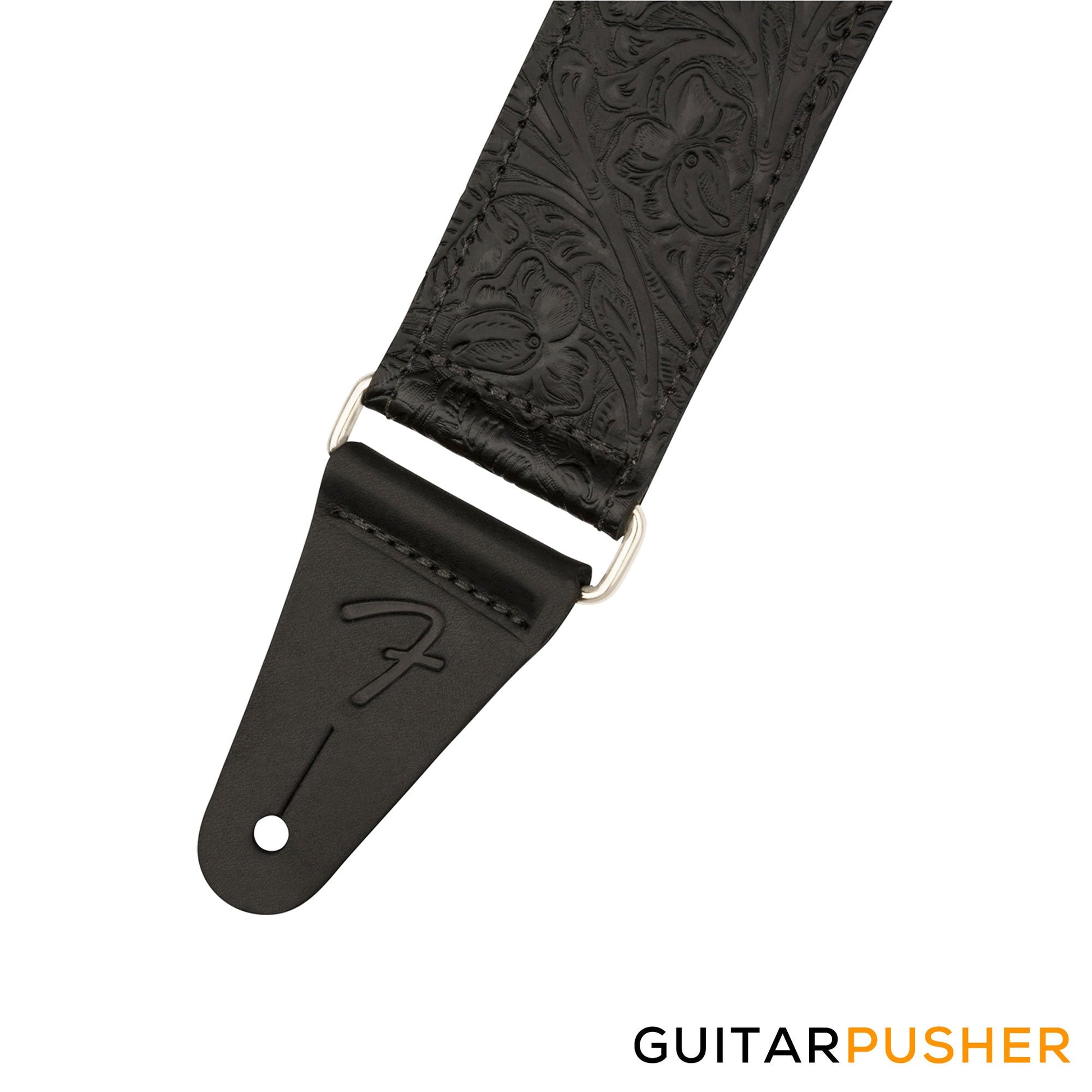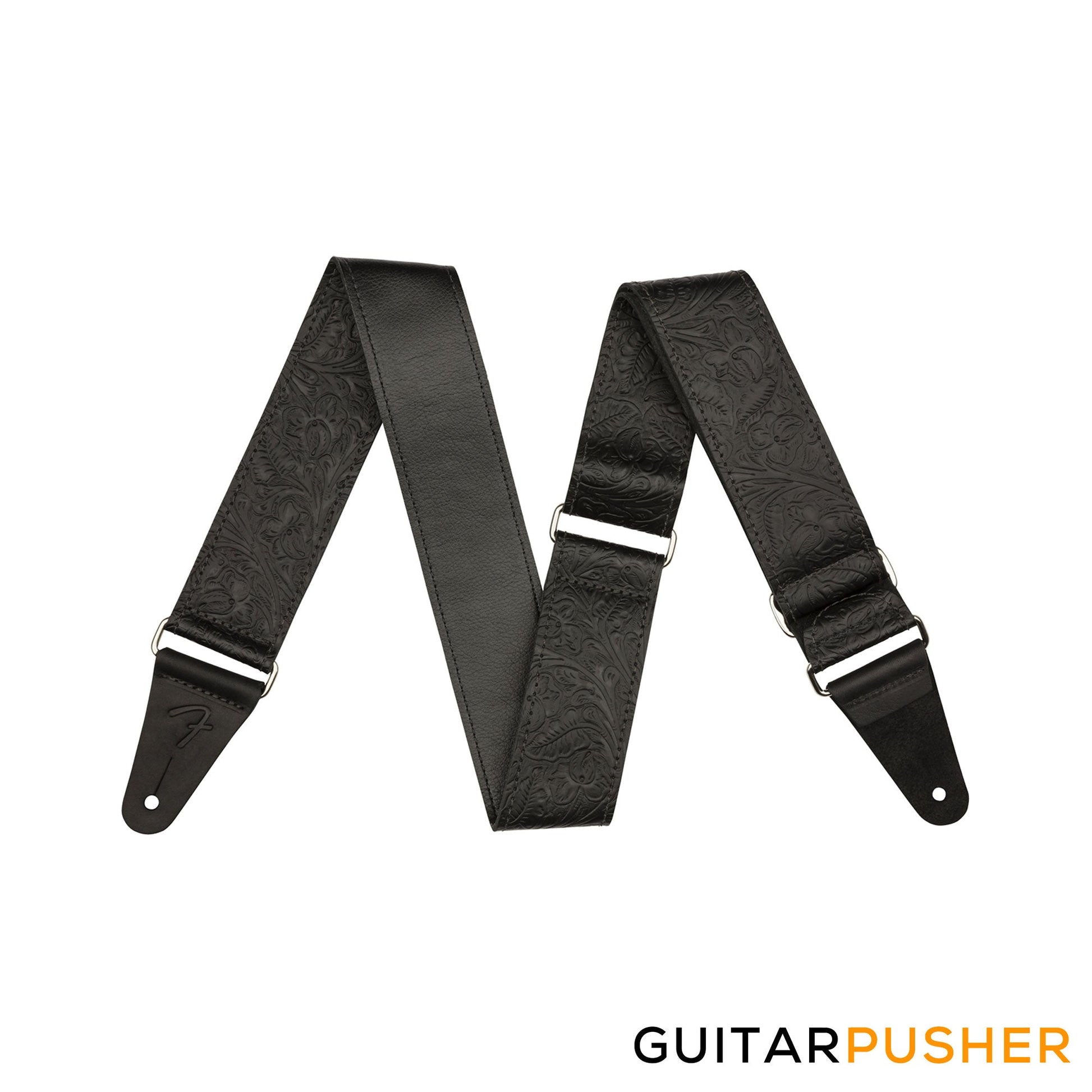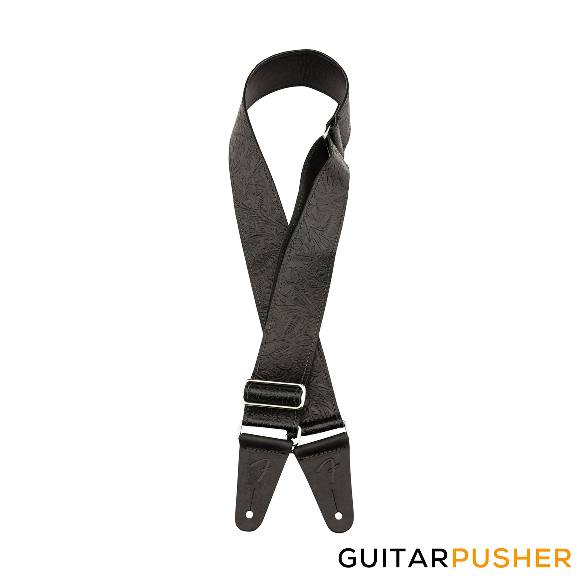 Inspired by the highly decorated straps favored by Western swing and country players, the Tooled Leather Strap brings classic style to any performance. Featuring an attractive floral pattern, this 2"-wide strap is designed for comfort, quality and aesthetics. The premium leather cone ends feature an embossed "F" logo to maintain the theme. The silver nickel slider allows the strap to adjust from 42"-52" in length to accommodate players of any stature.