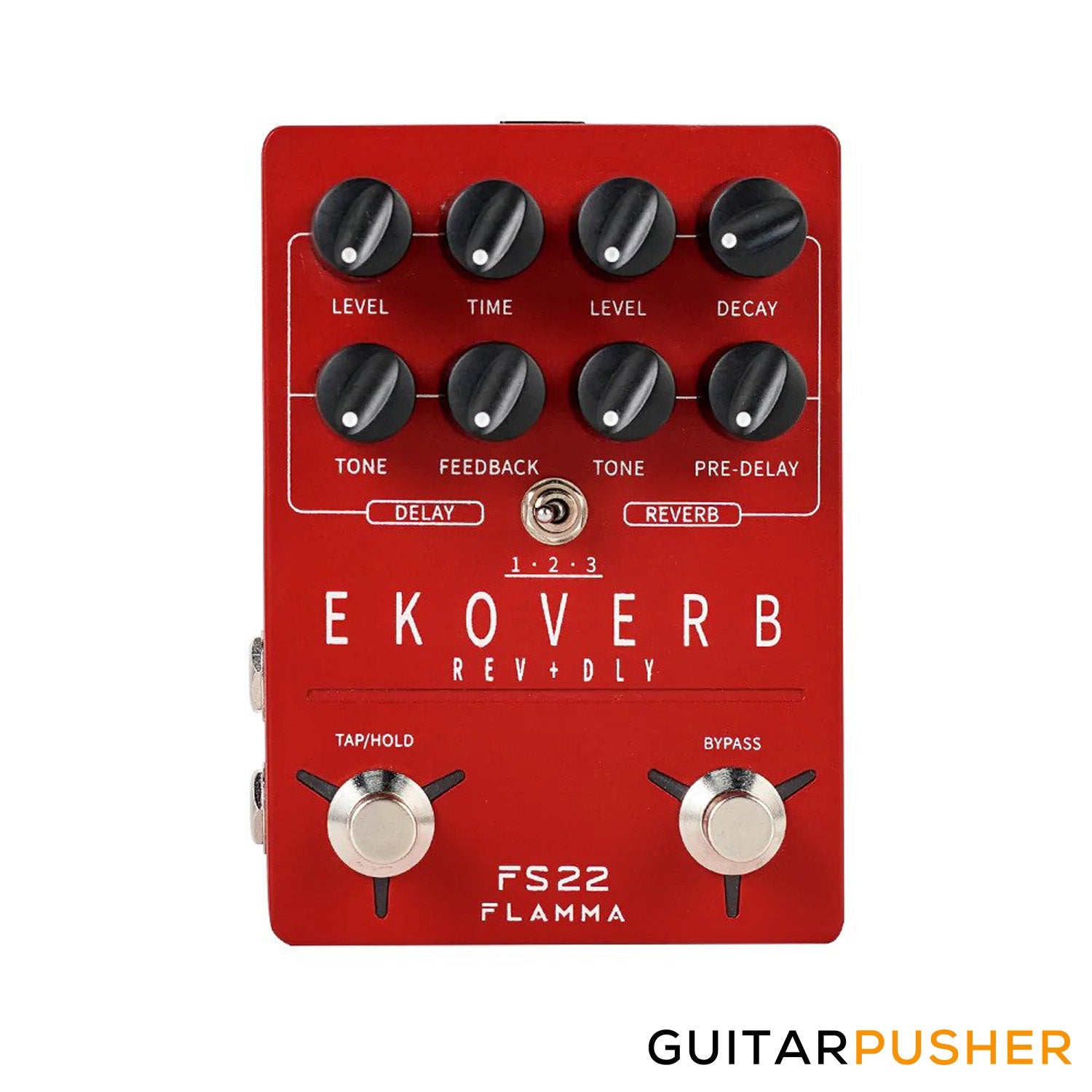 - Dual-footswitch stereo delay & reverb effects