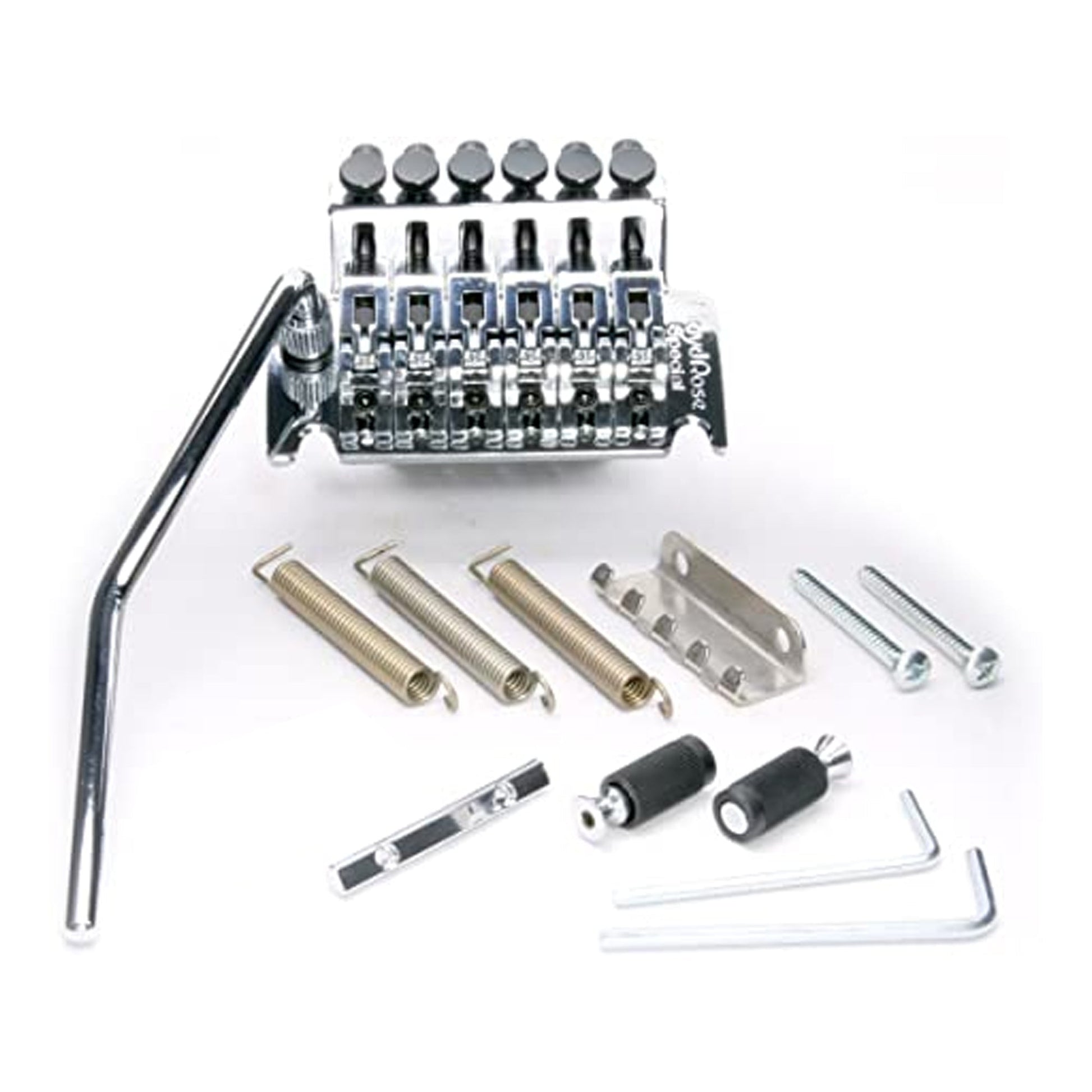 The Floyd Rose Special is our Authentic version of a licensed Floyd Rose tremolo system manufactured in Korea exclusively for Floyd Rose. The Floyd Rose Special maintains design and features of an Original Floyd Rose, while utilizing zinc alloy saddles in place of steel and a zinc alloy sustain block in place of brass. The design specifications and high quality materials of the Special Series Floyd Rose bridge will hold up to the demands of today's performers. Available in a variety of nut sizes to fit practically any electric guitar, the tremolo kit contains the bridge, springs & claw, mounting studs, and all hardware necessary for installation.