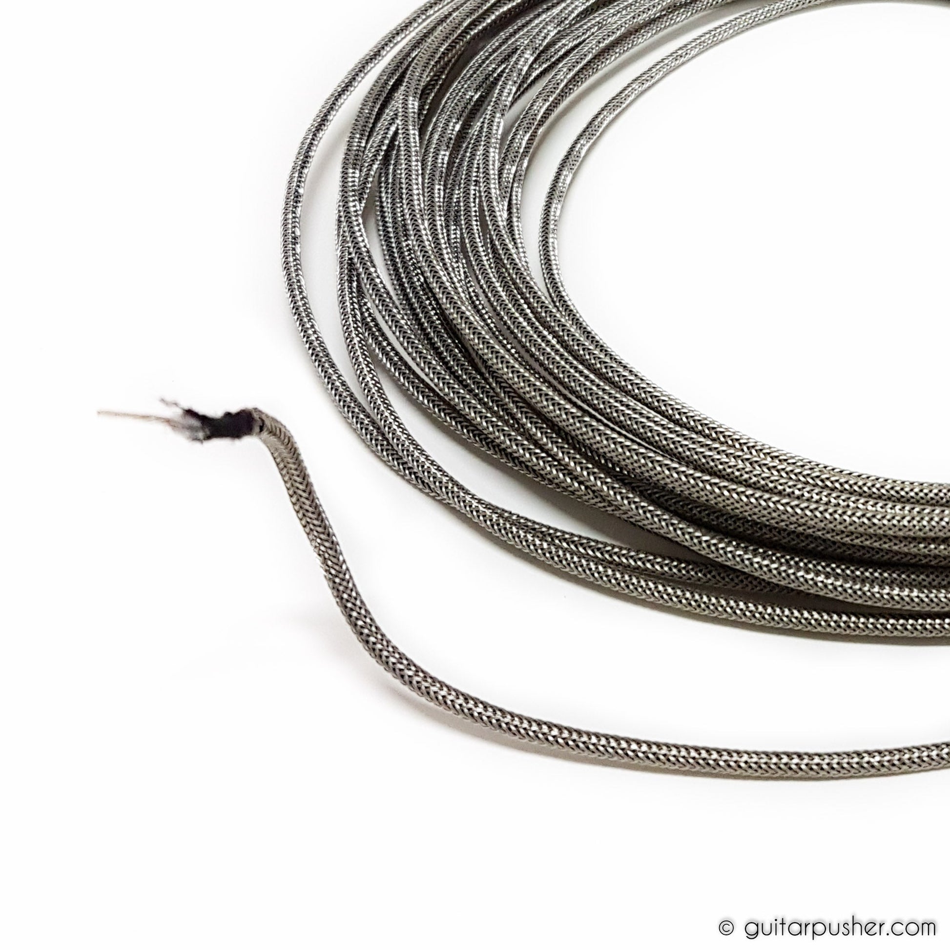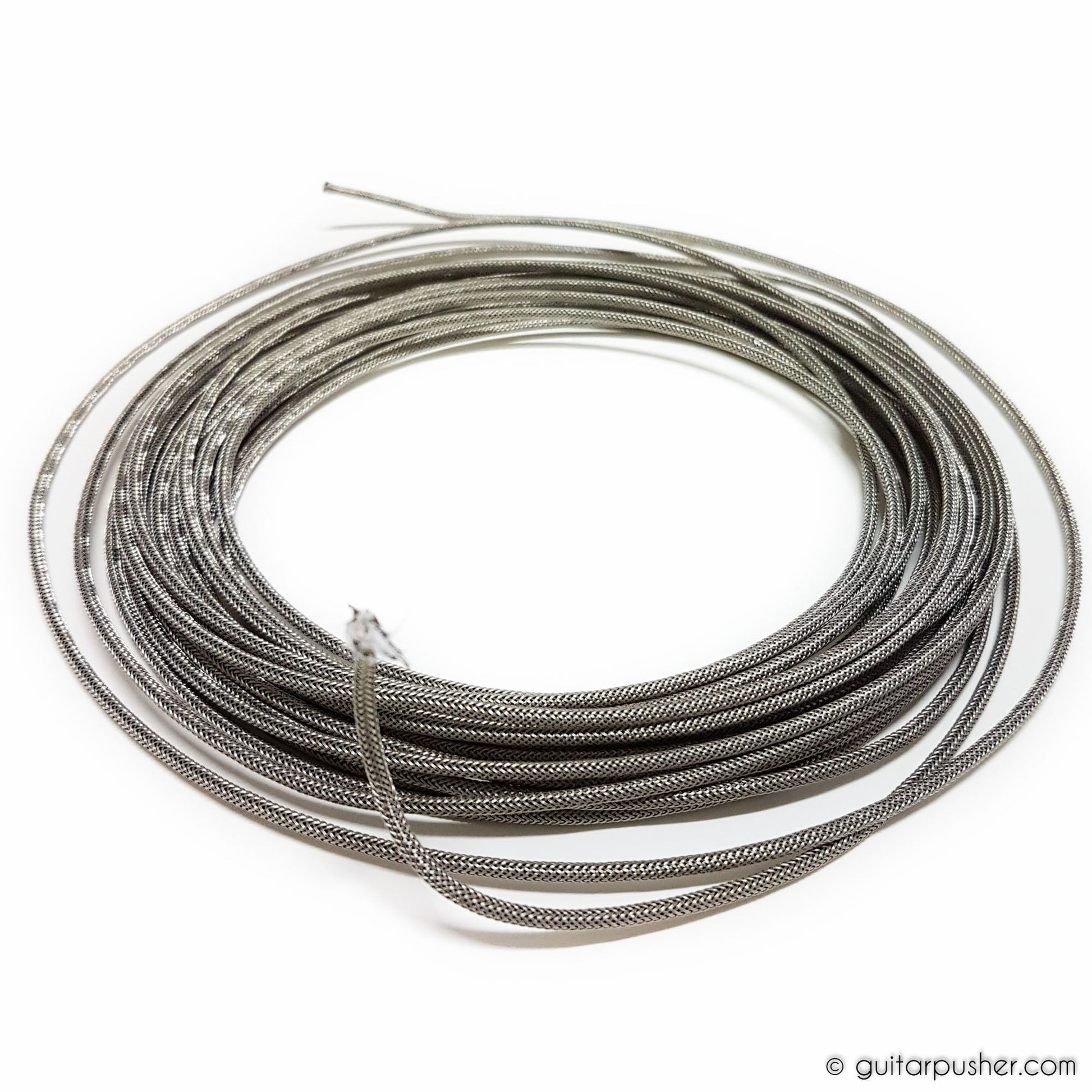 Guitar Wire- Gavitt Single-Conductor Braided Shield wire,just like the kind used on Gibson guitars. #22 AWG 7/30 tinned soft copper cotton braided push back wire with an overall #34 AWG (2 end) tinned copper braid shield.