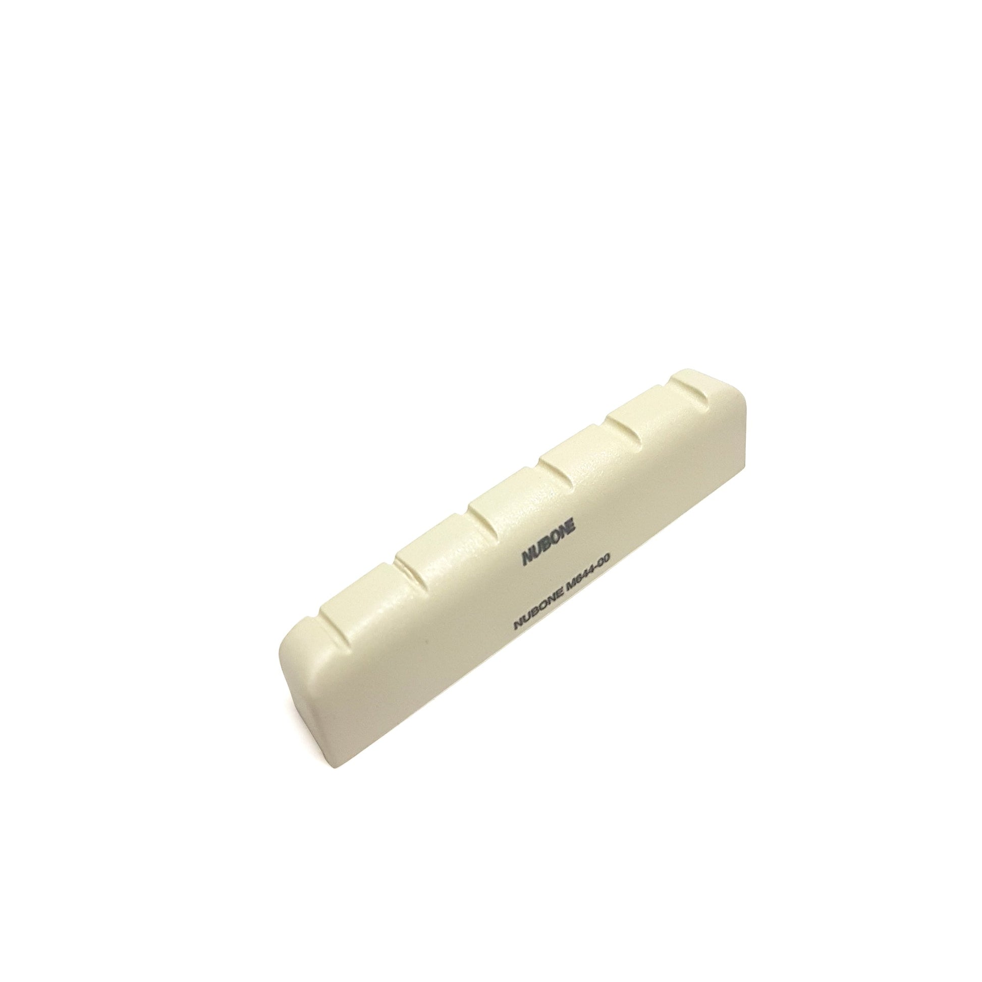 NuBone is a derivative of Graph Tech's highly resonant TUSQ material, manufactured to very close tolerances under high heat and pressure. We use specific ratios that contribute to NuBone's hardness, workability, appearance, and most importantly, guitar performance. Odorless when sanded, it is strong, outlasting and outperforming plastic. NuBone is the answer!