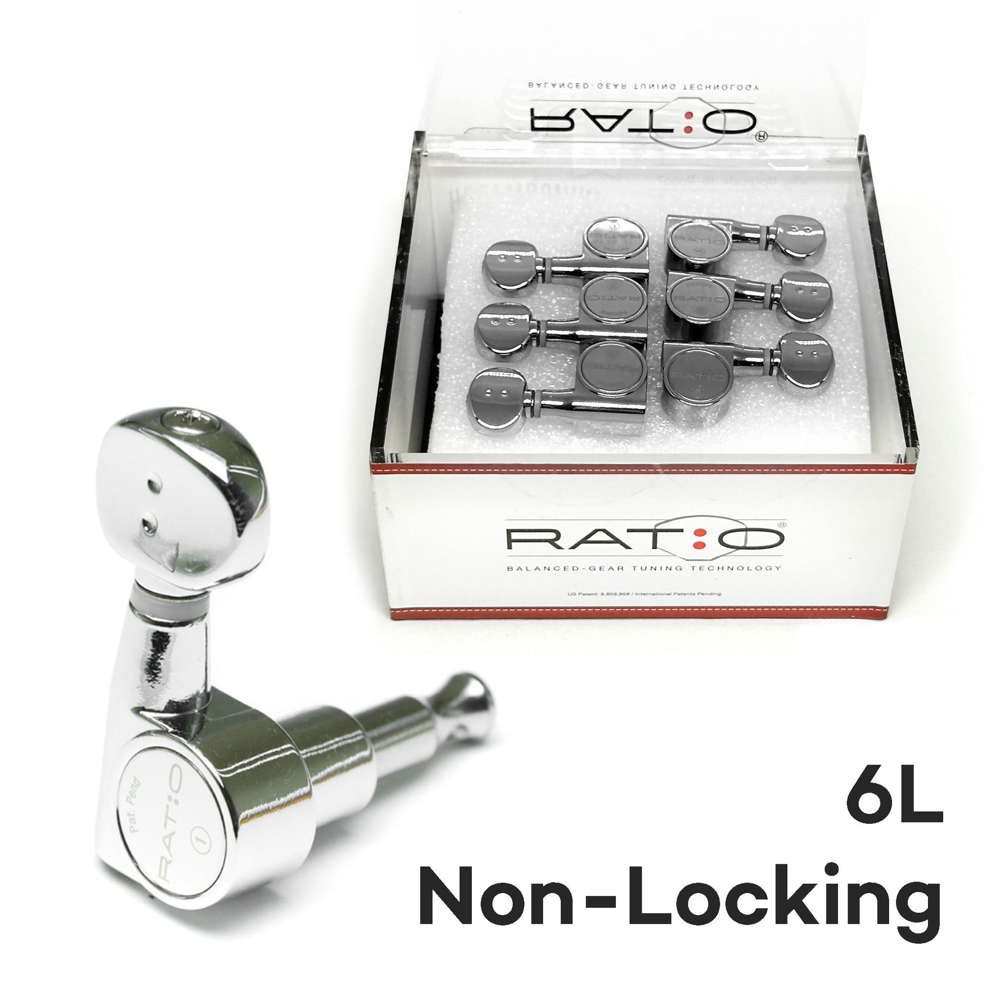 Ratio - Tuned Machine Headsare the first and only machine head to incorporate the different string gauges into the tuning equation. We balanced the individual gear ratios to each string dramatically simplified the tuning process. No more overshooting the G string or twisting away on the high E string. With Ratio, each half key turn equals one semitone change on all strings! Quicker, more accurate tuning on every string.