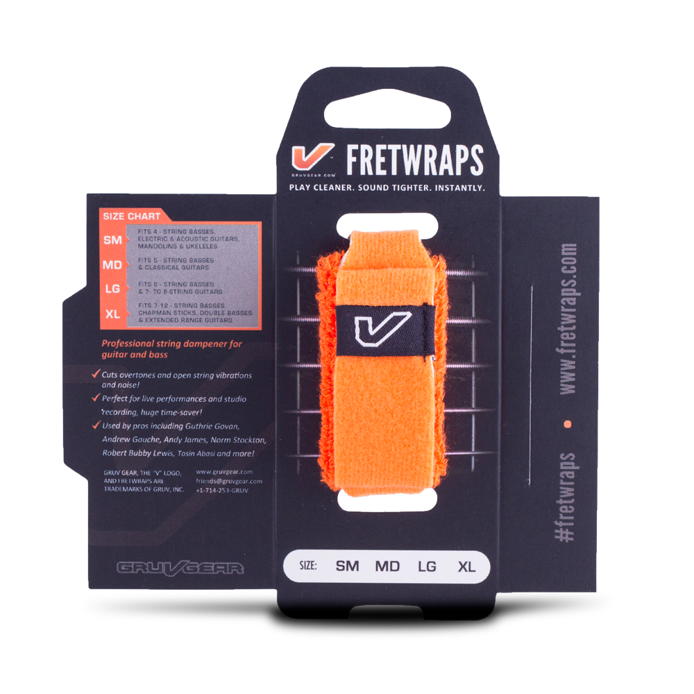 Finally, a professional string dampener / muting accessory that every studio, session player, and tapping aficionado should have! Slide on a FretWrap to effectively cut overtones and sympathetic resonance during recording, live performance, two-hand tapping, or any creative situation where you need that extra muting hand for cleaner takes without the unwanted string noise or ringing.