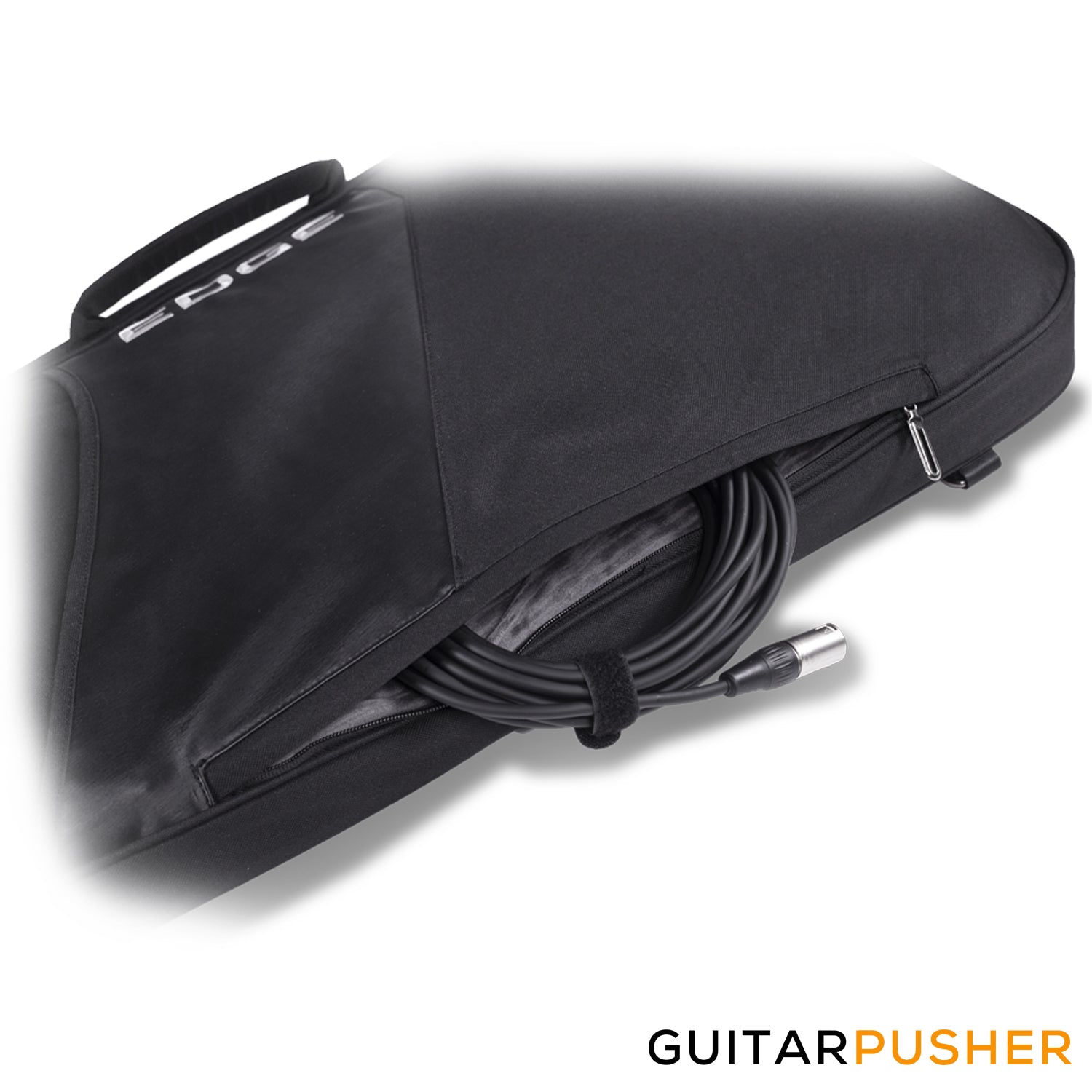 Our latest side-carry GigBlade Edge 2 model just got a refresh with all new materials and an upgraded gray interior! This new model continues to feature our patented "yin-yang” auto-locking neck brace and low-center-of-gravity ergonomics when carrying your guitar or bass. Stash away your tuner, spare strings and other small accessories in the drop pocket, or slip music sheets and most 15” laptops into the bottom compartment. Optional 2nd strap allows the side-carry Edge to be converted into a backpack-style gig bag.
