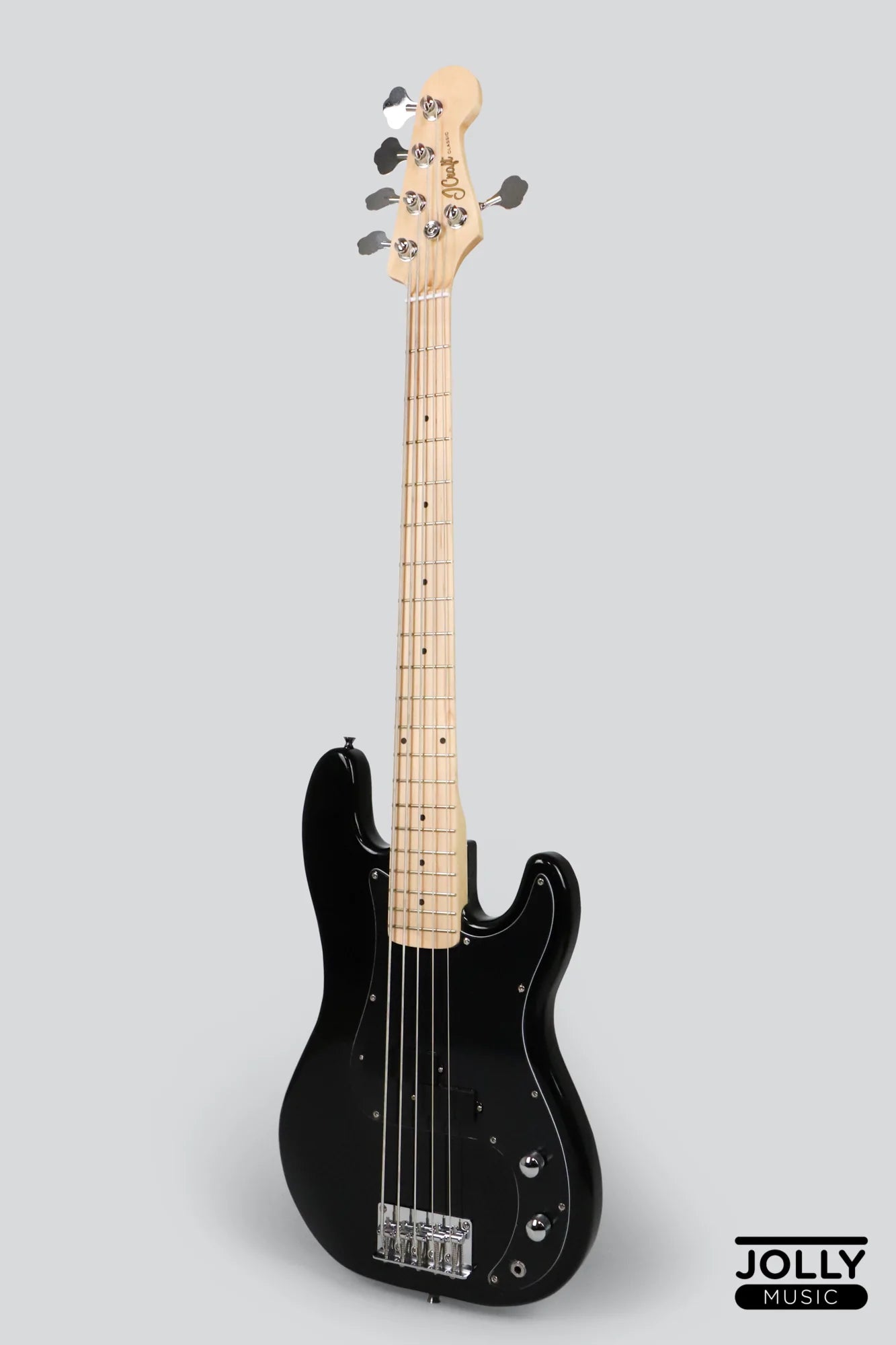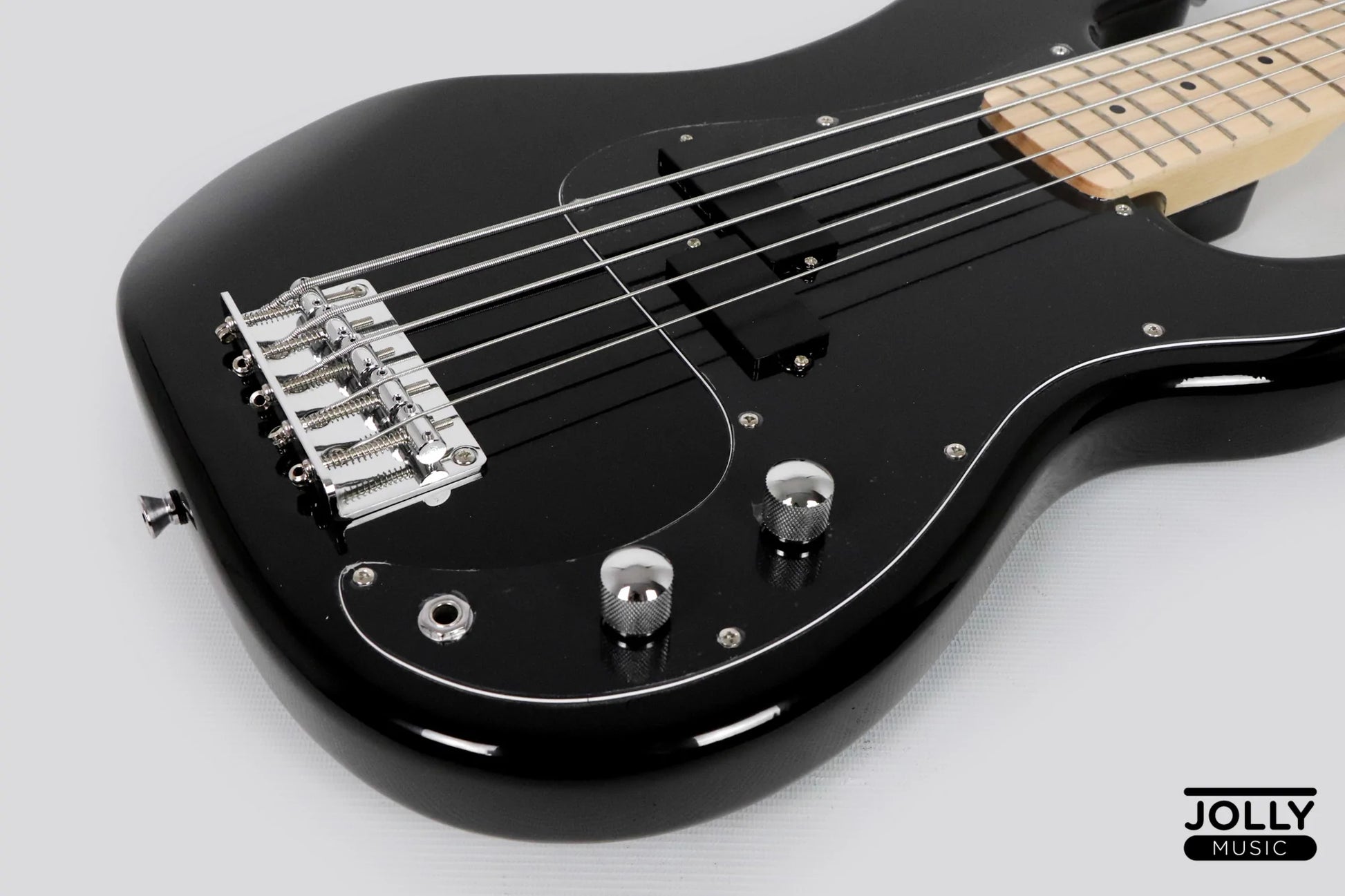 JCraft PB-1 5-String Electric Bass Guitar with Gigbag - Double Black