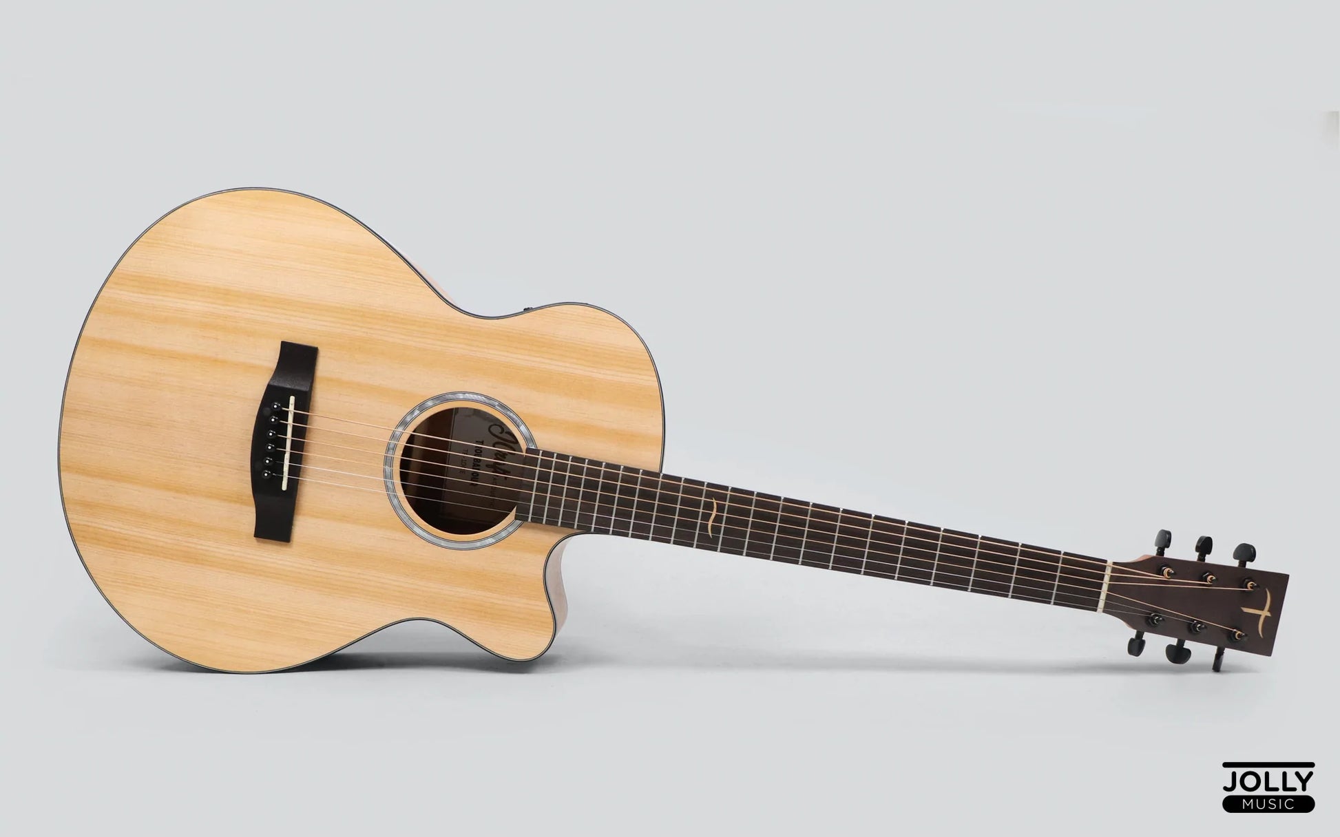 The JCraft Troubadour TF-10 is a recording and gig-worthy acoustic guitar that you can afford! It is constructed with tried and tested body construction, X-bracing, spruce and mahogany wood combination with mahogany neck and rosewood fingerboard to ensure you get classic guitar sound familiar to the ears. The TF-10 is perfect for performing if you have a smaller body frame. The simple but elegant rosette and fingerboard inlay design will look great on camera or live gig. It comes with side dot on the fingerboard so you can see which fret you are playing without looking at the fingerboard.