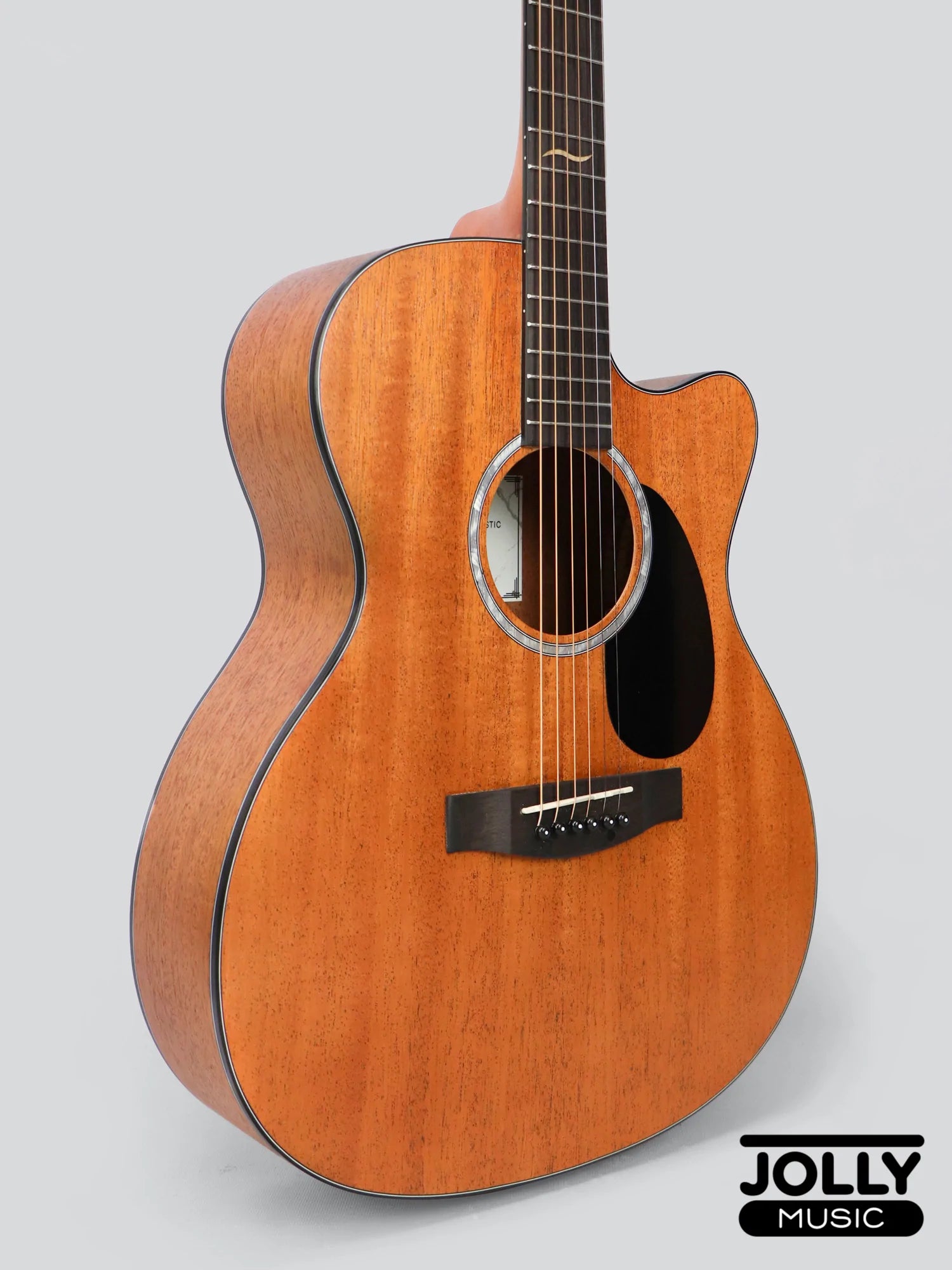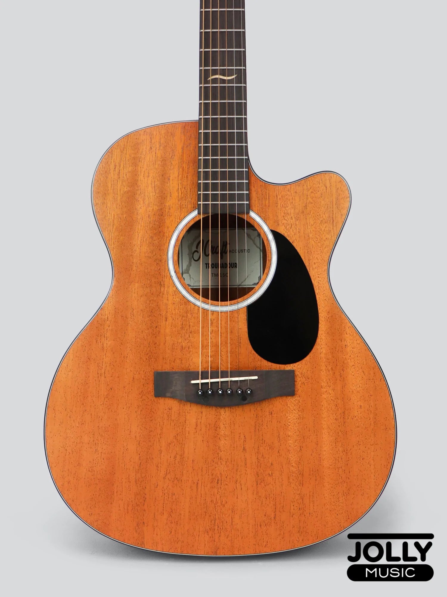 J-Craft Troubadour TM-15C All-Mahogany Orchestra Cutaway Acoustic Guitar with soft case