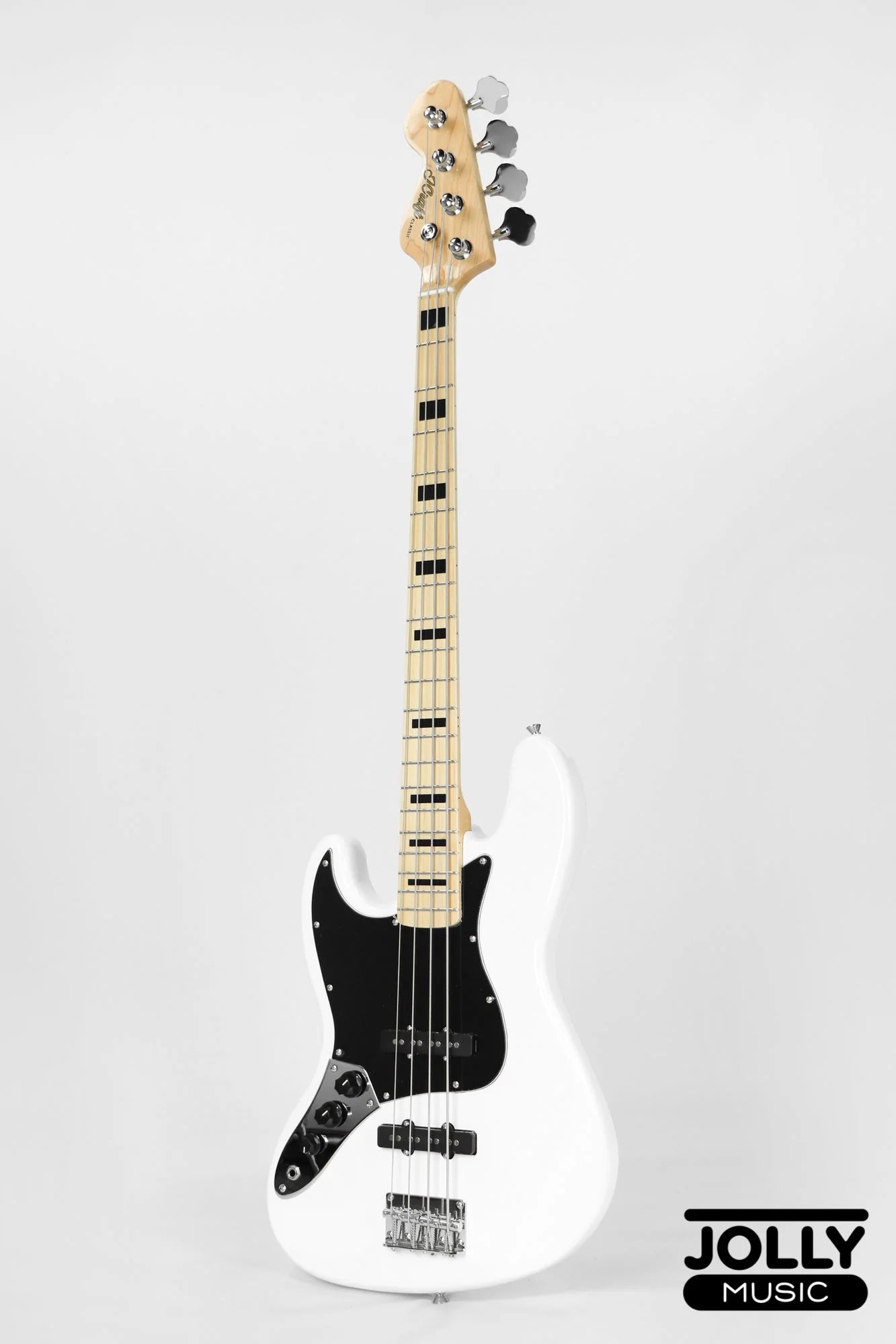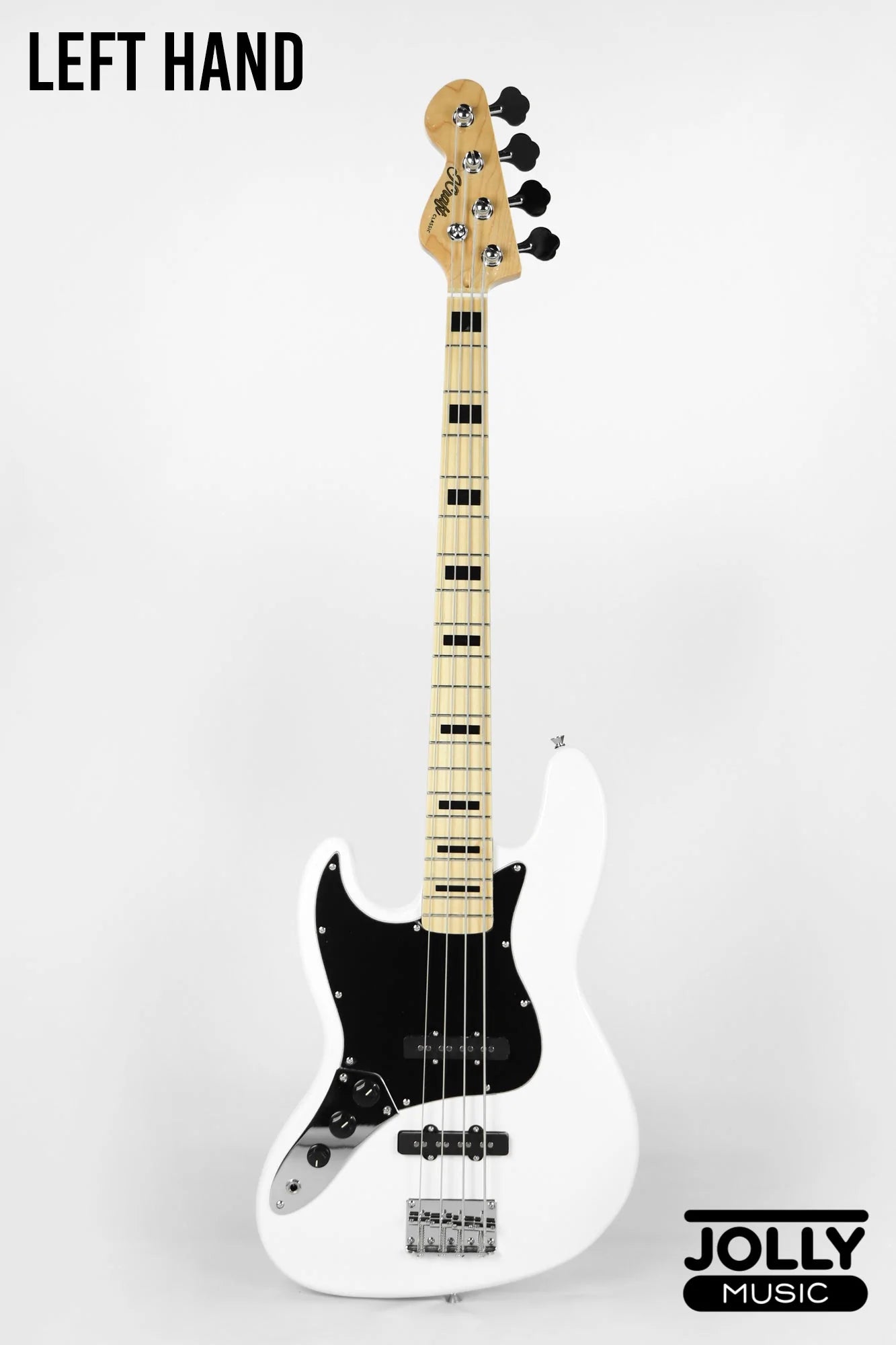 JCraft JB-1 Left Handed J-Offset 4-String Bass Guitar with Gigbag - White