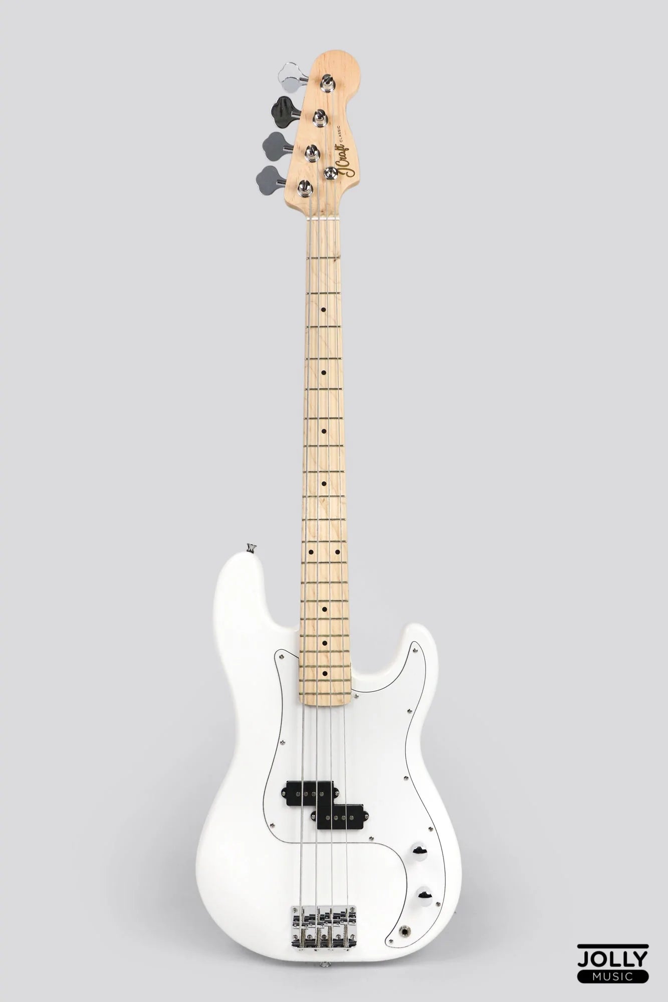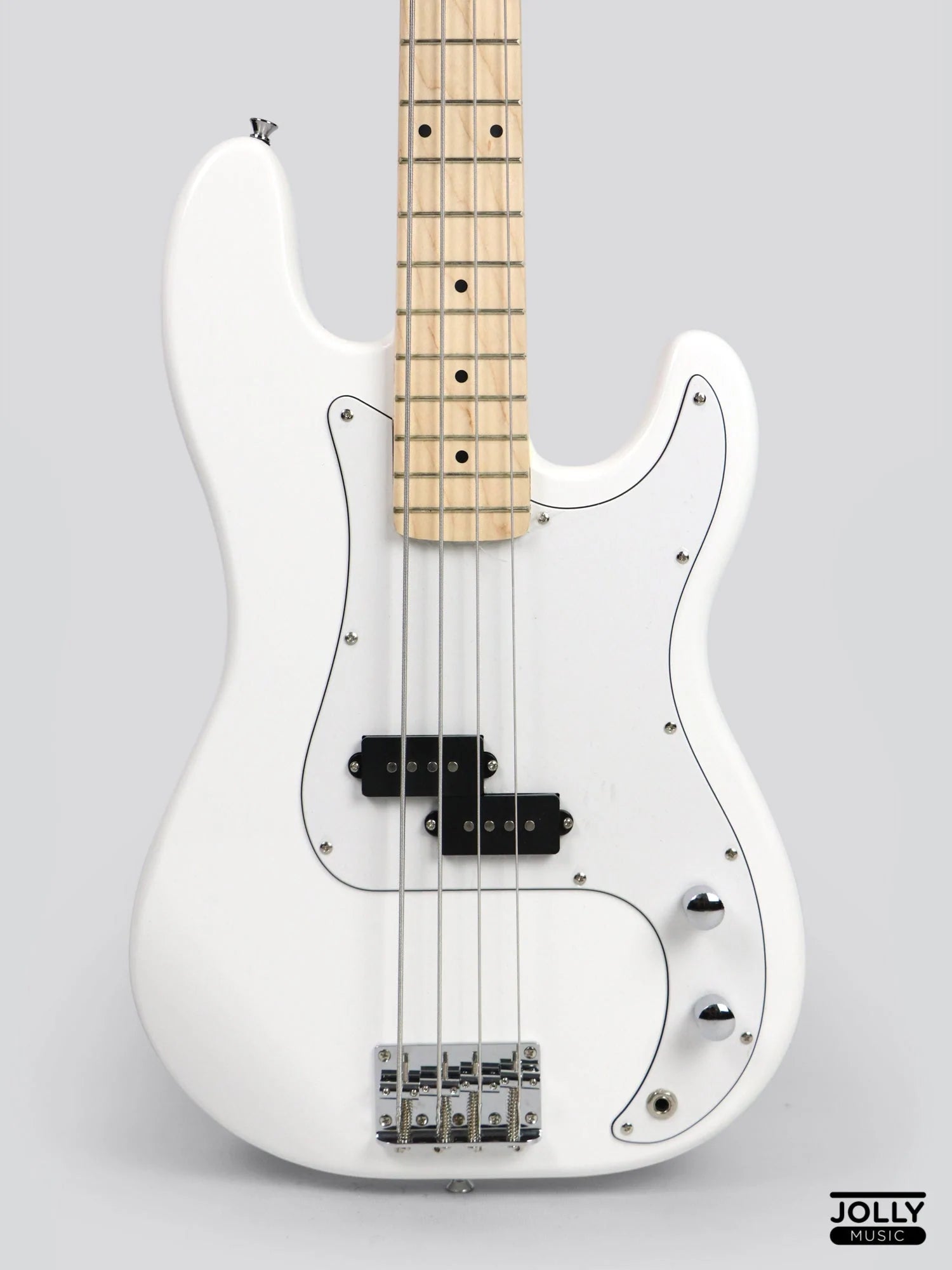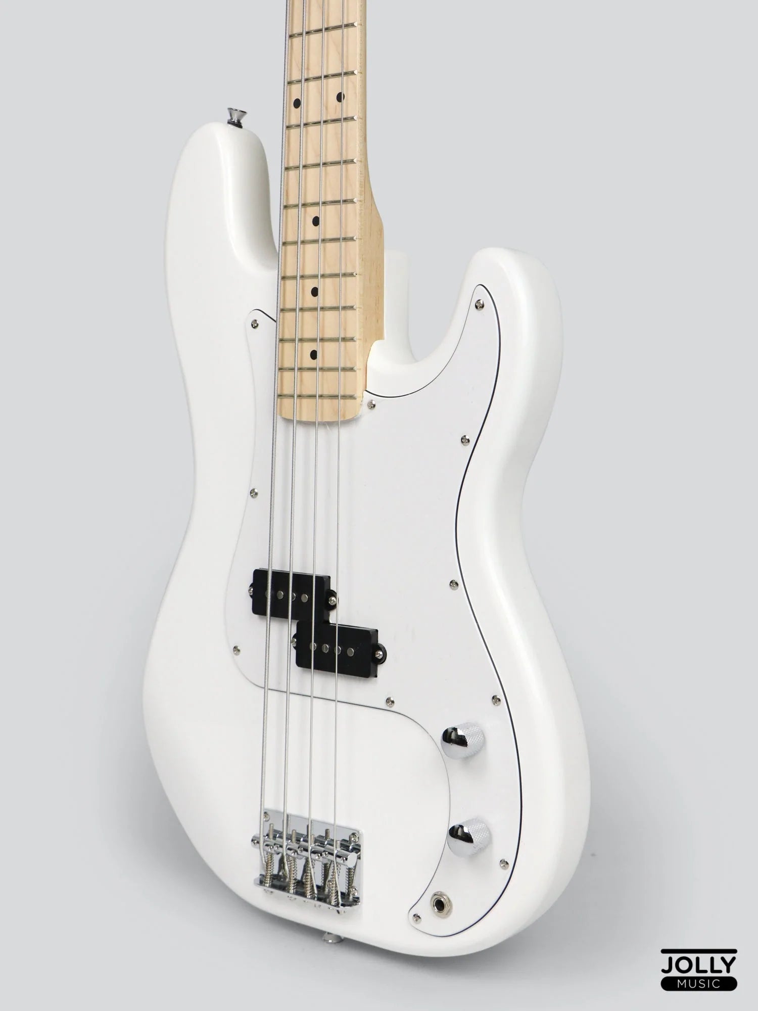 JCraft PB-1 4-String Electric Bass Guitar with Gigbag - Triple White