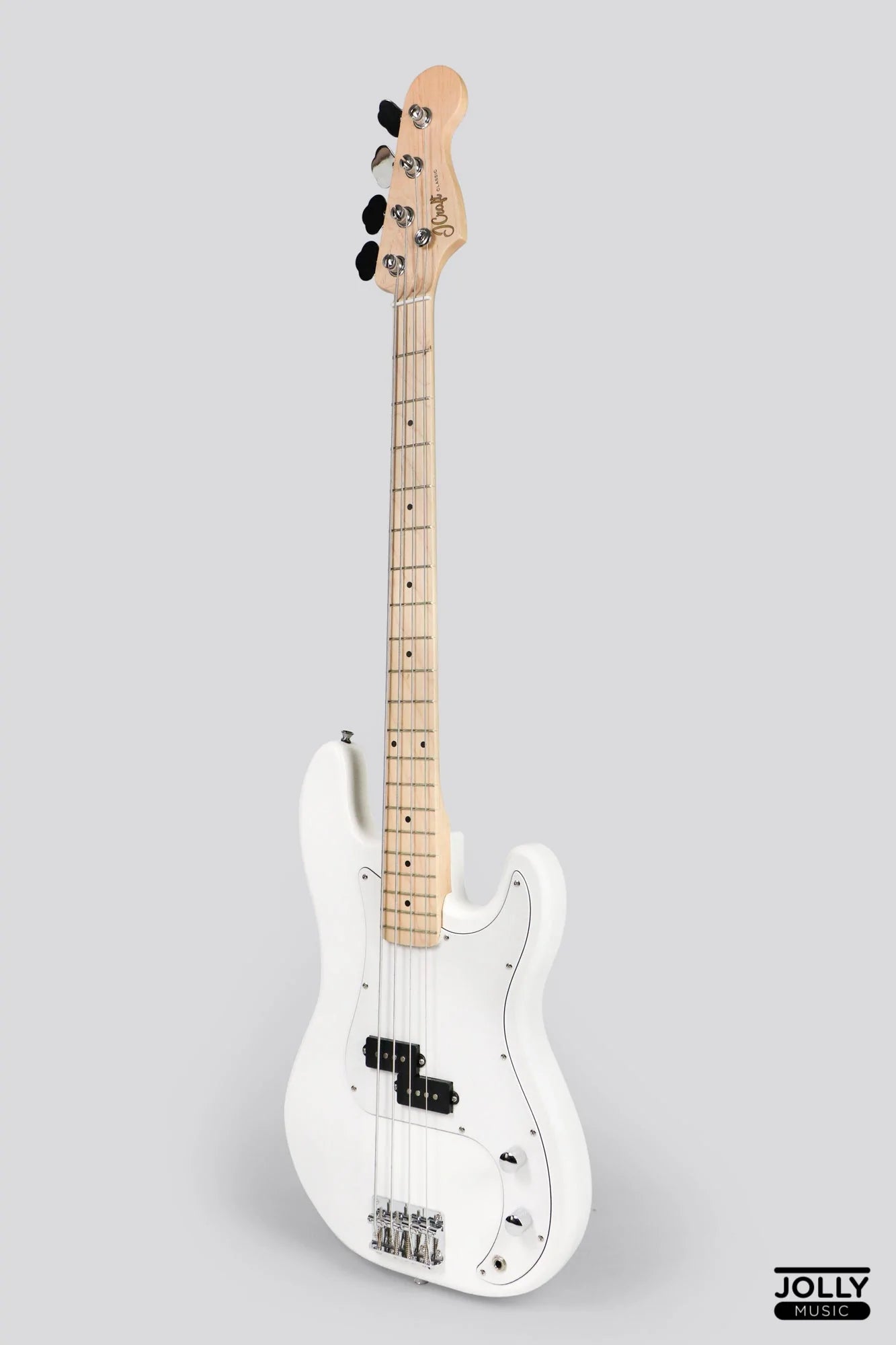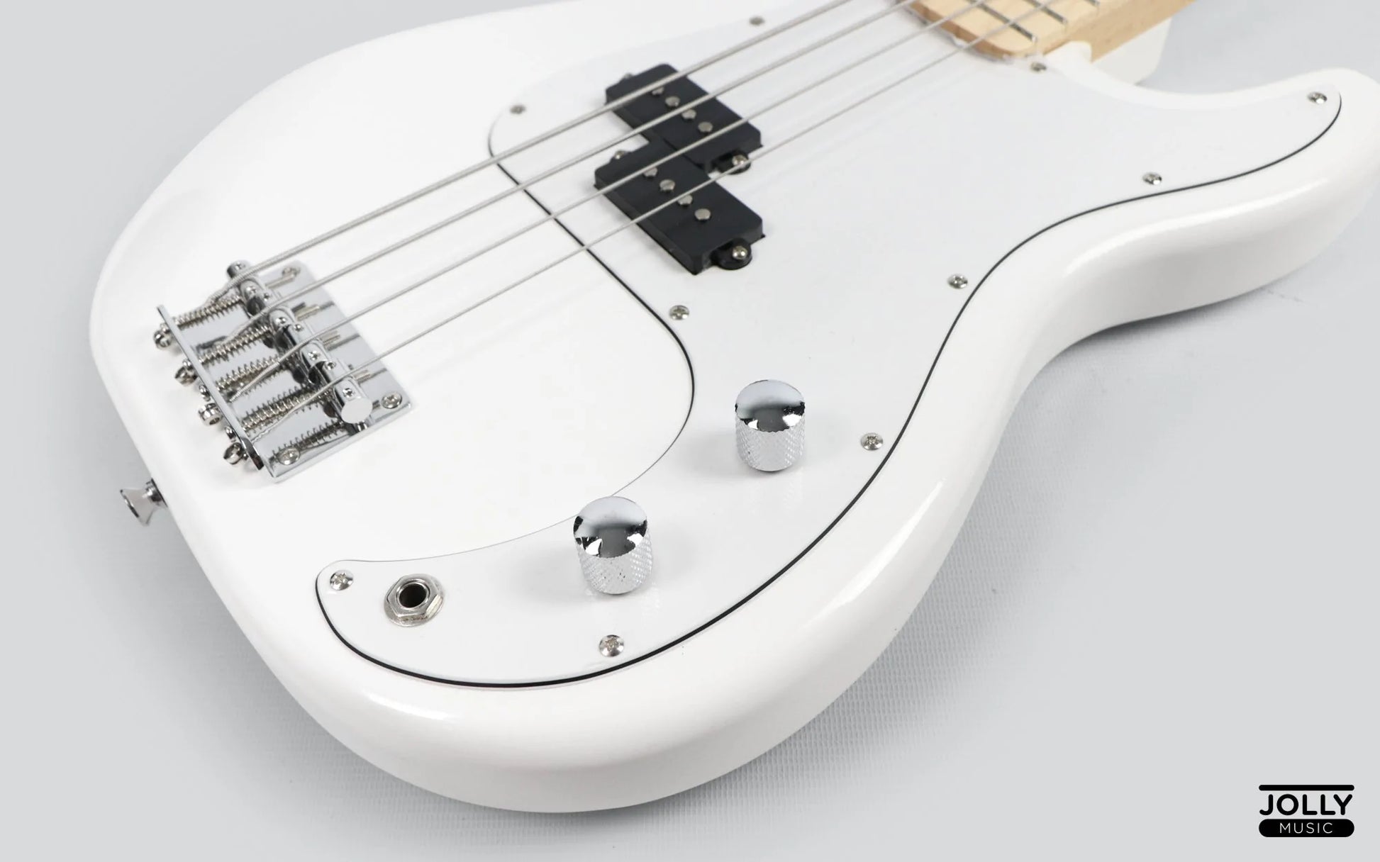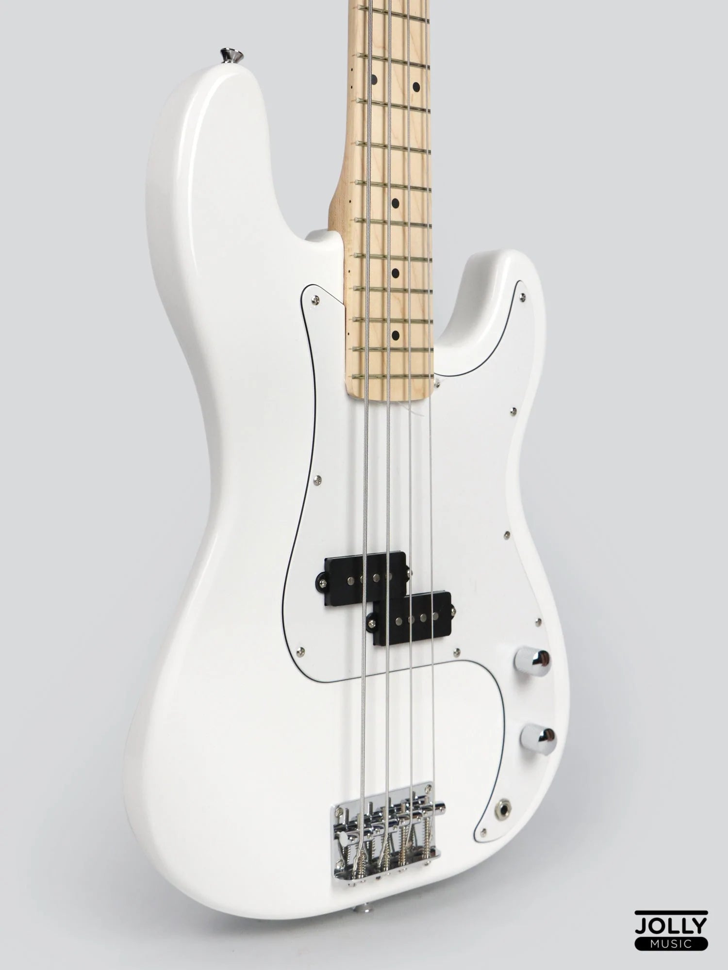 JCraft PB-1 4-String Electric Bass Guitar with Gigbag - Triple White