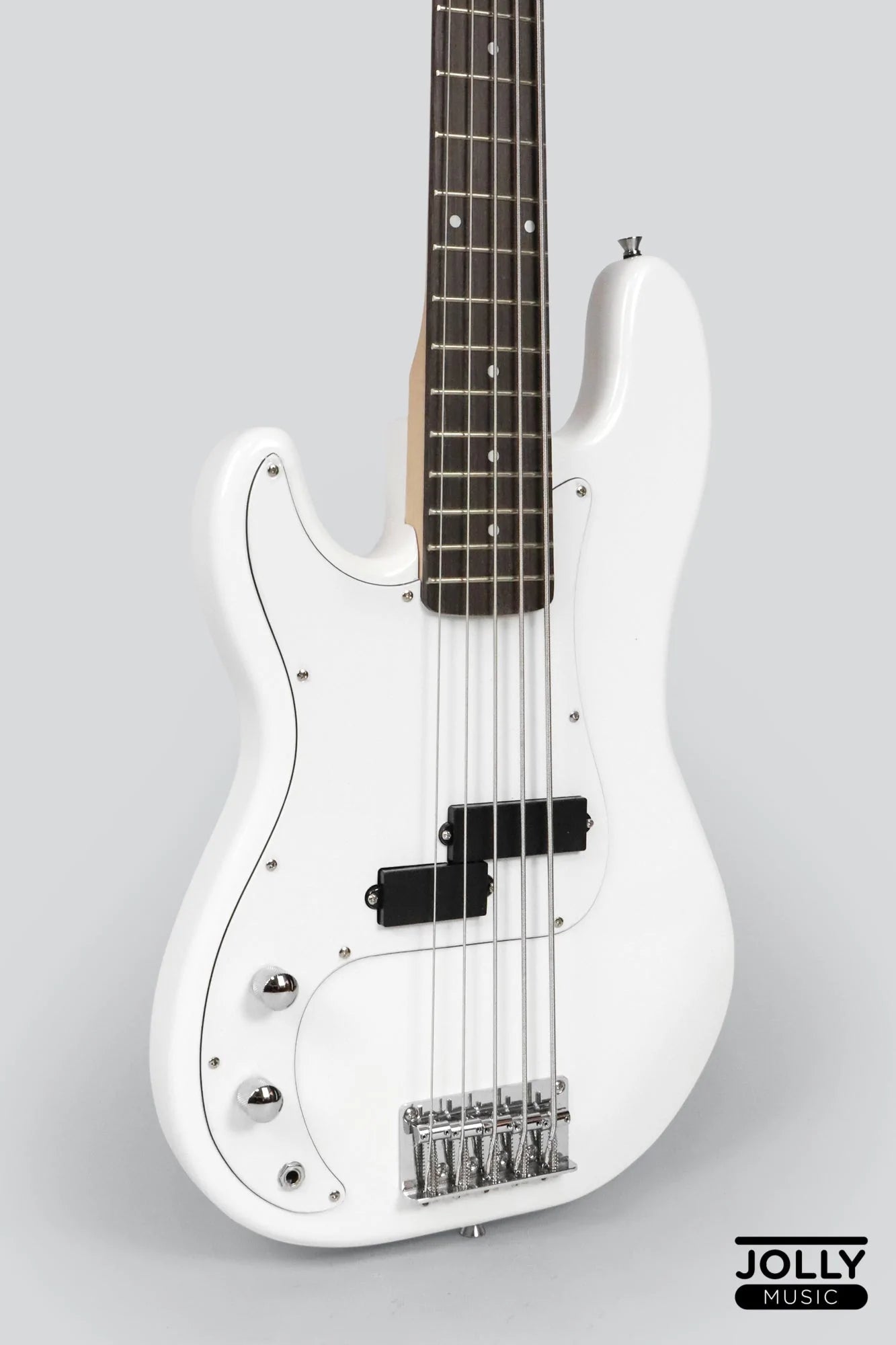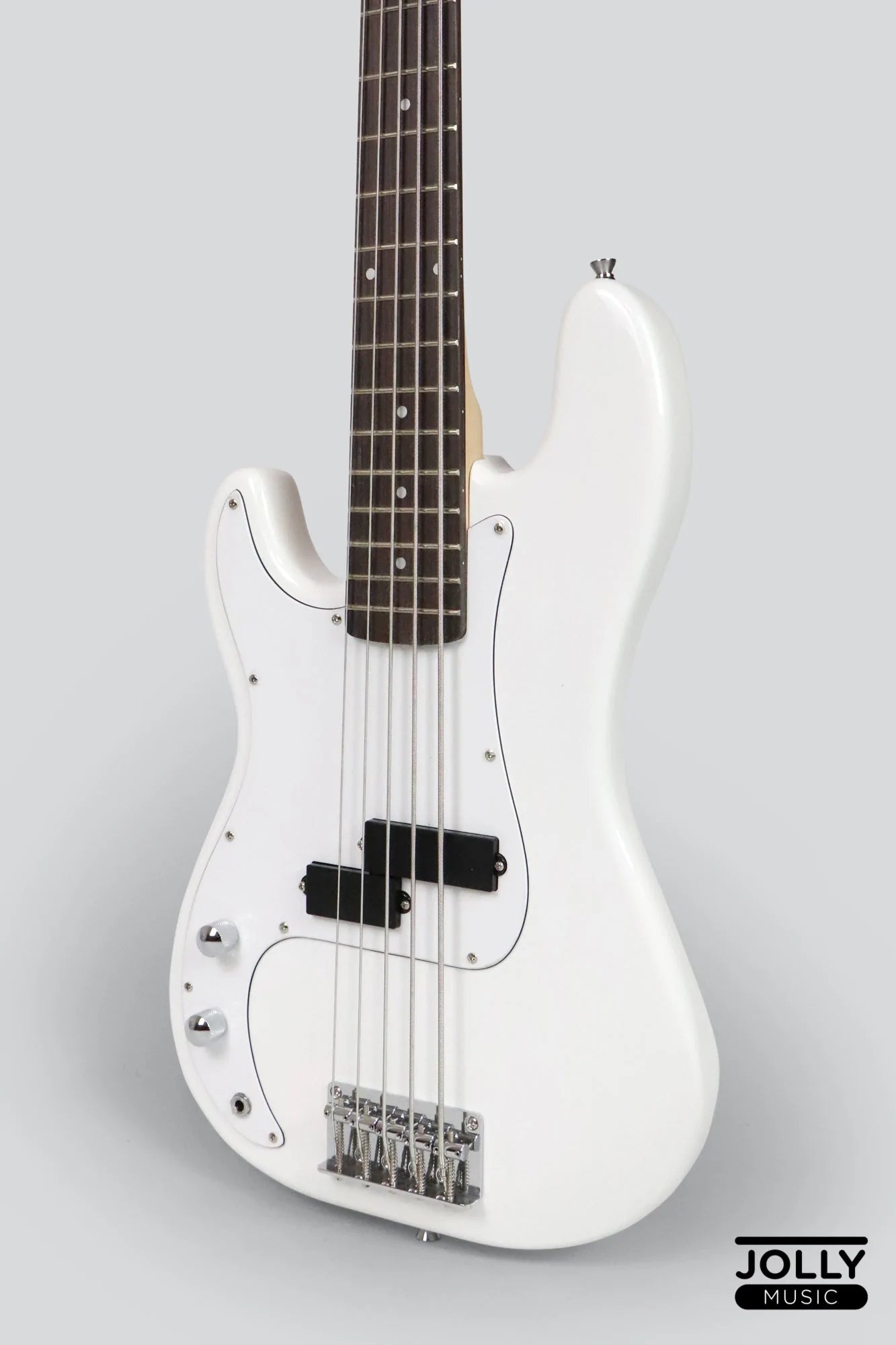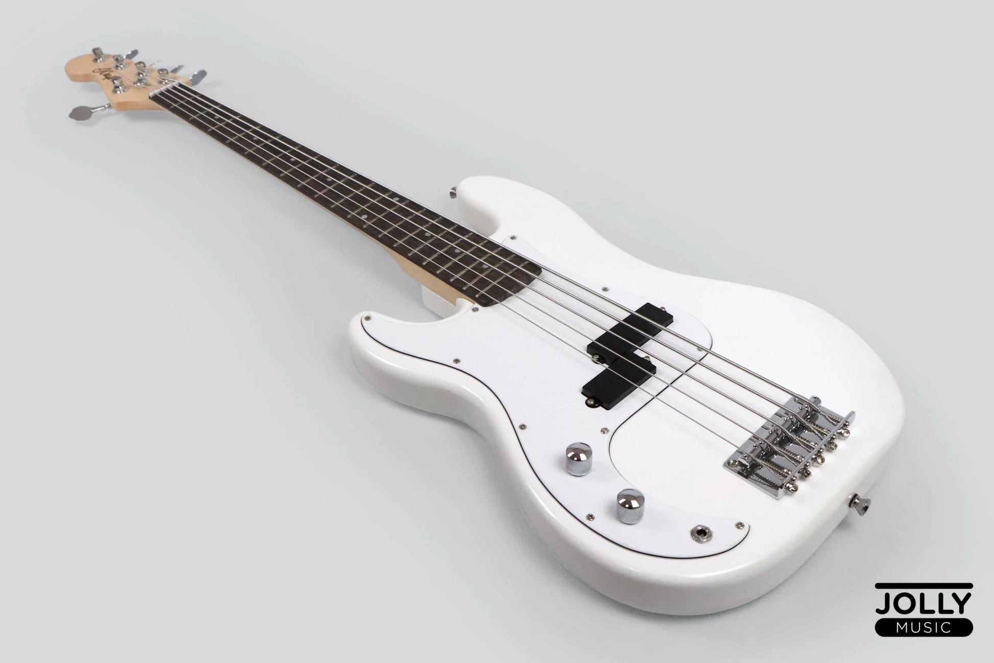 JCraft PB-1 Left Handed 5-String Electric Bass Guitar with Gigbag - Triple White