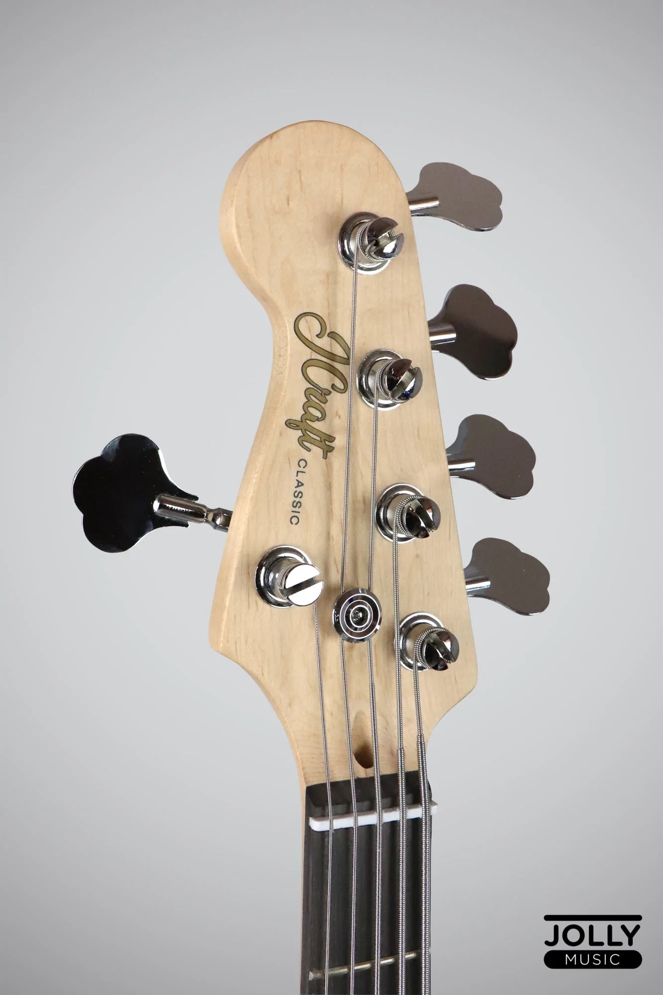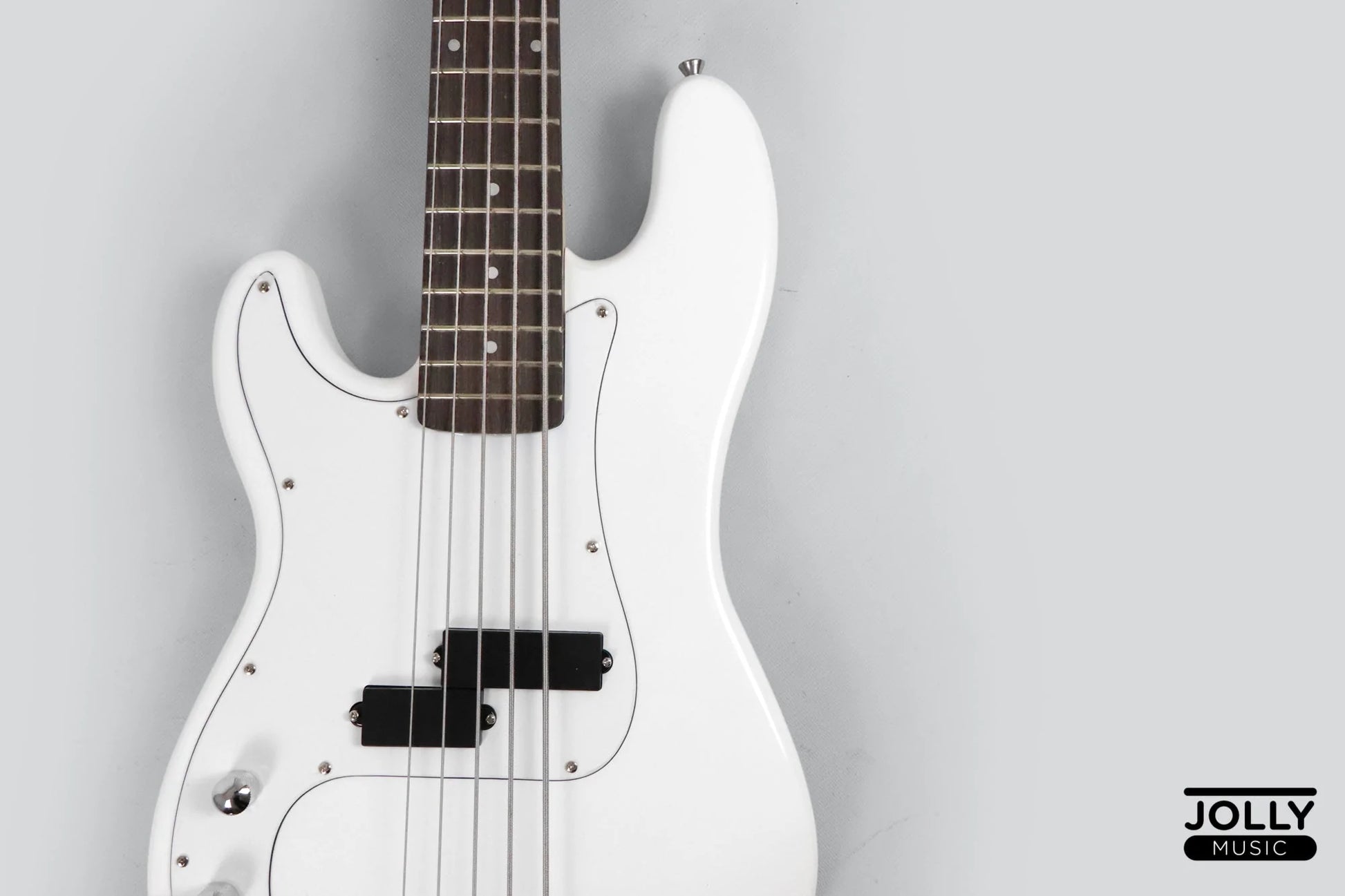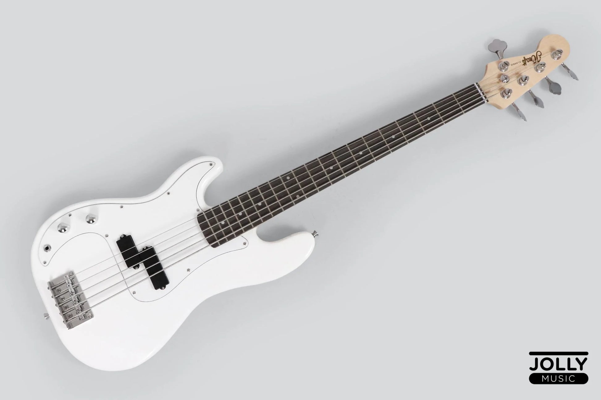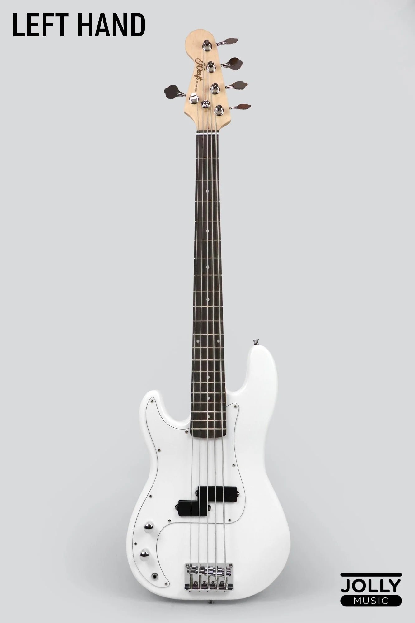 JCraft PB-1 Left Handed 5-String Electric Bass Guitar with Gigbag - Triple White