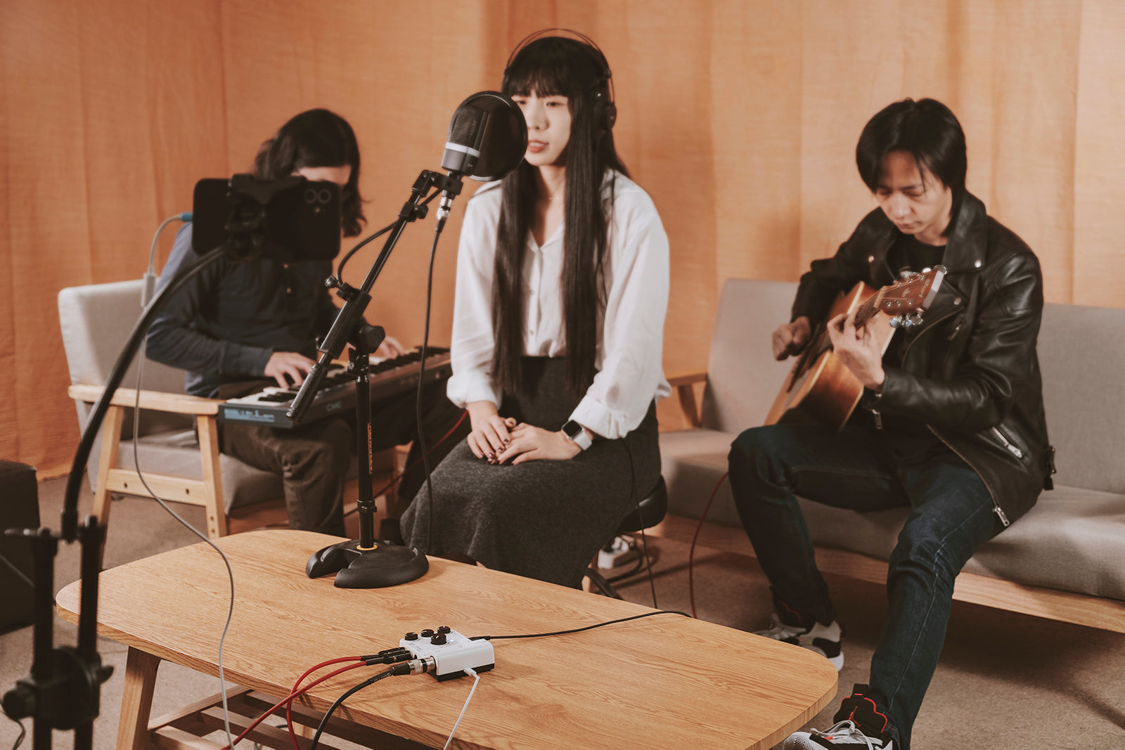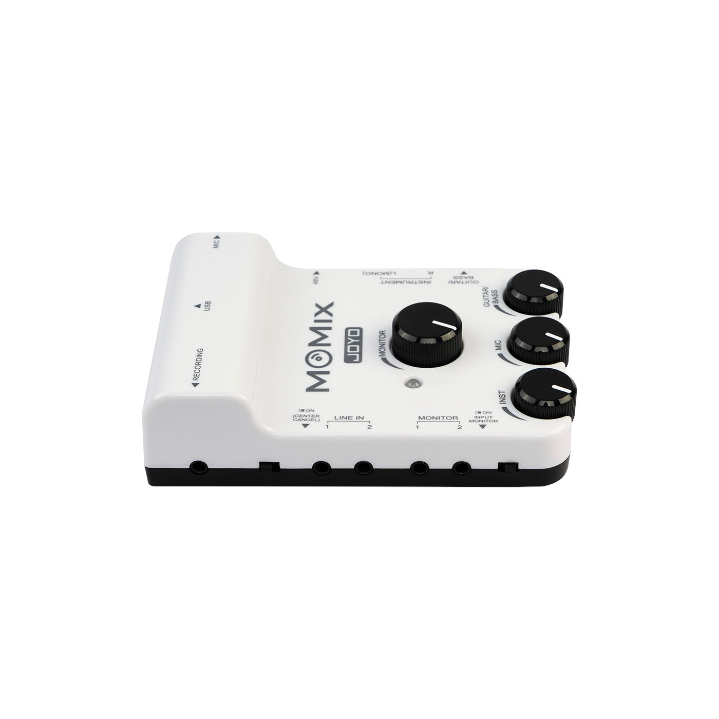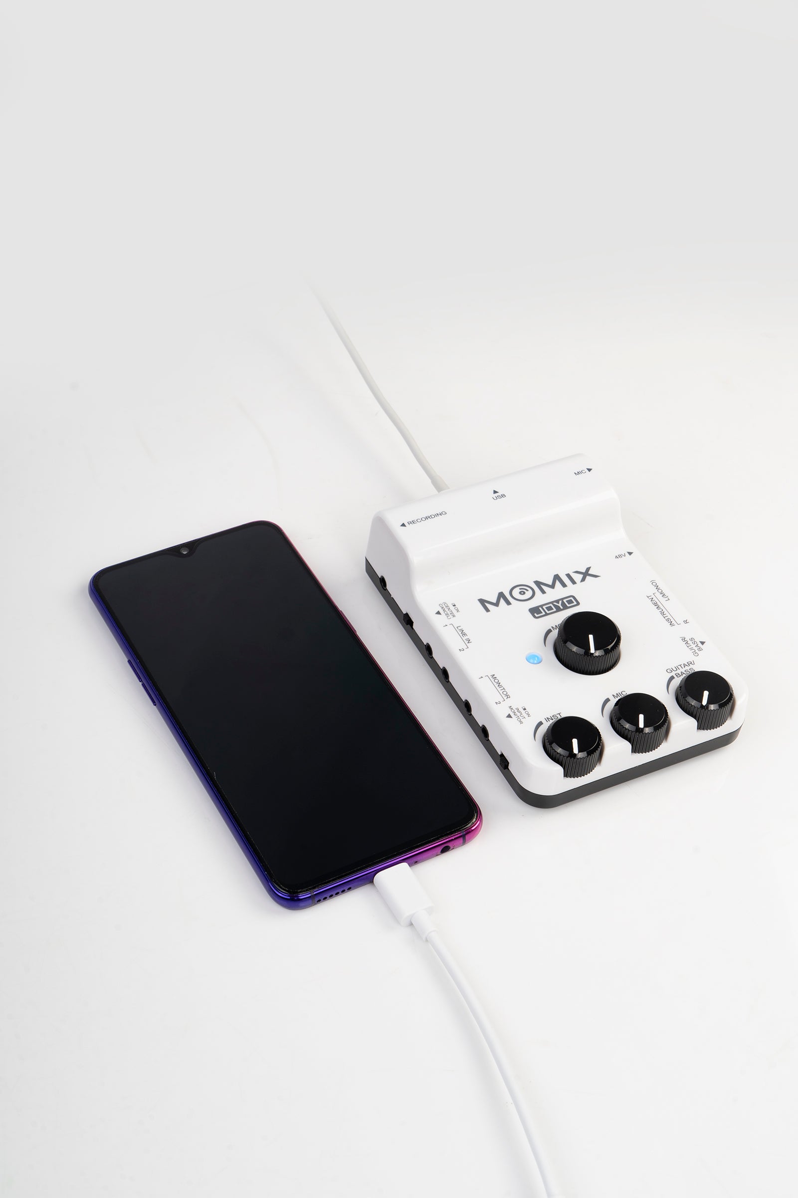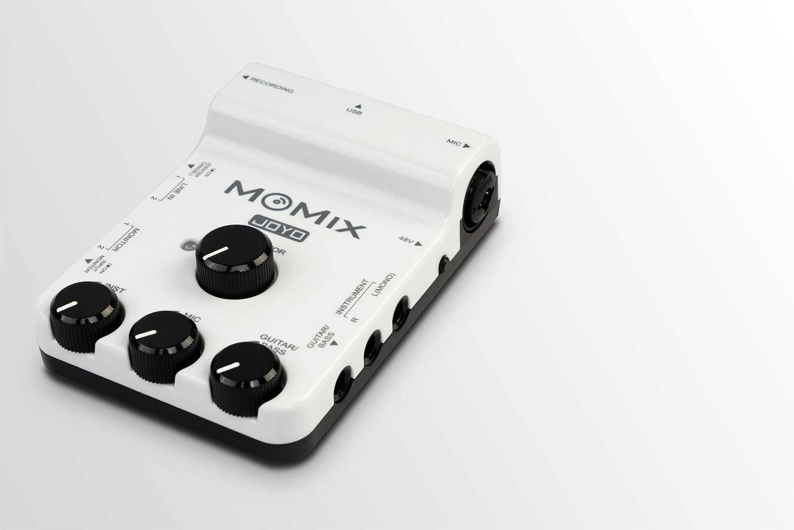 MOMIX is a mixer for portable device's recording&live streaming, you can connect it to microphone, guitars , keyboard, electronic drum sets and more, and 2 stereo line-level input Jacks for your multi-media equipment.