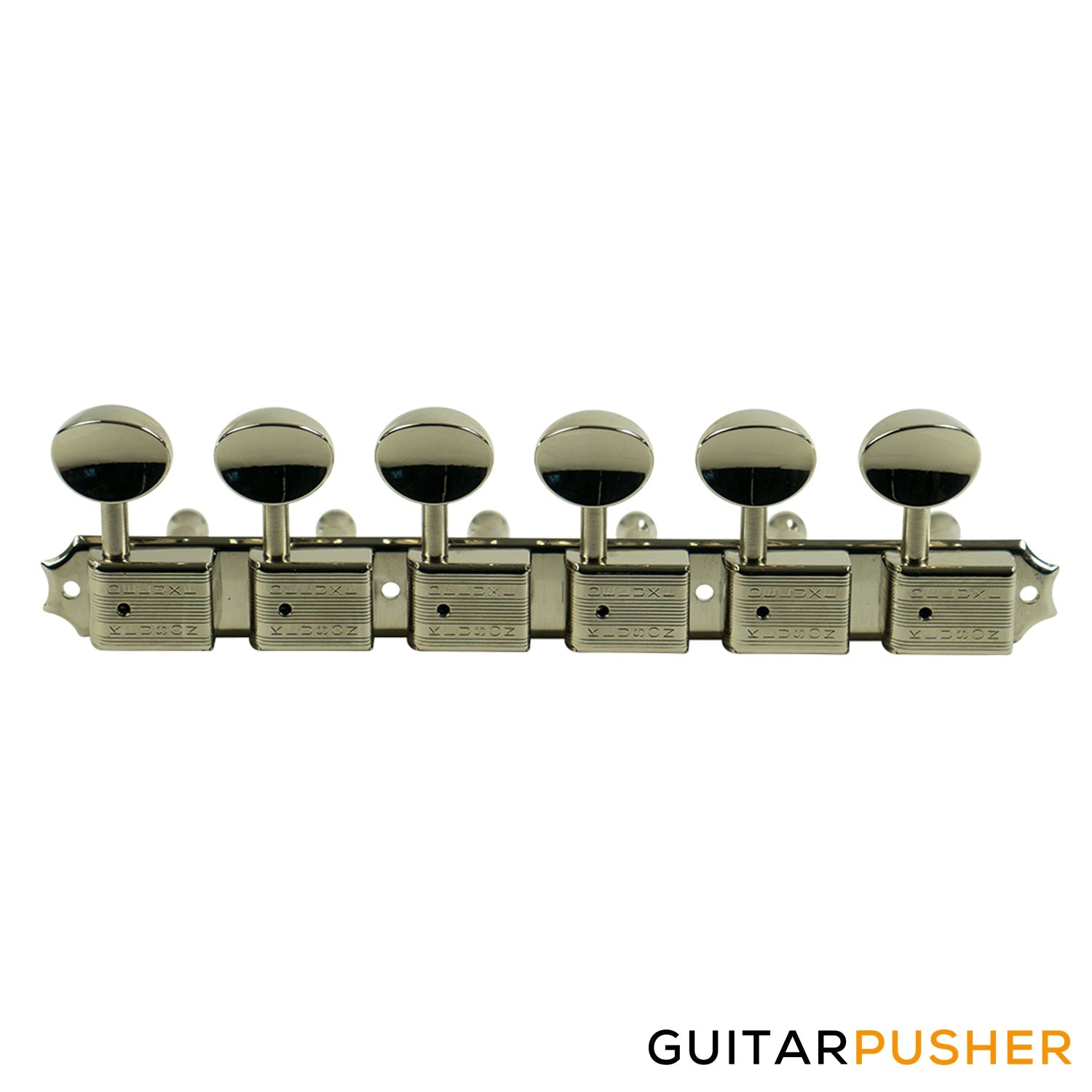 Kluson 6 on a Plate Deluxe Series Oval Metal Button Machine Head Tuner Nickel