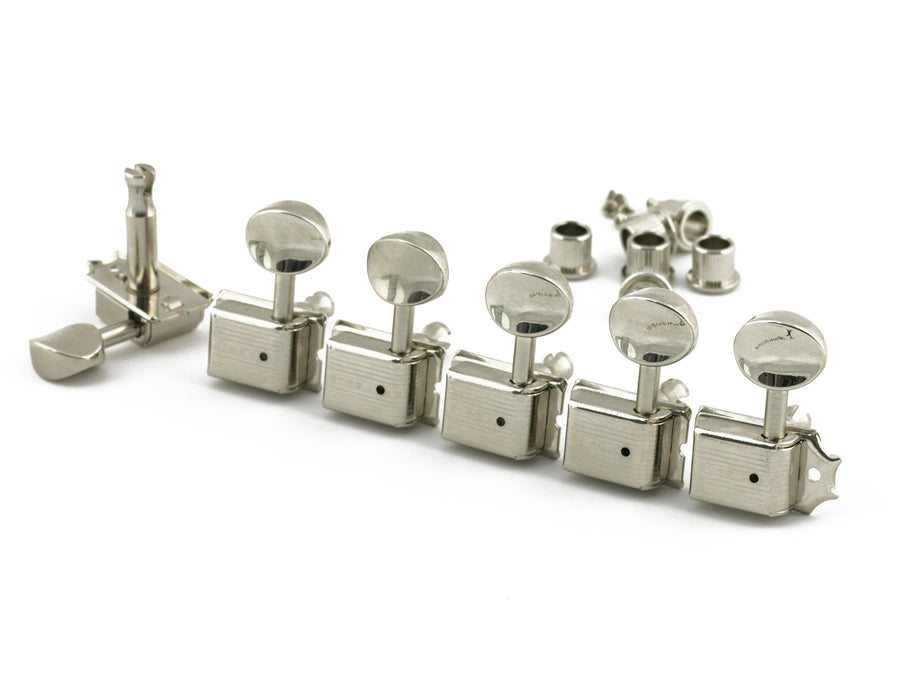 Kluson Traditional - 6 in line - Oval Metal Button Machine Head Tuner Nickel - LEFT HAND / REVERSE HEADSTOCK