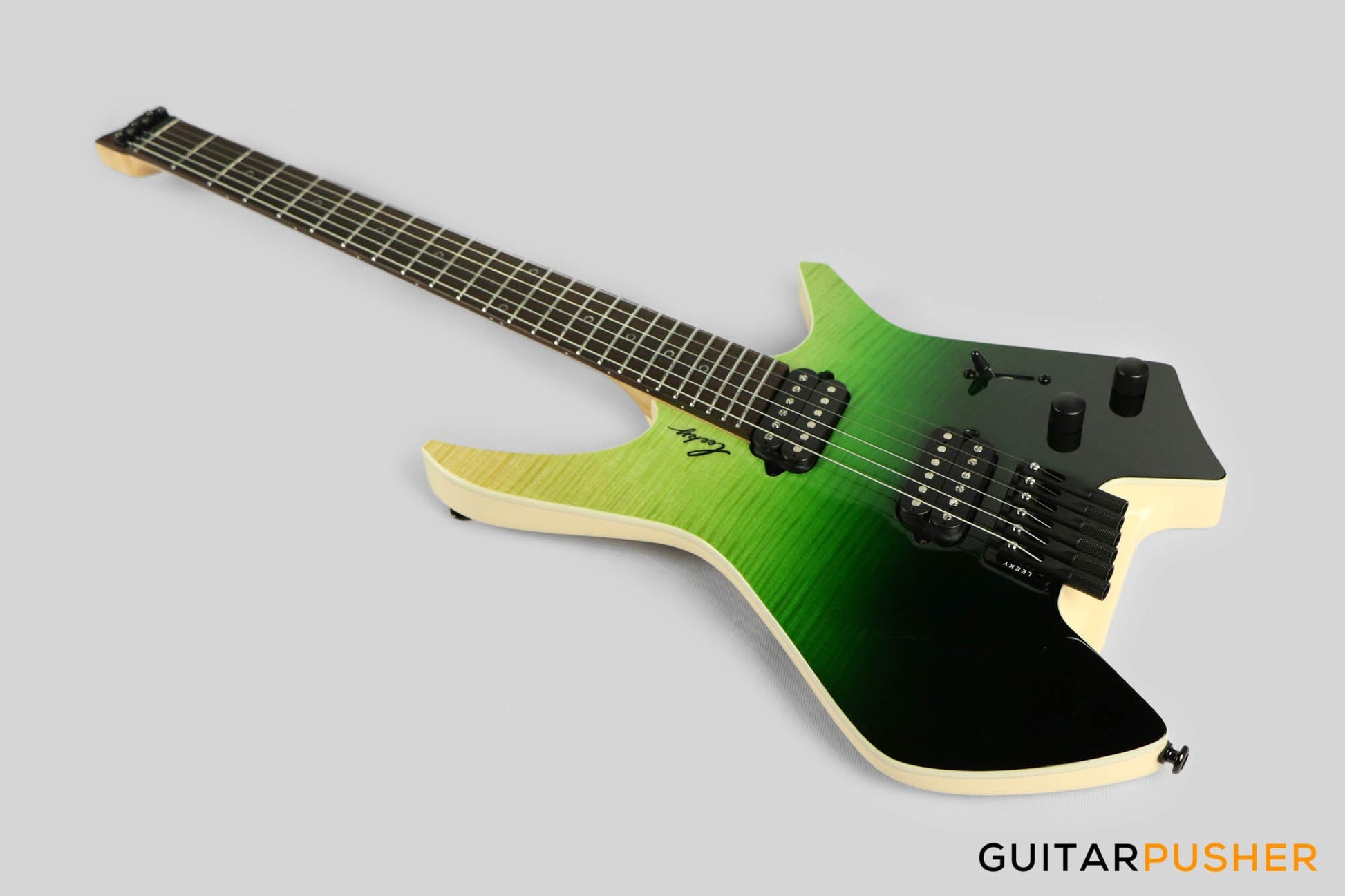 Leeky X-Series X15 Headless Electric Guitar Roasted Basswood Body Maple Top Maple Neck Rosewood Fingerboard - Green Burst