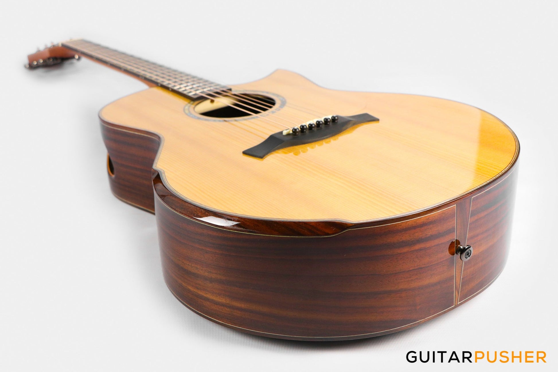Maestro Custom Series epitomizes what a finely handcrafted guitar should be. Delicately handcrafted from the inside out by Maestro's highly-trained luthiers, individually selected and tap-tuned soundboards by Hozen, luthier-grade american hot hide-glue to ensure optimal transfer of vibration and improve tonal response, dovetail neck joint for enhanced sustain, and carbon fiber reinforced Khaya Mahogany necks. Available in popular tonewood combinations furnished with custom options such as Soundport, Beveled Armrest, and Florentine Cutaway, each Custom Series guitar is finely built to exceed your every expectation.