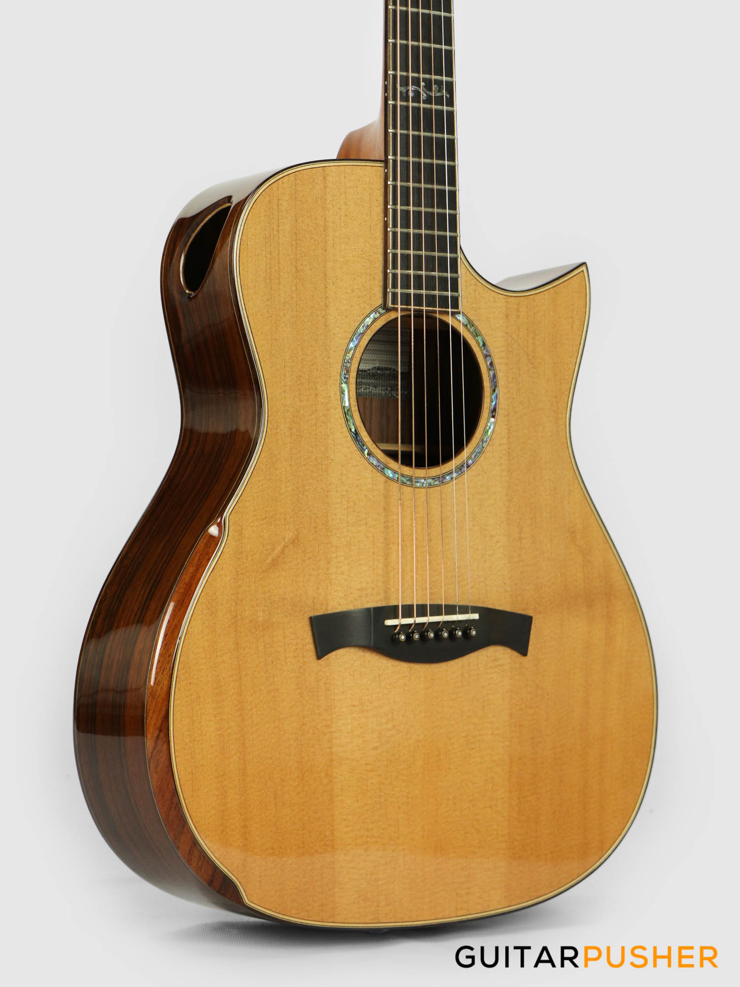 Maestro Custom Series epitomizes what a finely handcrafted guitar should be. Delicately handcrafted from the inside out by Maestro's highly-trained luthiers, individually selected and tap-tuned soundboards by Hozen, luthier-grade american hot hide-glue to ensure optimal transfer of vibration and improve tonal response, dovetail neck joint for enhanced sustain, and carbon fiber reinforced Khaya Mahogany necks. Available in popular tonewood combinations furnished with custom options such as Soundport, Beveled Armrest, and Florentine Cutaway, each Custom Series guitar is finely built to exceed your every expectation.