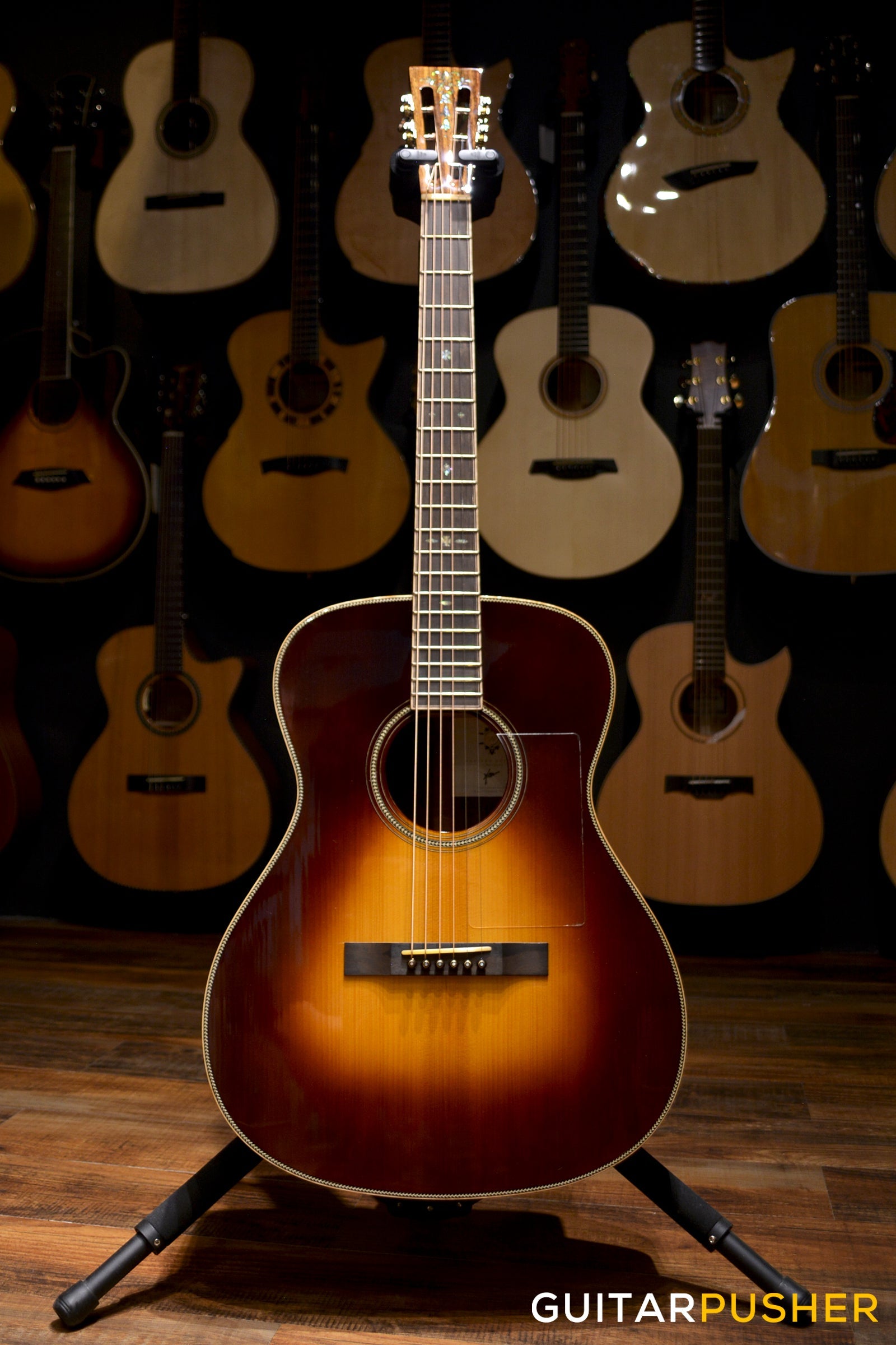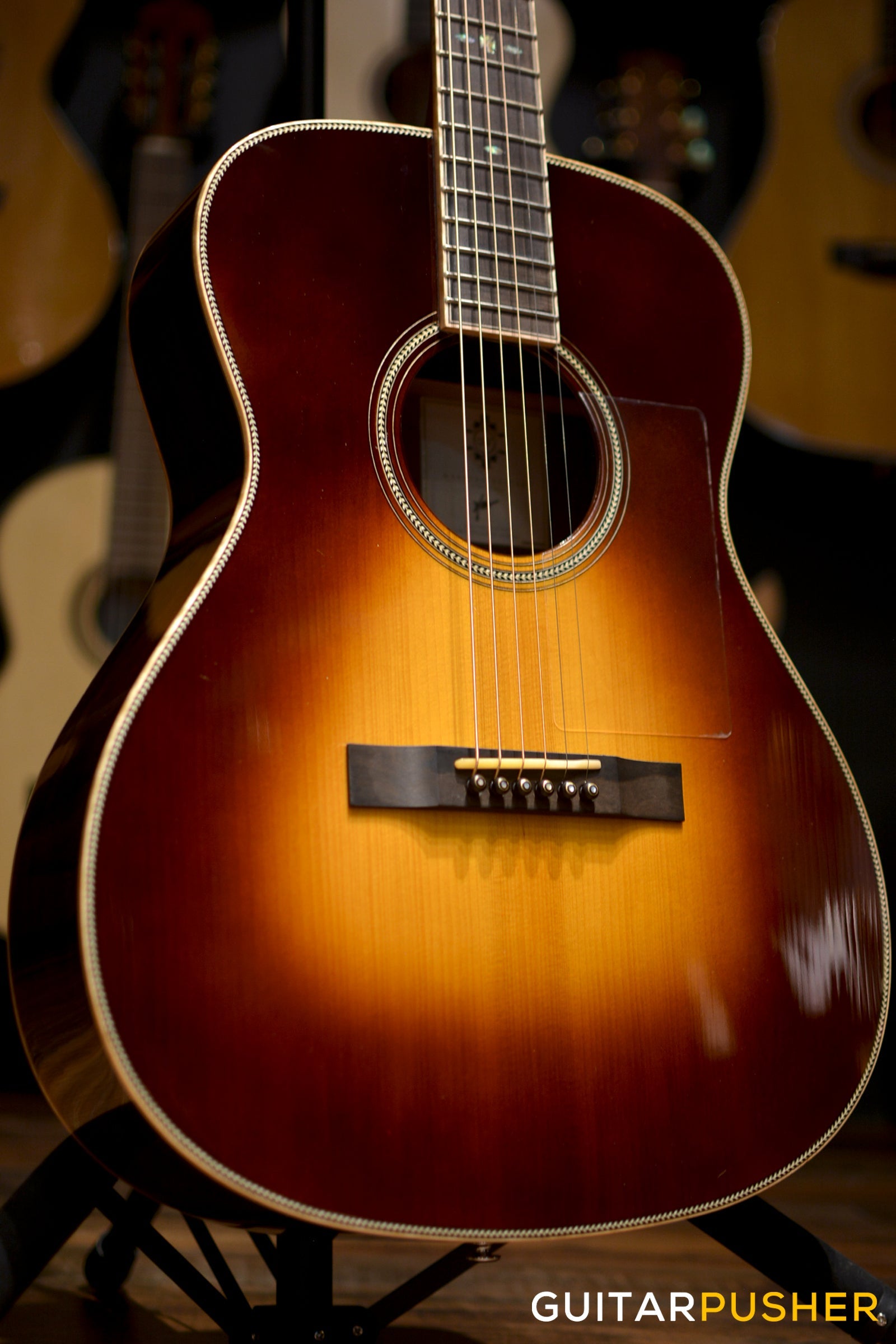 Bridging the old and the new, these guitars present a vintage vibe with modern appointments. Available in both solid square headstock and slotted headstock accompanied by fine details of Herringbone purfling and Abalone inlays, they are furnished with Carbon Fiber Reinforced necks and Reversed Kerfing – weaving tradition with innovation.
