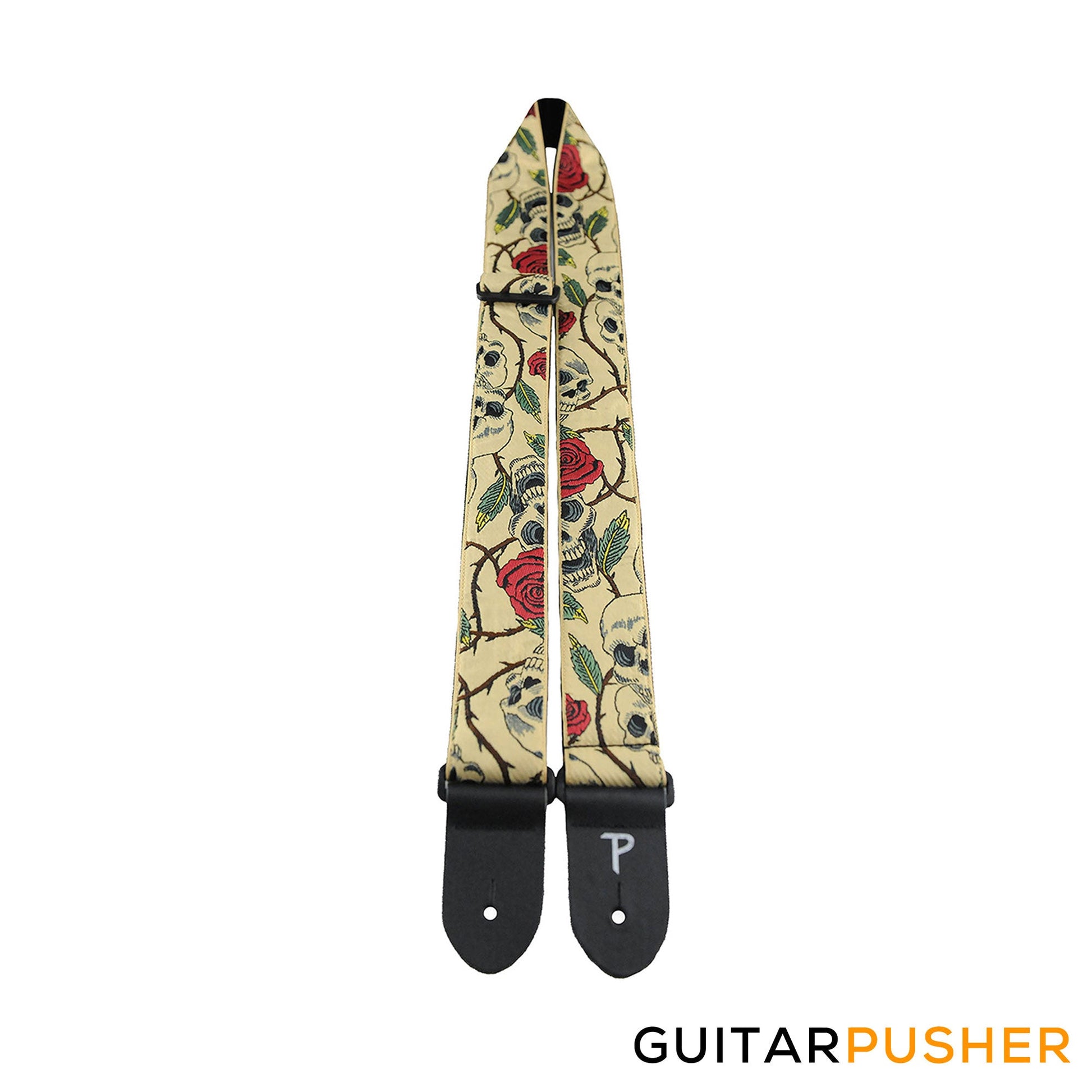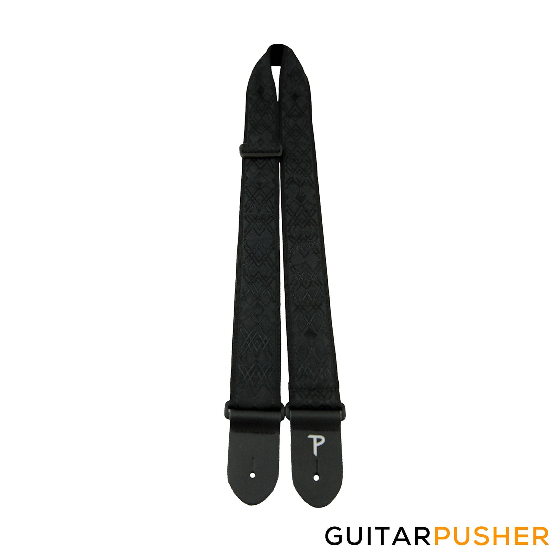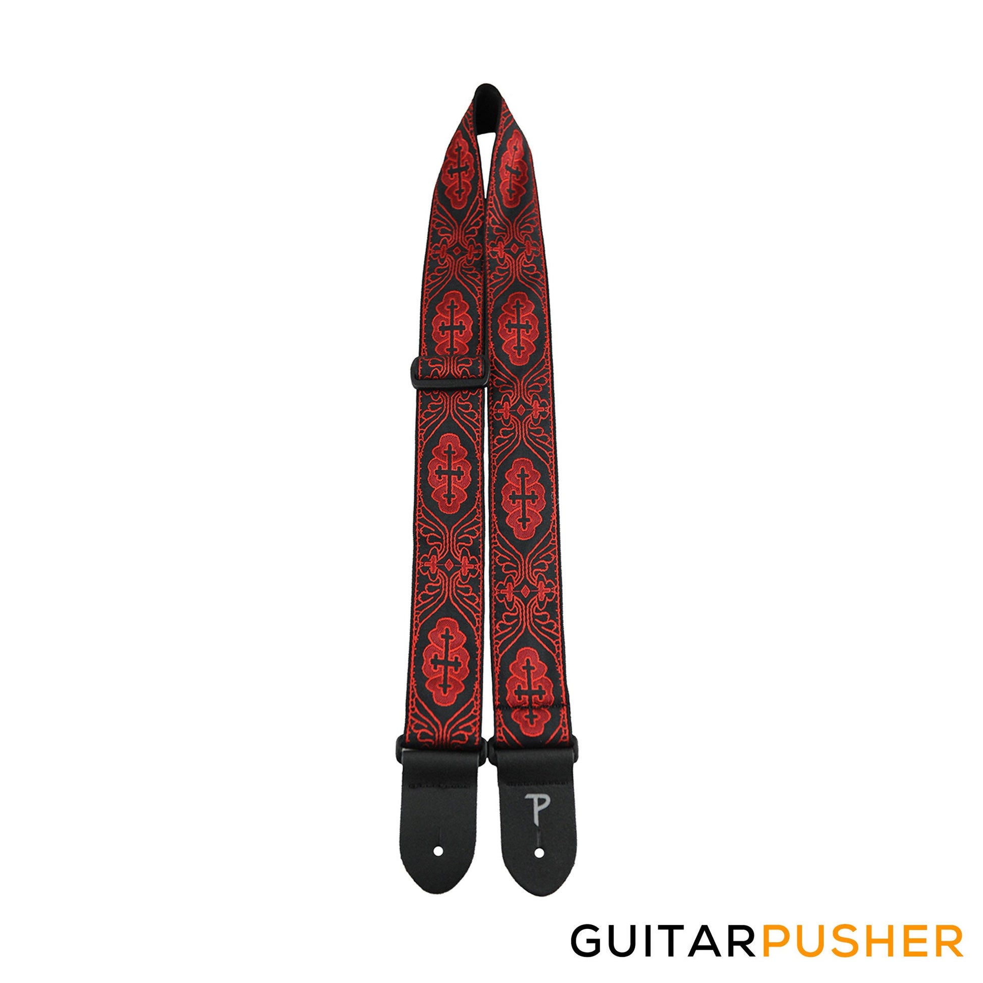 Perri's Leather Jacquard 2" Guitar Strap Ribbon Sewn on Tubular Webbing w/ Leather Ends