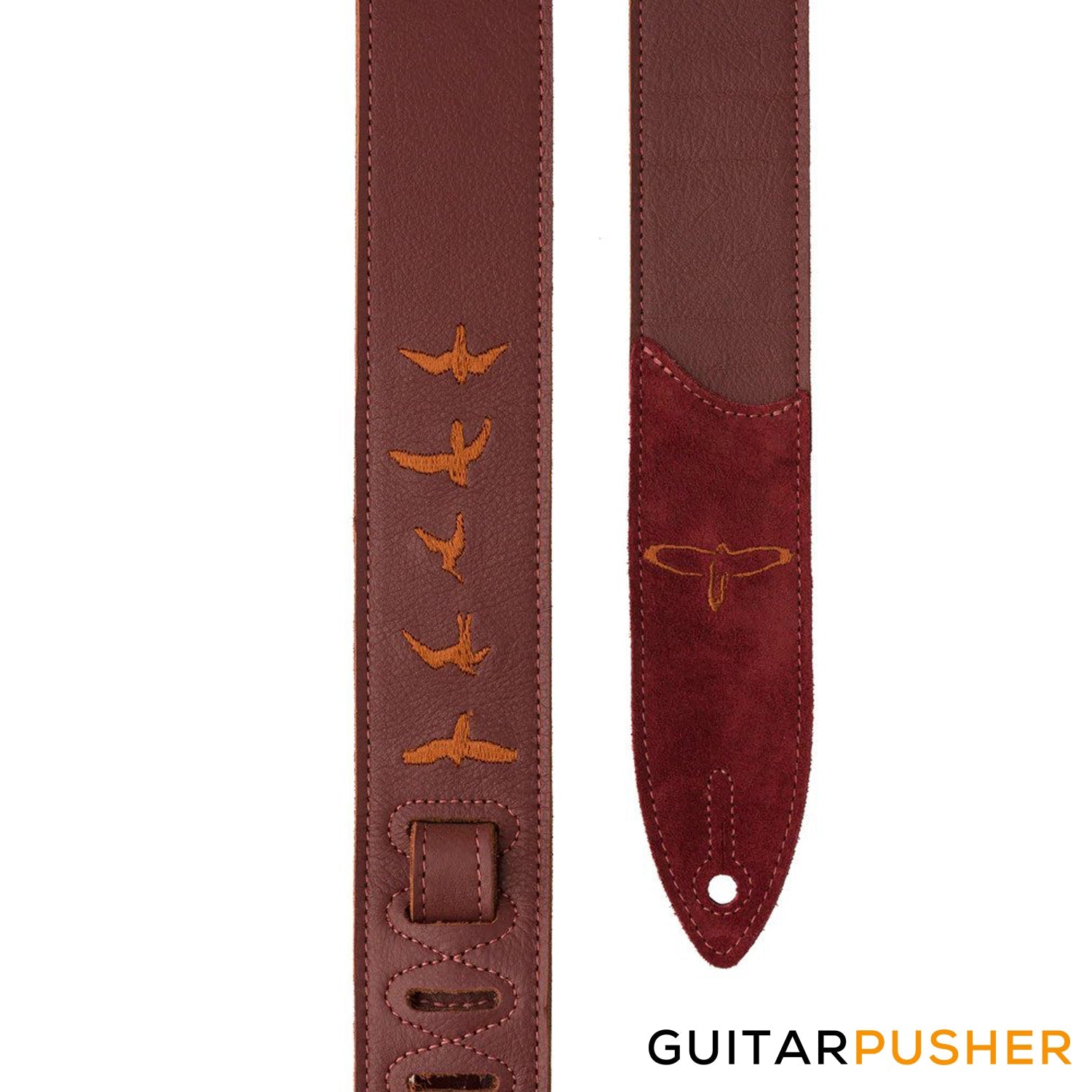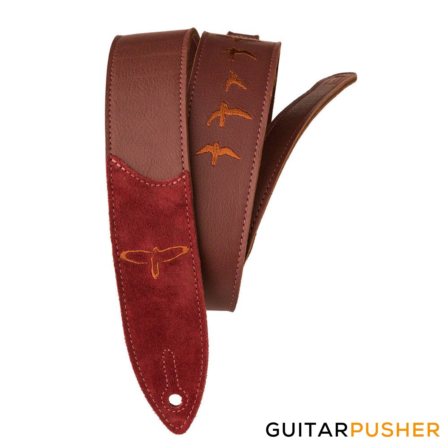 Beautifully crafted 2" premium black leather strap with bird embroidery. A strap truly worthy of your PRS guitar. Leather ends with pinholes cut specifically with your PRS guitar in mind. Will fit electric and acoustic instruments. Two different colors to choose from. (ACC-3166)