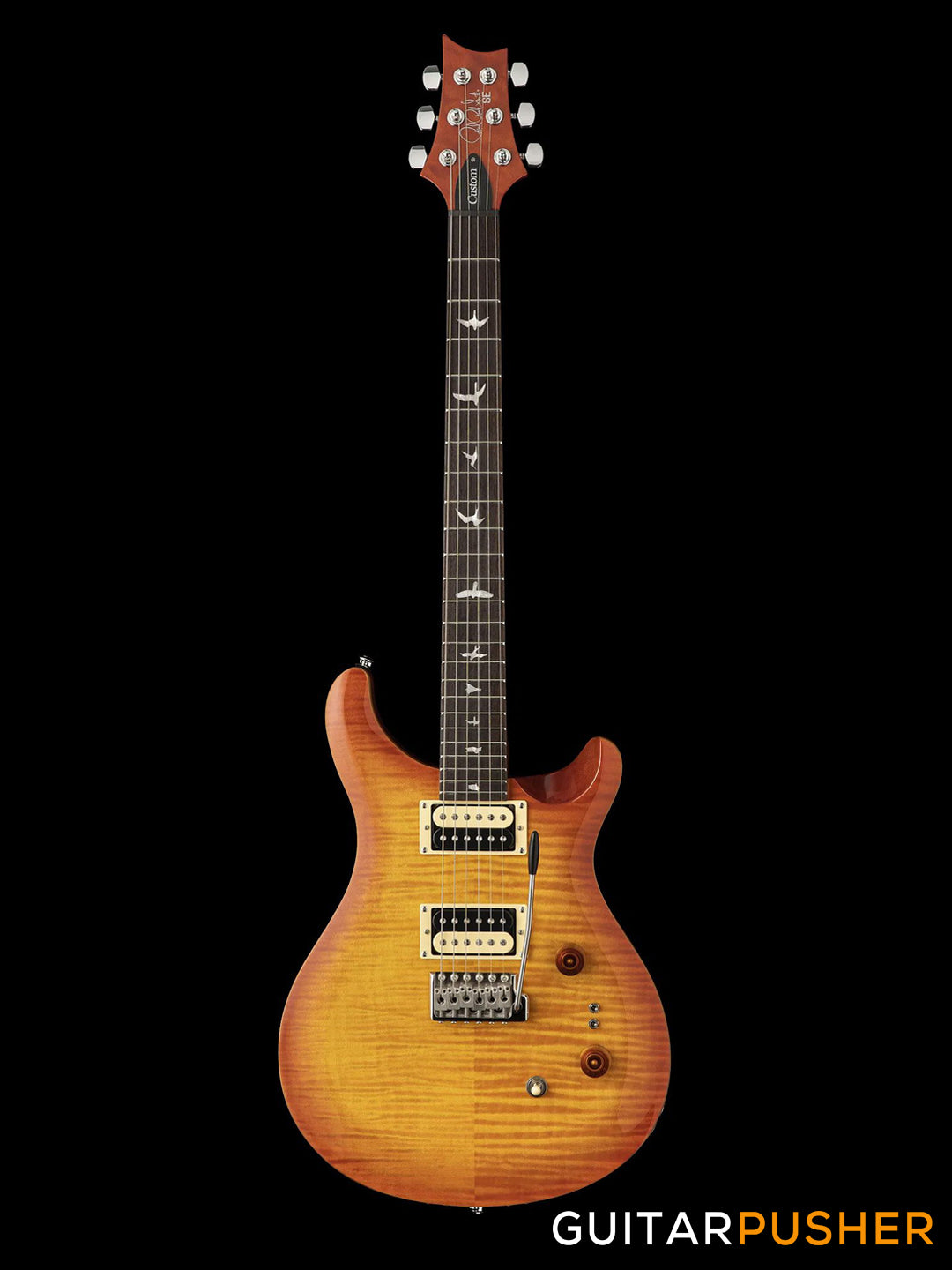The Custom 24 is the quintessential PRS guitar: the iconic guitar that started it all back in 1985. The Custom 24-08 keeps all the foundational specs of the instrument, while taking the Custom platform to new sonic territories. Like the Core Series instrument, the SE Custom 24-08 features two mini-toggle coil tap switches that individually split the humbuckers into true single coils for a total of eight pickups configurations. Classic design elements include a maple top, mahogany back, rosewood fretboard, 24 frets, 25” scale length, bird inlays, signature headstock logo, and PRS patented tremolo.