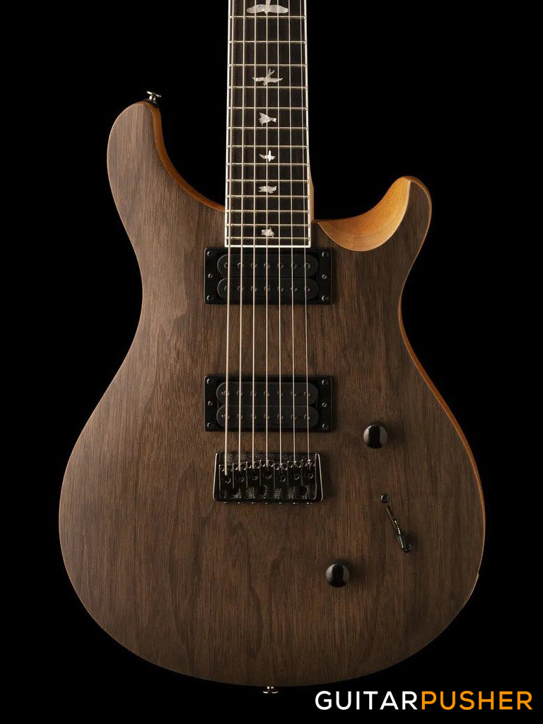 The SE Mark Holcomb SVN model truly stands on its own in the PRS lineup and delivers addictive playability thanks to some unique specifications, including a 24-fret, 26.5” scale length, wide thin satin maple neck with 20” radius ebony fretboard. Holcomb’s signature Seymour Duncan Alpha and Omega 7-string pickups provide the right amount of output and articulation whether you’re playing sophisticated chords or solos and whether you’re playing alone or working in the mix of a band. Other specifications include black hardware, a 3-way blade pickup switch with push/pull tone knob for coil splitting, and the choice of a quilted maple or walnut veneer. The model is topped off with coil-taps for the pickups and a string-through, plate-style, 7-string bridge.