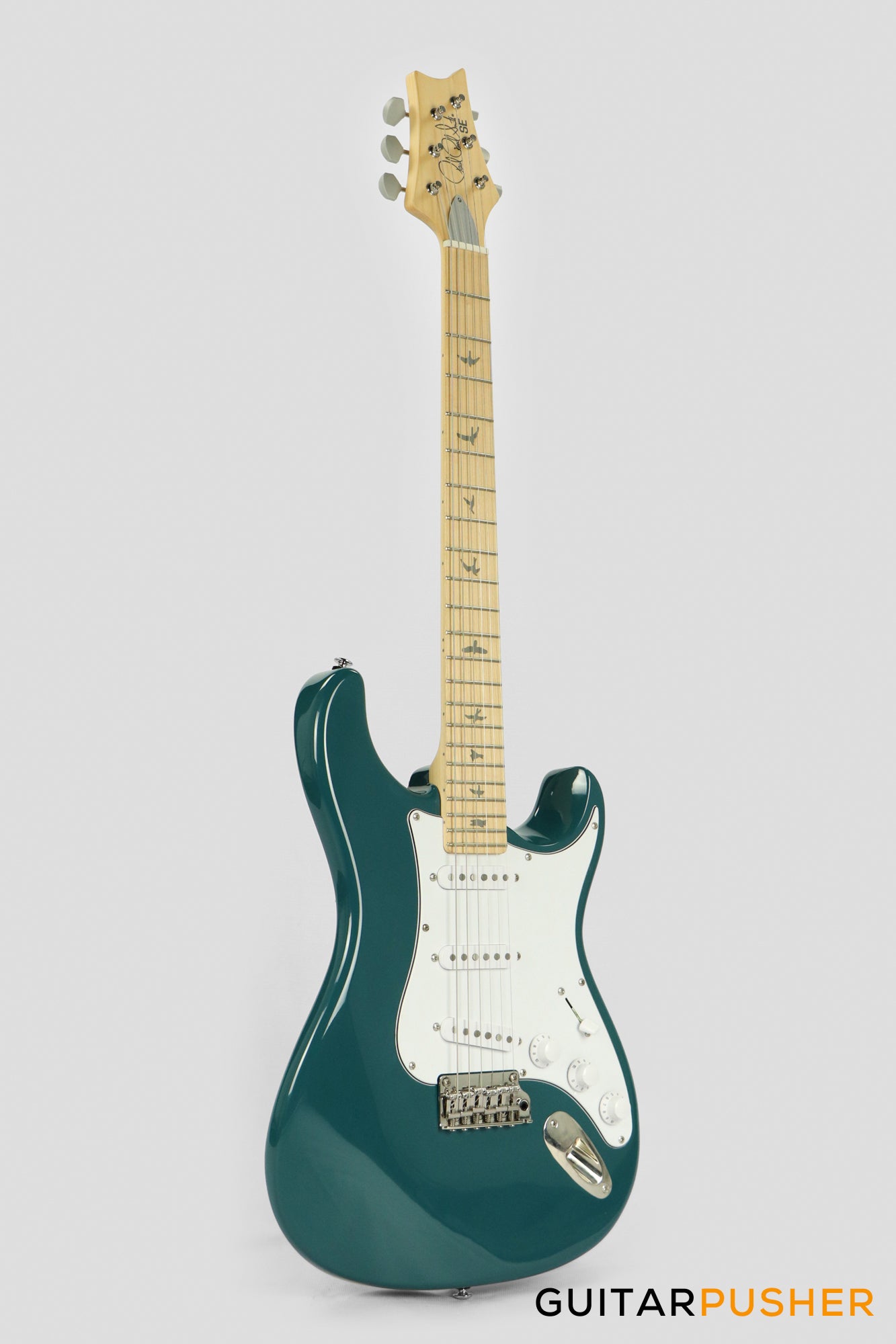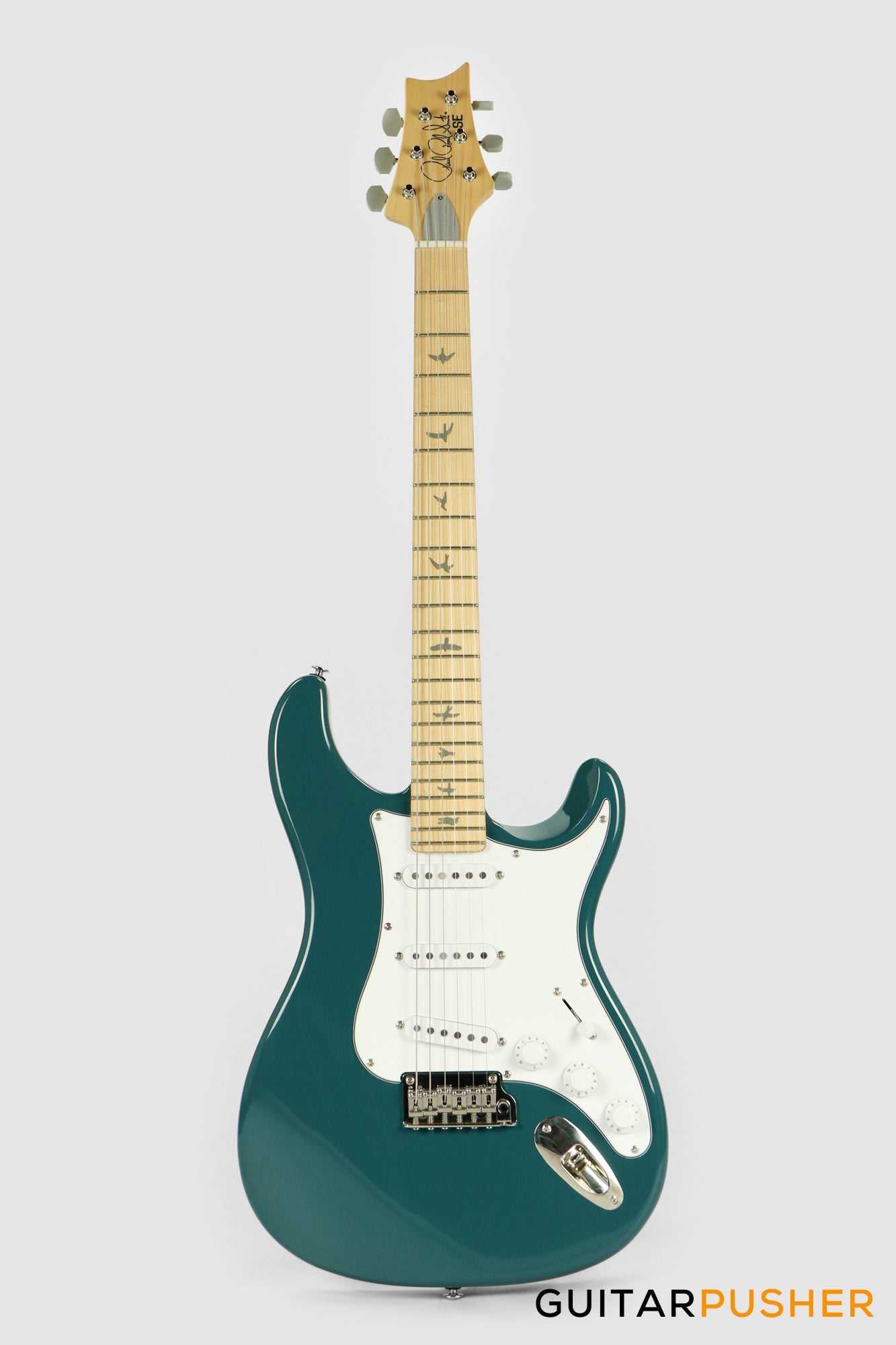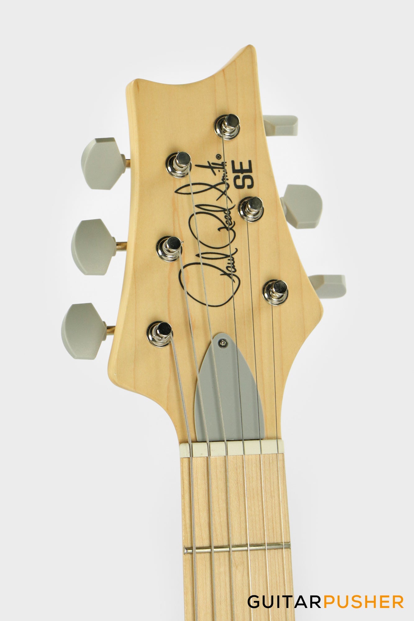 The PRS SE Silver Sky Maple starts with a poplar body, bolt-on maple neck, and maple fretboard with PRS trademark bird inlays. The 22-fret, 25.5” scale length neck features the original 635JM carve and an 8.5” fretboard radius, so the PRS SE Silver Sky will feel right at home. Plug it in, and the three single-coil 635JM “S” pickups will bark and sing. This guitar is anchored by a two-point steel tremolo, synthetic bone nut, and vintage-style tuners. Other design features include the PRS Silver Sky inverted headstock shape and the PRS double-acting truss rod (accessible from the front of the headstock for ease of use). Ships with PRS Classic 10-46 strings and gig bag