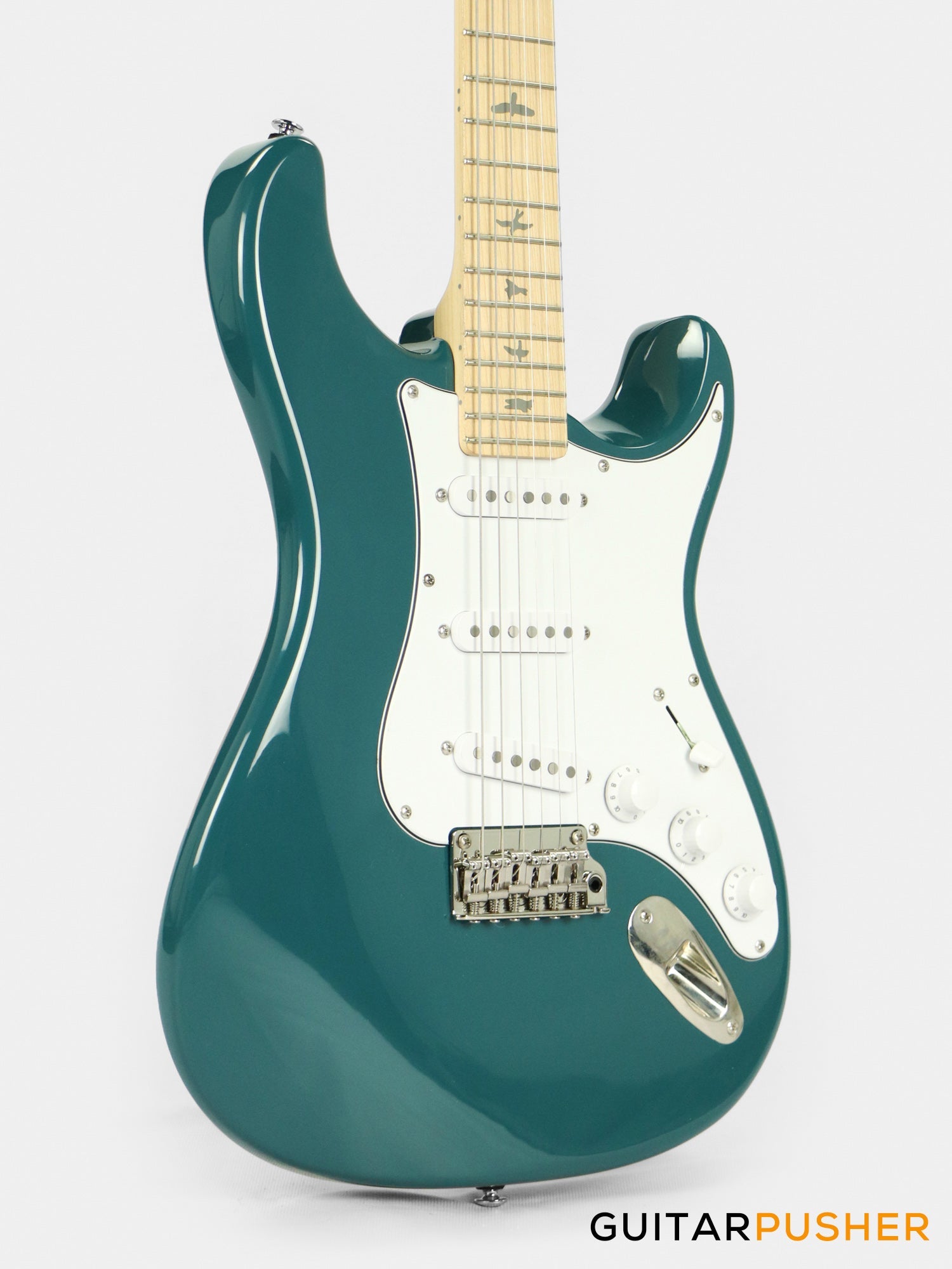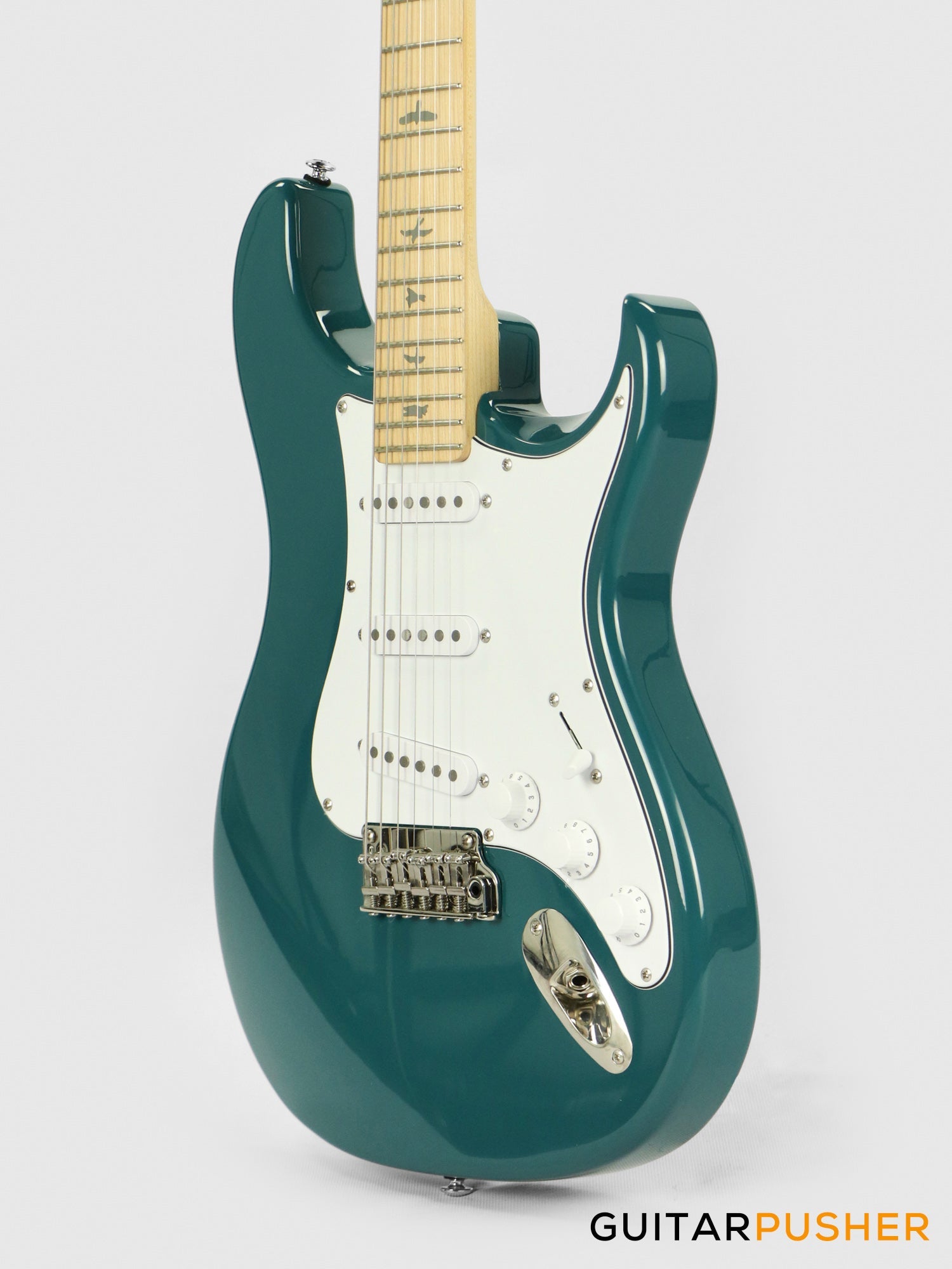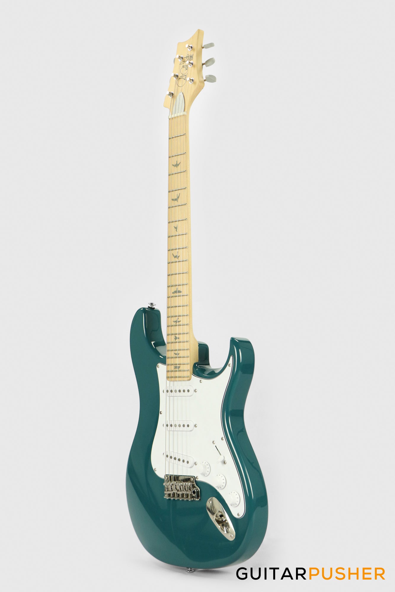 The PRS SE Silver Sky Maple starts with a poplar body, bolt-on maple neck, and maple fretboard with PRS trademark bird inlays. The 22-fret, 25.5” scale length neck features the original 635JM carve and an 8.5” fretboard radius, so the PRS SE Silver Sky will feel right at home. Plug it in, and the three single-coil 635JM “S” pickups will bark and sing. This guitar is anchored by a two-point steel tremolo, synthetic bone nut, and vintage-style tuners. Other design features include the PRS Silver Sky inverted headstock shape and the PRS double-acting truss rod (accessible from the front of the headstock for ease of use). Ships with PRS Classic 10-46 strings and gig bag
