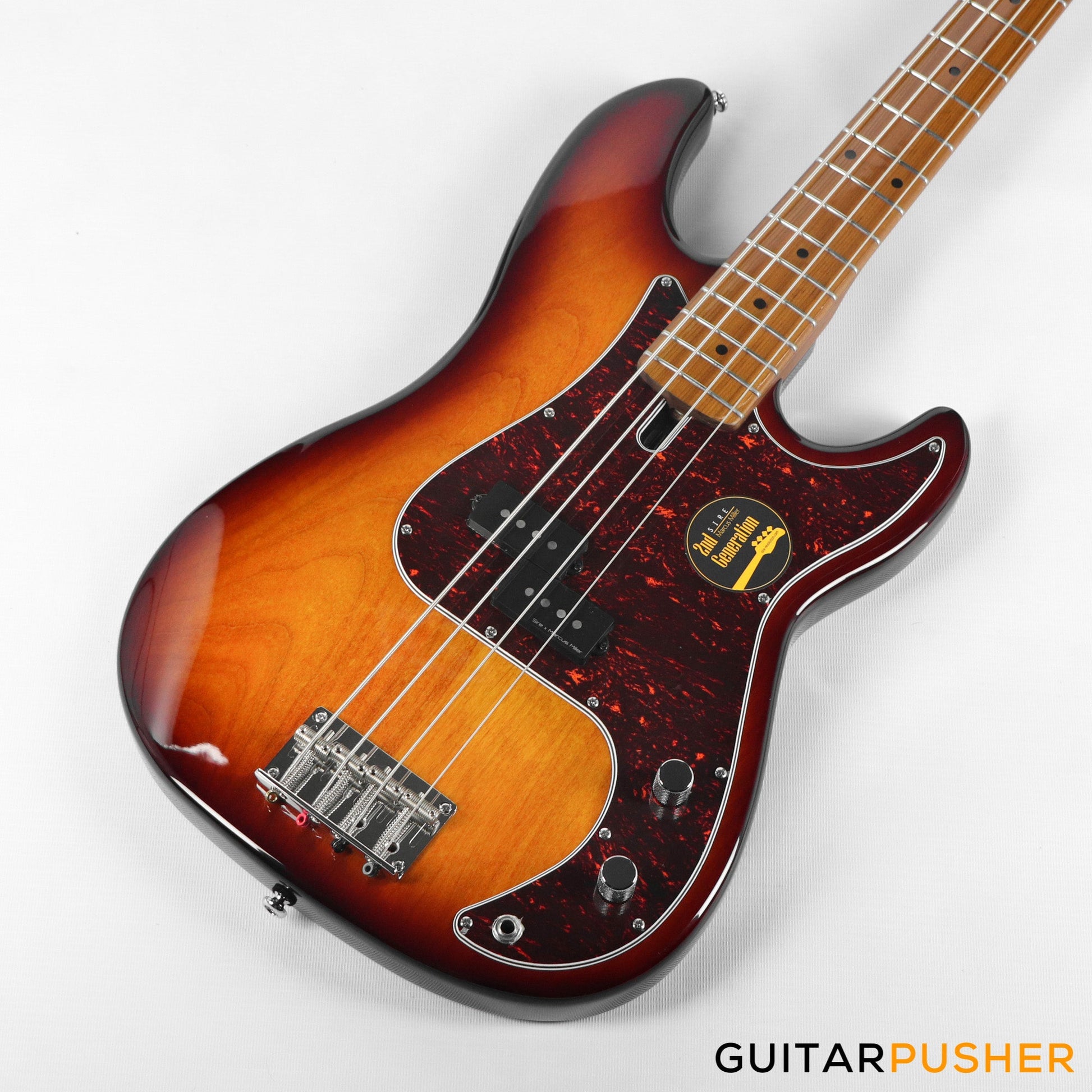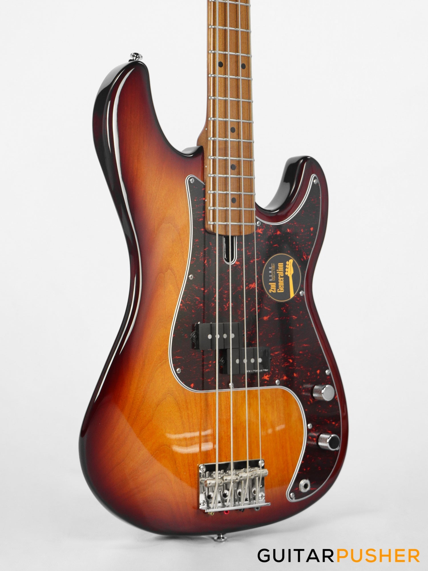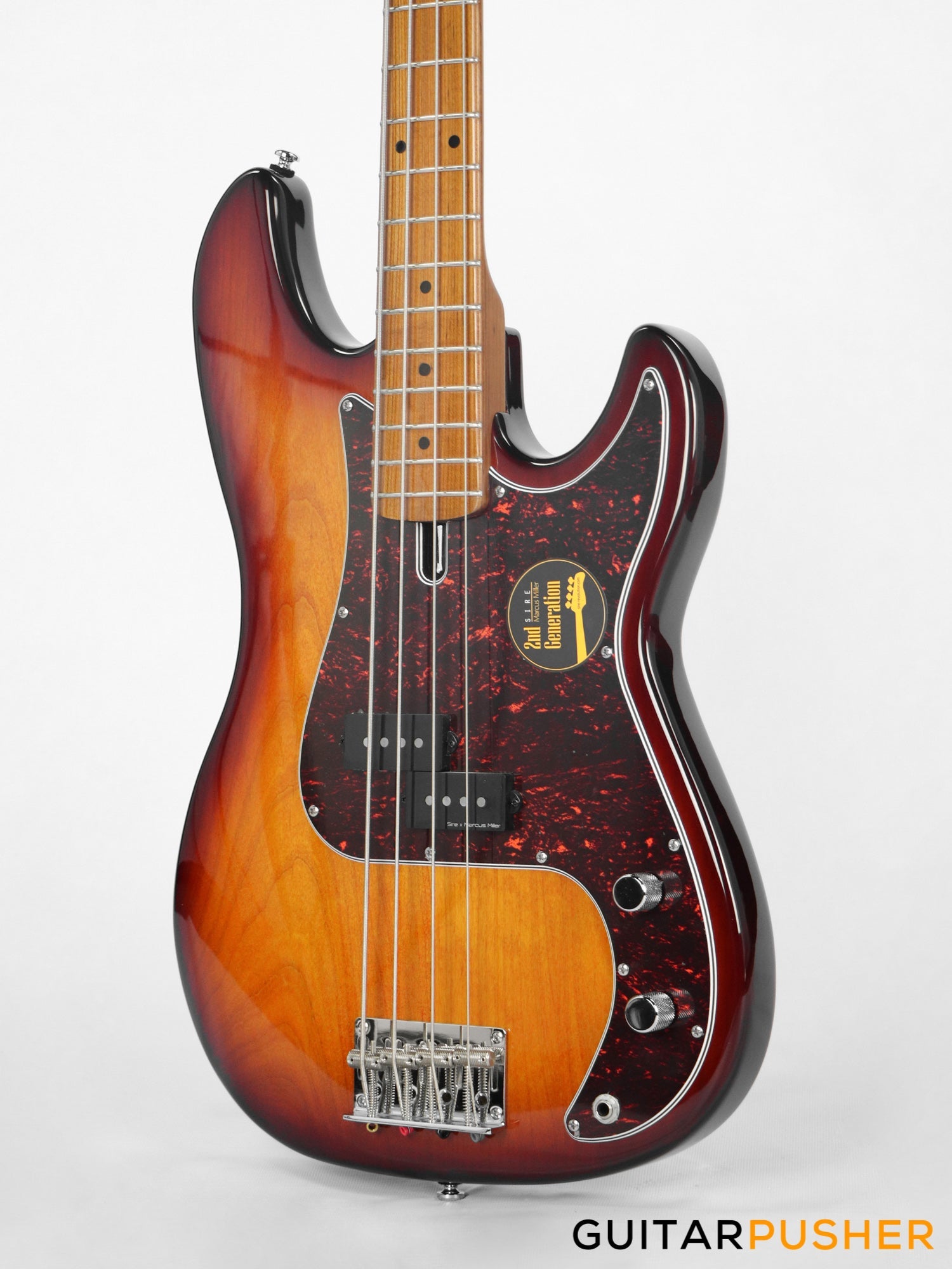 - This P bass' wide neck profile composed of the C-shaped roasted hard maple structure and rolled fretboard edges enhance its playability and maintain its comfortable feel.