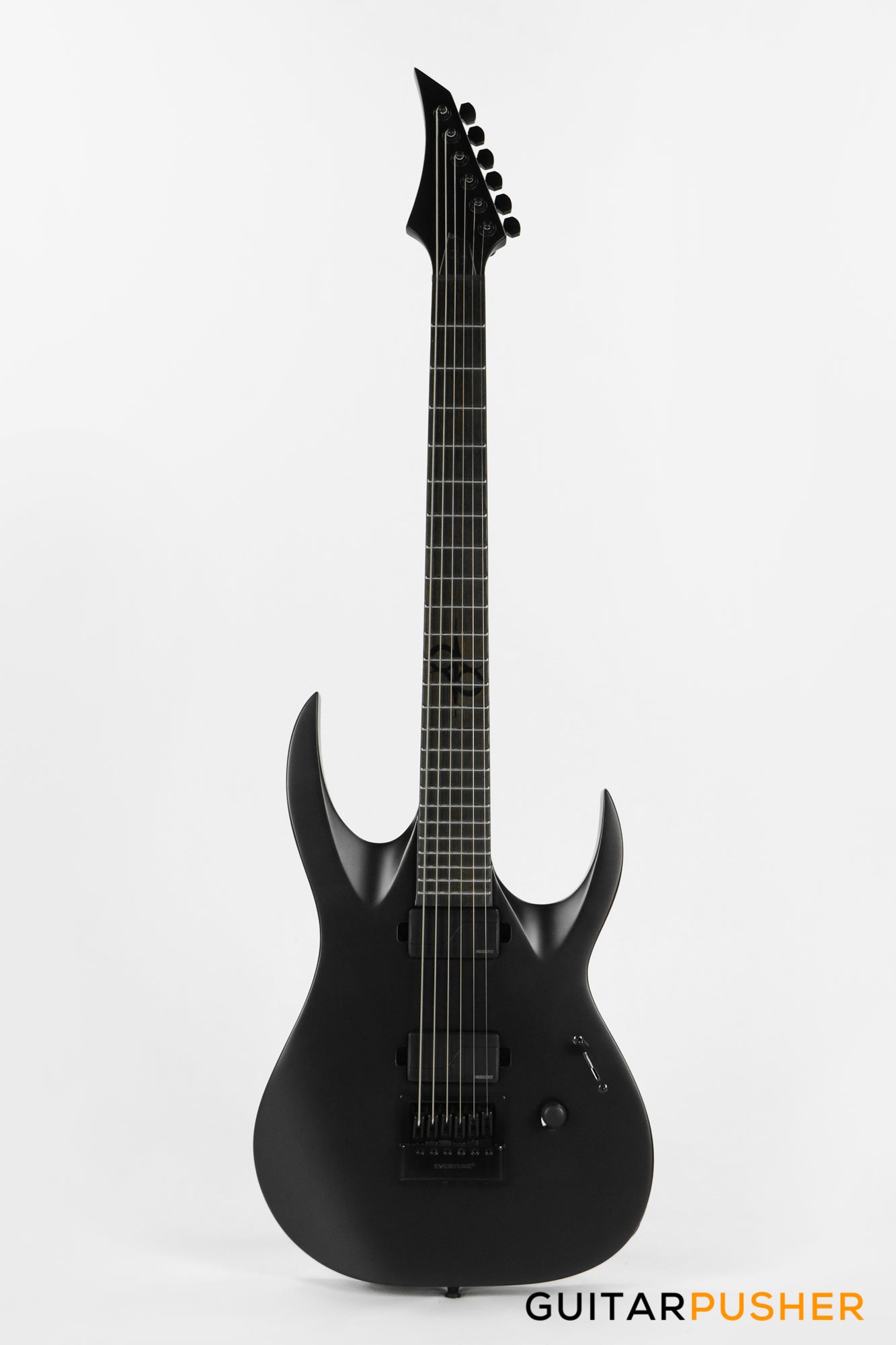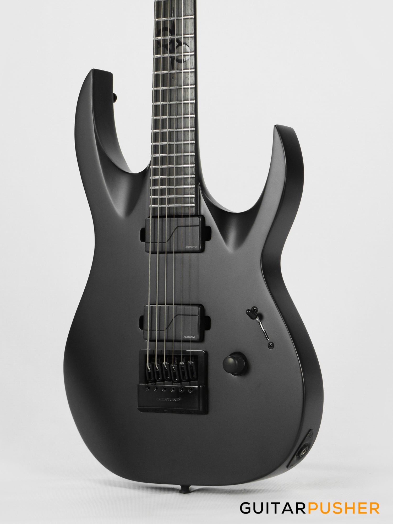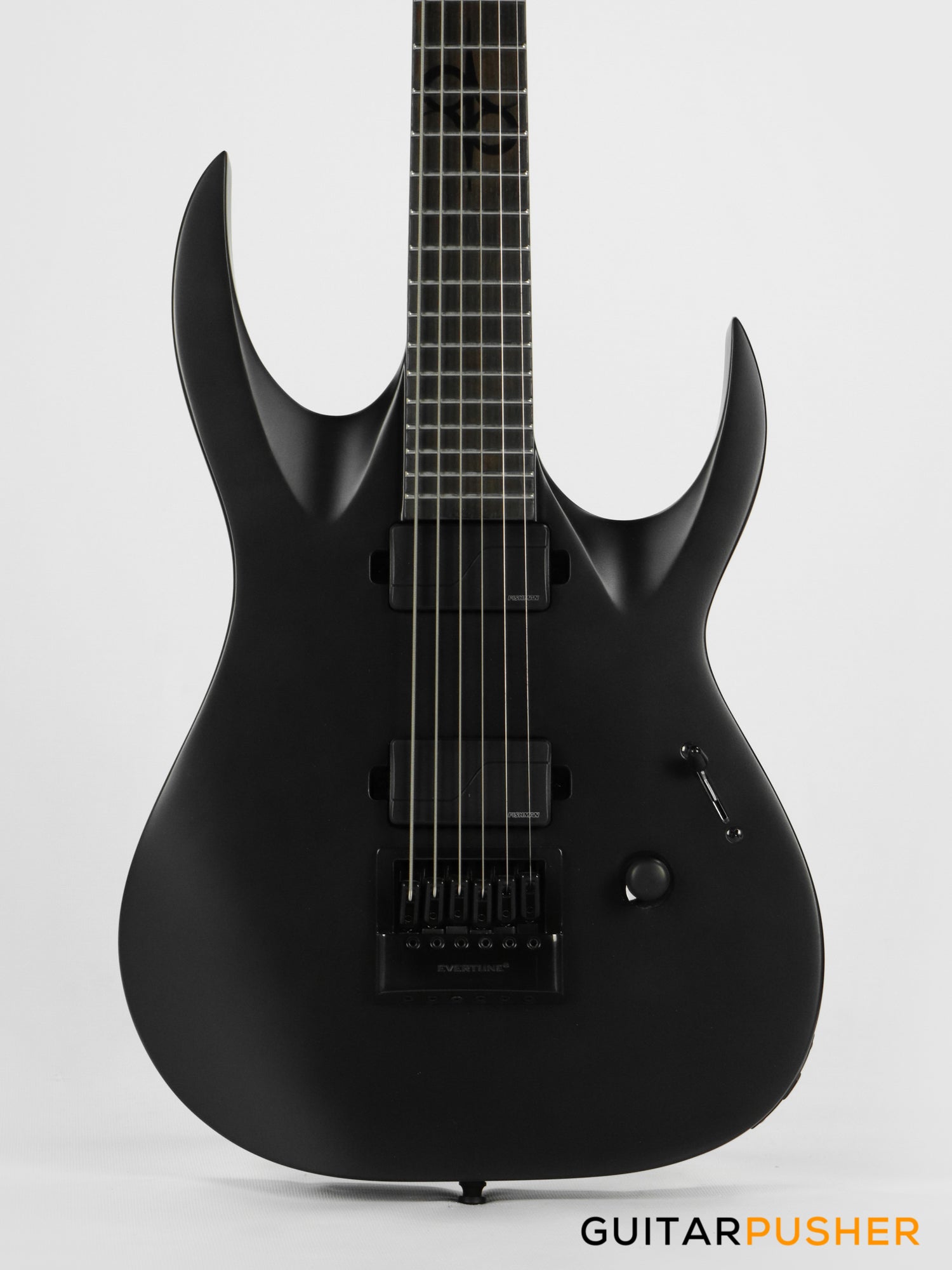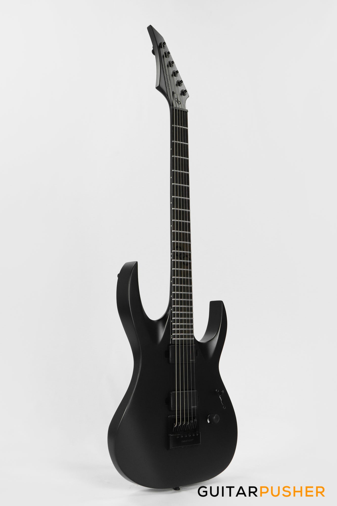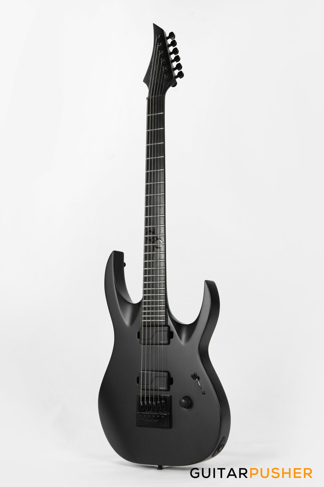 This Type A1.6ATG “At The Gates Artist Series guitar boasts stealth looks, a distinctive cutaway scoop and a remarkable feature set, making it the ultimate, precise and professional instrument of choice for Martin Larsson’s stage and studio work. This guitar features the Evertune® constant-tension bridge—a reliable, fully-mechanical system that keeps the guitar in tune under any circumstances and a pair of Fishman Fluence Modern active humbucker pickups revealing pure, uncorrupted and musical tone. It features a set-thru neck/body joint design with 25,5” scale, an alder body, a fast and thin comfortable maple neck, an ebony fingerboard with 24 super-jumbo stainless steel frets and Luminlay ‘glow in the dark’ side dots for easy stage use. Loaded with Solar 18:1 locking tuners, strap lock style pins, graphite nut, three-way blade switch , push-pull volume knob for voice selection and full access neck. Available in carbon black matte finish including gig bag. 9V Battery is not included.
