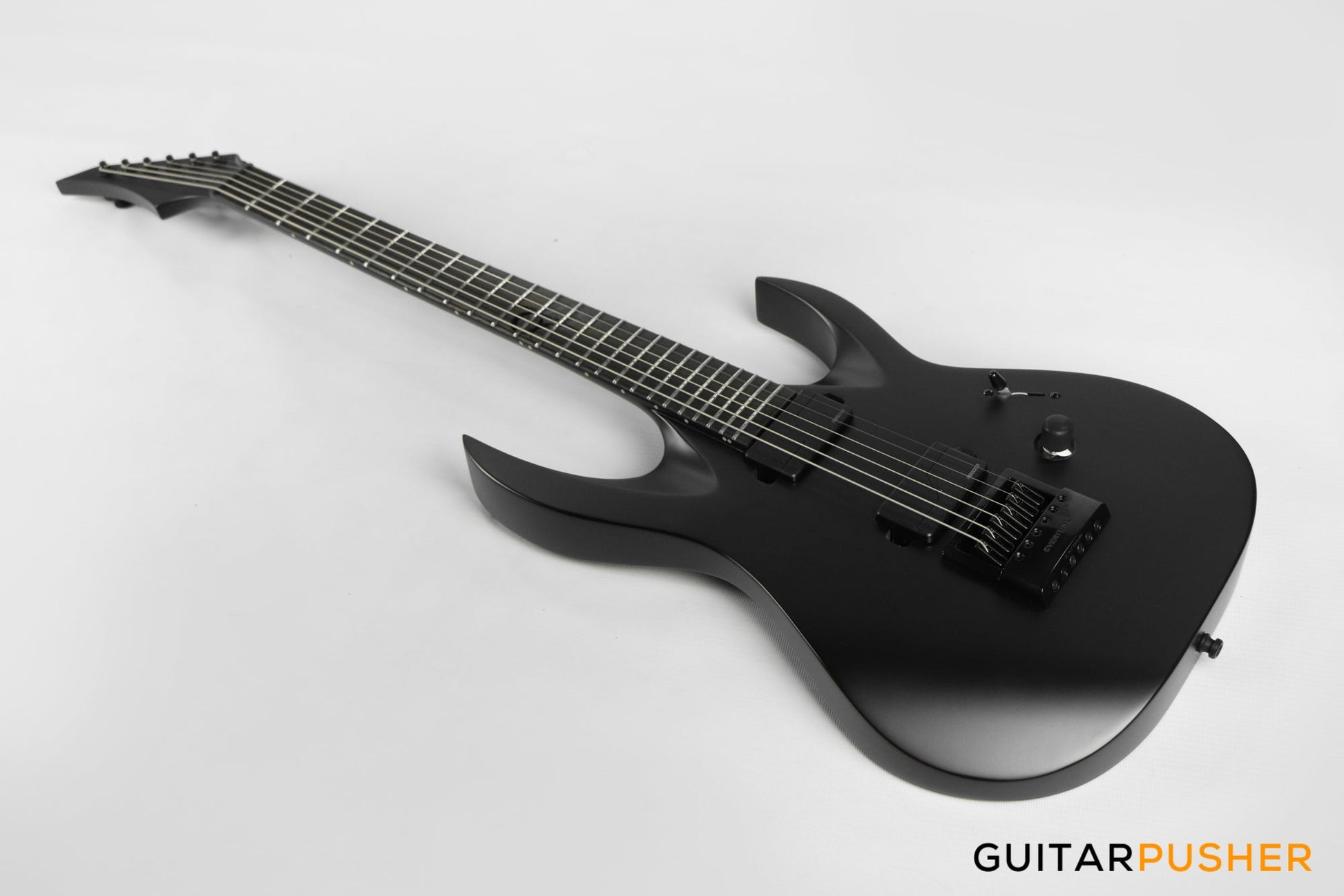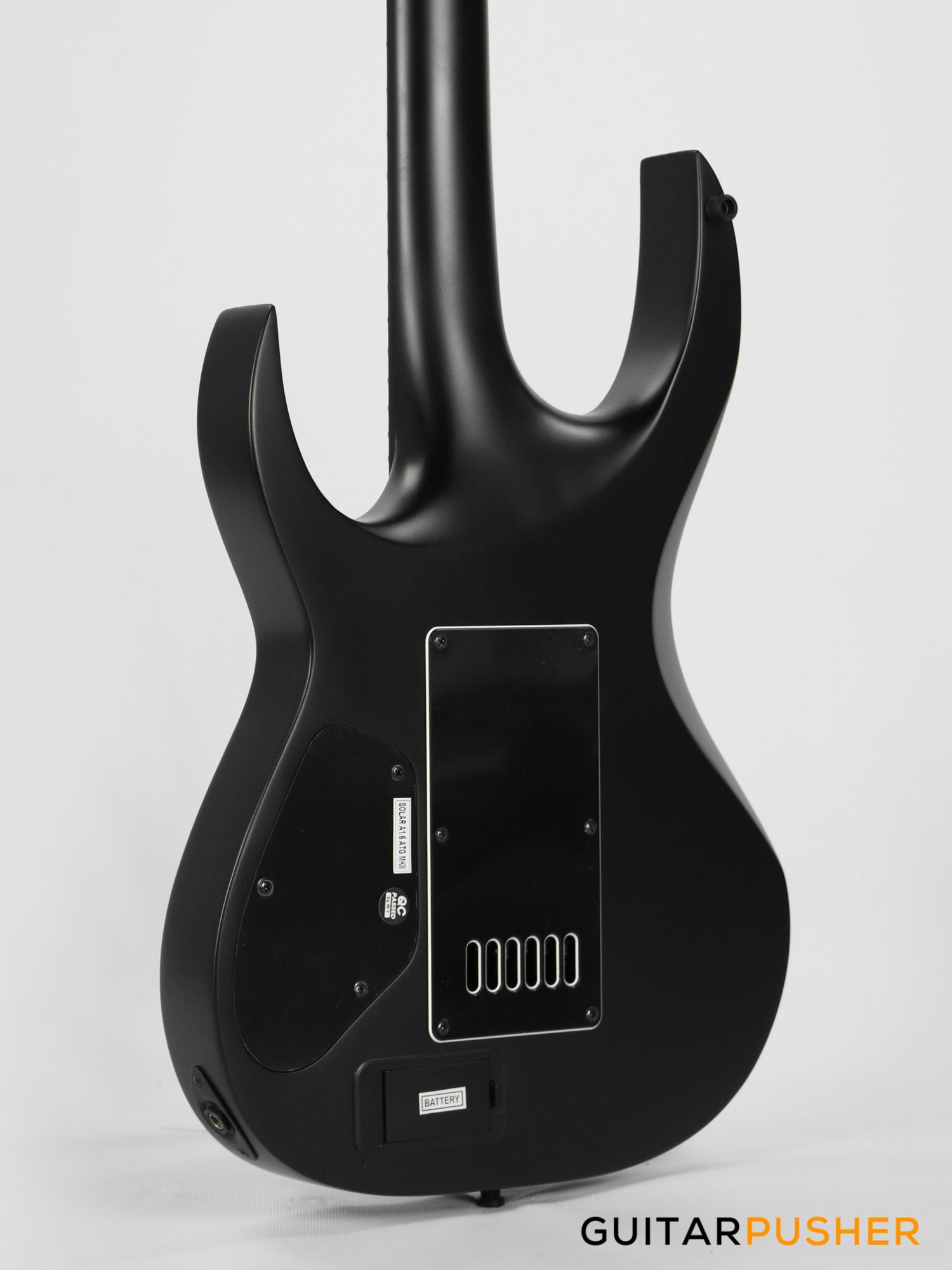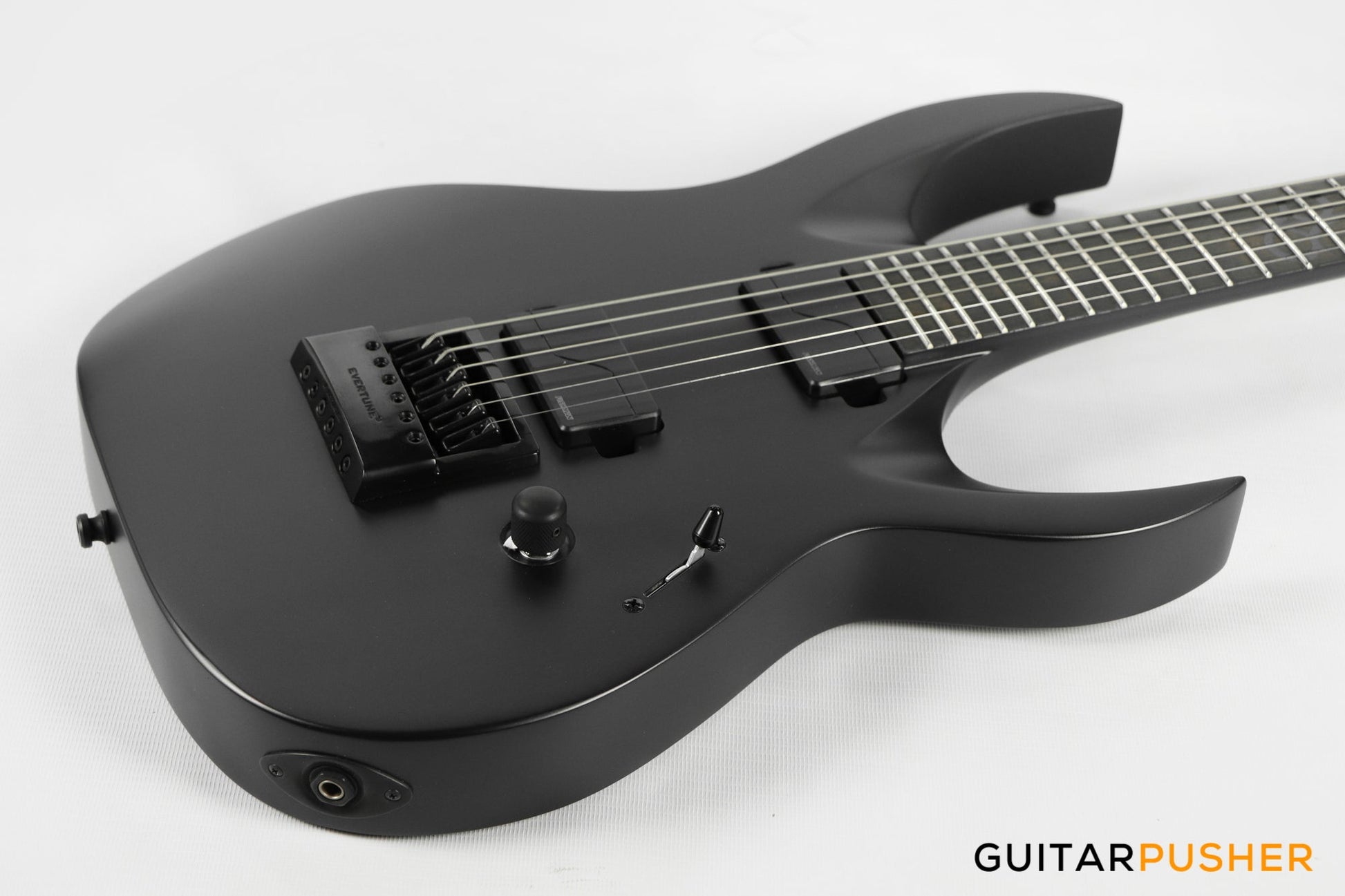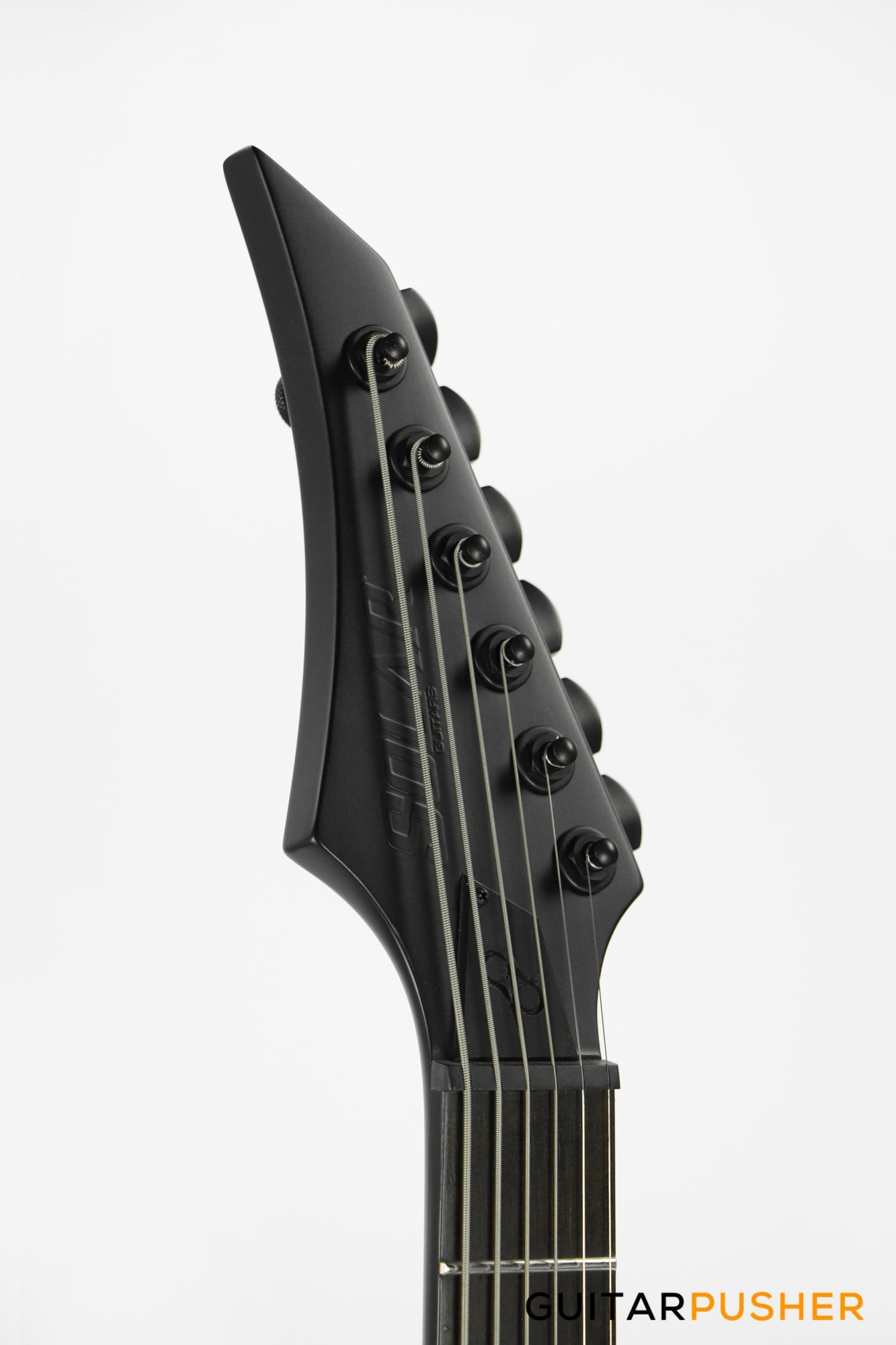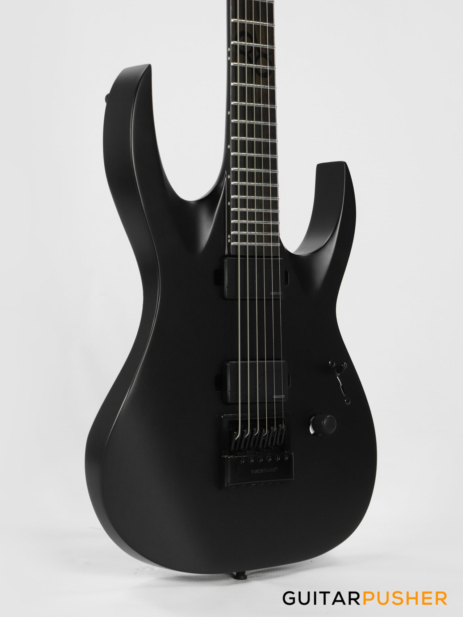 This Type A1.6ATG “At The Gates Artist Series guitar boasts stealth looks, a distinctive cutaway scoop and a remarkable feature set, making it the ultimate, precise and professional instrument of choice for Martin Larsson’s stage and studio work. This guitar features the Evertune® constant-tension bridge—a reliable, fully-mechanical system that keeps the guitar in tune under any circumstances and a pair of Fishman Fluence Modern active humbucker pickups revealing pure, uncorrupted and musical tone. It features a set-thru neck/body joint design with 25,5” scale, an alder body, a fast and thin comfortable maple neck, an ebony fingerboard with 24 super-jumbo stainless steel frets and Luminlay ‘glow in the dark’ side dots for easy stage use. Loaded with Solar 18:1 locking tuners, strap lock style pins, graphite nut, three-way blade switch , push-pull volume knob for voice selection and full access neck. Available in carbon black matte finish including gig bag. 9V Battery is not included.