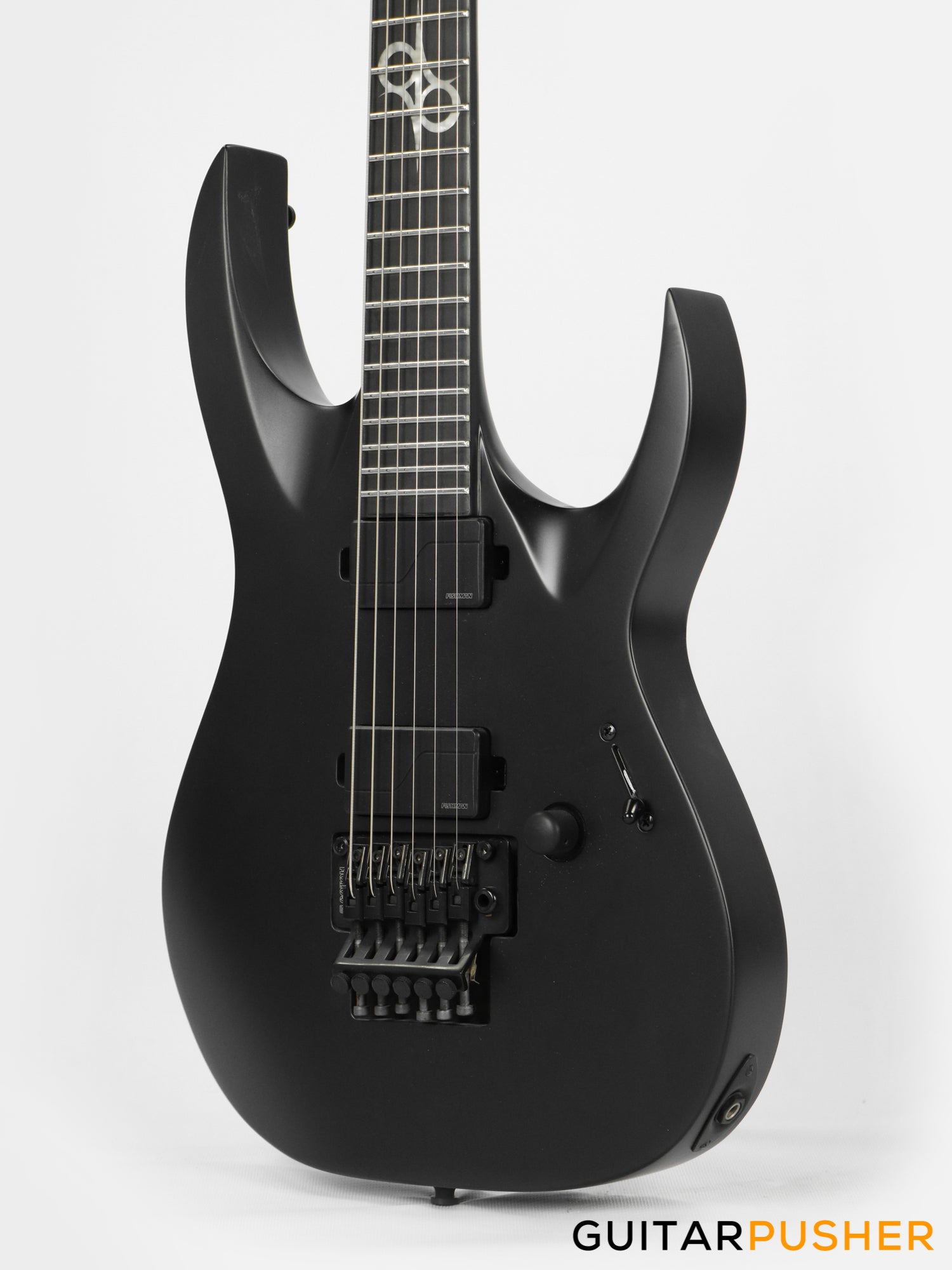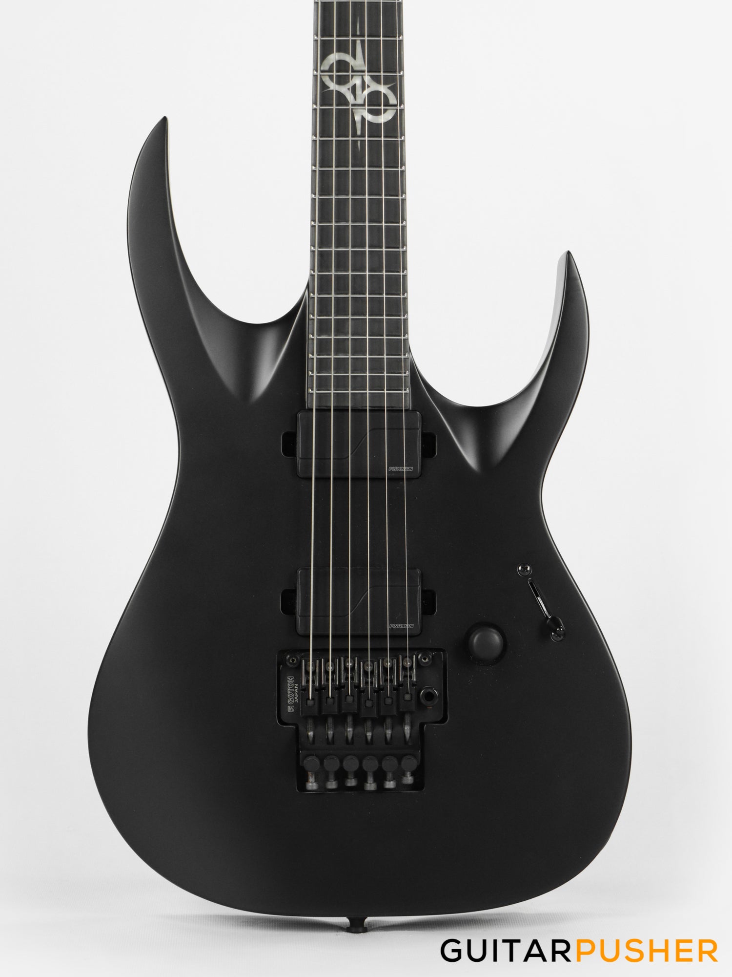 This Type A1.6 “Coroner” six-string guitar boasts stealth looks, a distinctive cutaway scoop and a remarkable feature set, making it the ultimate, precise and professional instrument of choice for Tommy Vetterli’s stage and studio work. The superior and very reliable Gotoh GE1996T tremolo bridge with 12 mm thick / 33 mm long brass block offers increased sustain and resonance while all tremolo springs are mechanically muted. It also features a pair of Fishman Fluence Modern active humbucker pickups revealing pure, uncorrupted and musical tone. The Type A1.6 “Coroner” features a set-thru full access neck/body joint design with 25.5” scale, an alder body, a fast, thin, comfortable maple neck, an ebony fingerboard with 24 super-jumbo stainless steel frets and Luminlay ‘glow in the dark’ side dots for easy stage use. Loaded with Solar 18:1 locking tuners, locking nut, 1 Volume with push/pull for voice change and 3 way blade switch it is available in carbon black matte finish. NOTE: 9V Battery is not included.