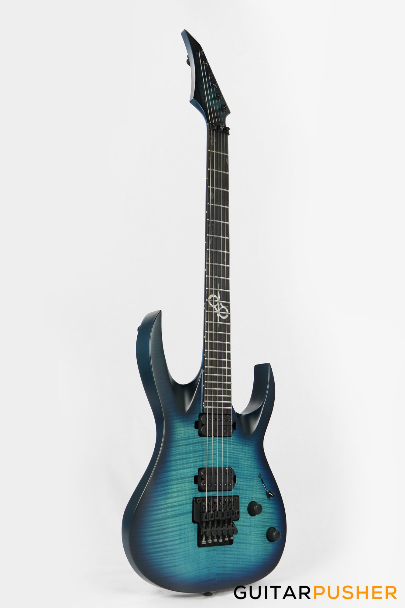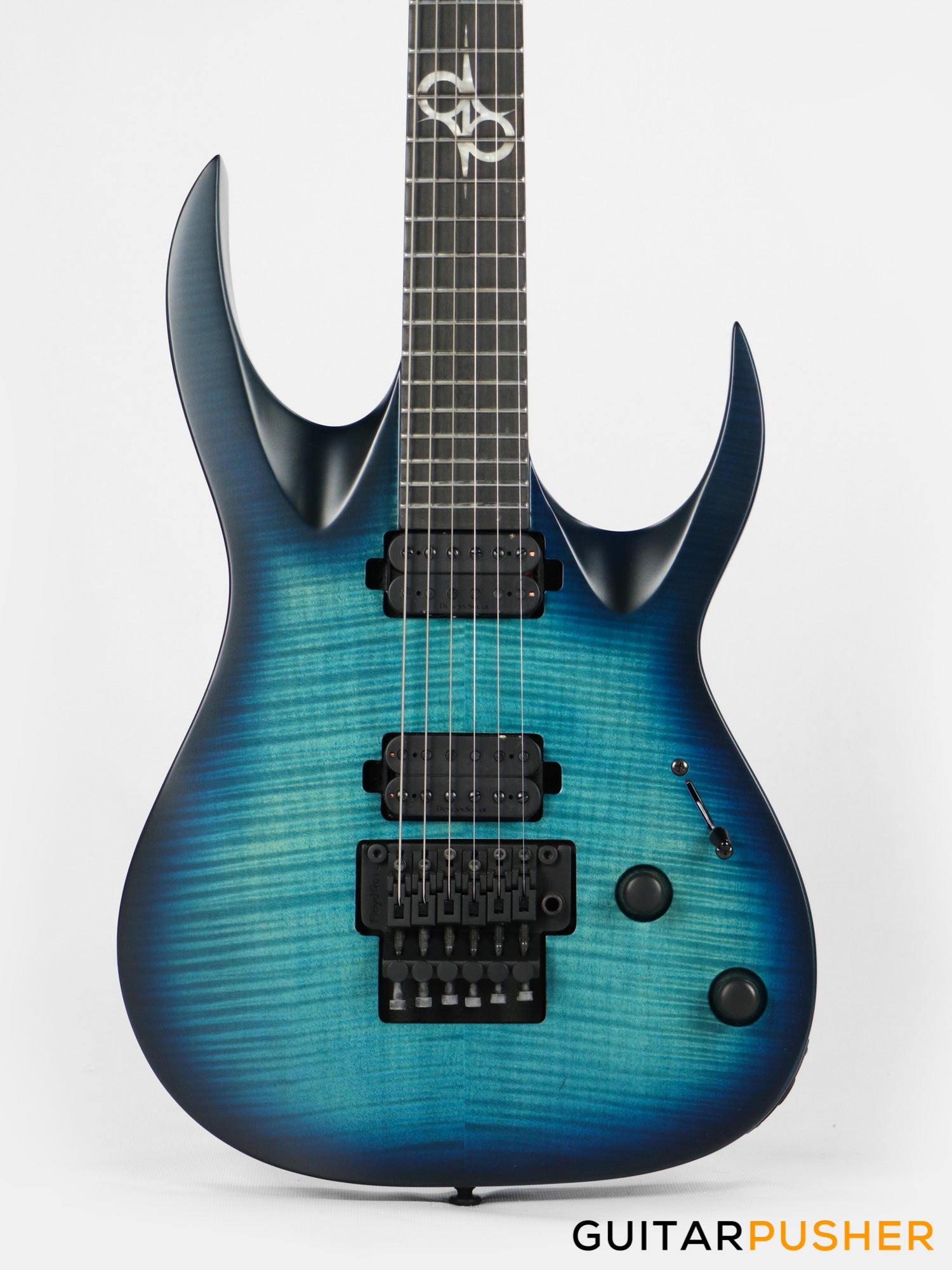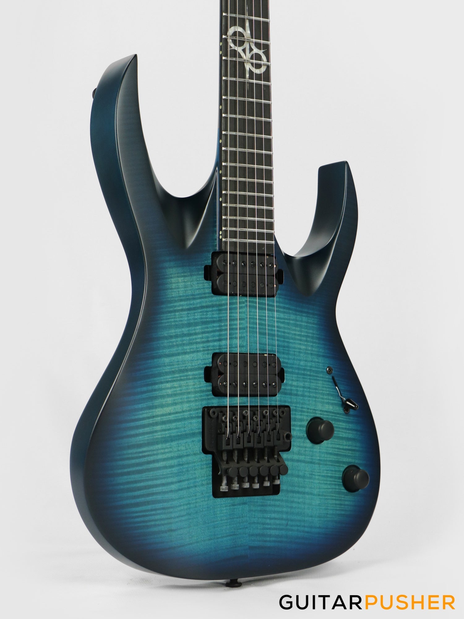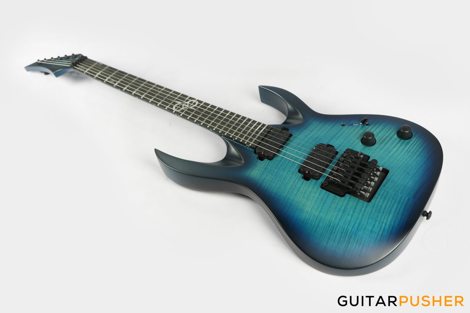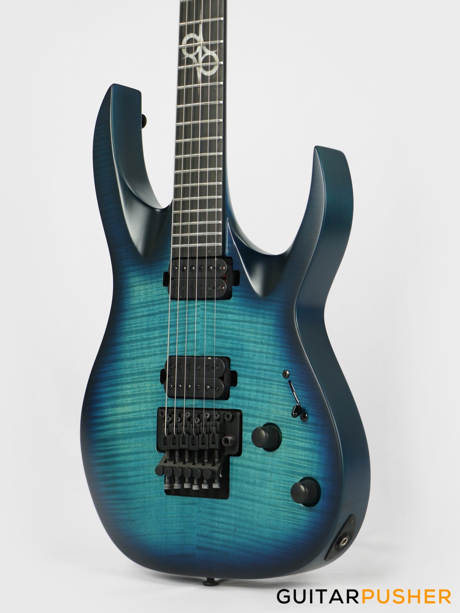 This Type A1.6FR six-string guitar boasts stealth looks, a distinctive cutaway scoop and a remarkable feature set, making it the ultimate, precise and professional instrument suitable for both stage and studio work. The reliable Floyd Rose 1000, made of hardened steel combined with an oversized block, offers increased sustain and resonance while all tremolo springs are mechanically muted. It also features Duncan Solar pickups that provide a full spectrum of tonal options, from organic clean to heavily overdriven, all with fluid sustain and maximum clarity.The Type A1.6 features a set-thru neck/body joint design with 25.5” scale, an alder body with flame maple veneer top, a fast, thin, comfortable maple neck, an ebony fingerboard with 24 super-jumbo stainless steel frets and Luminlay ‘glow in the dark’ side dots for easy stage use. Loaded with Solar 18:1 locking tuners, locking nut, five-way blade pickup switching and full access neck. Available in flame ocean blue matte finish.