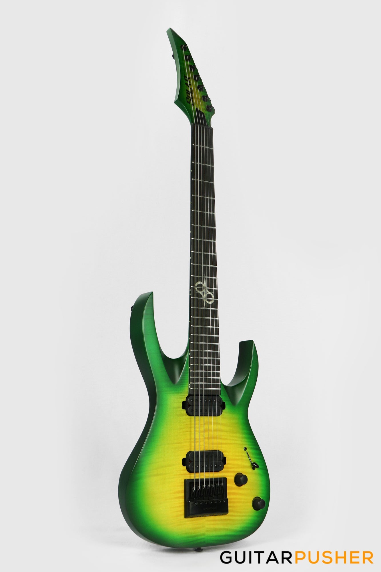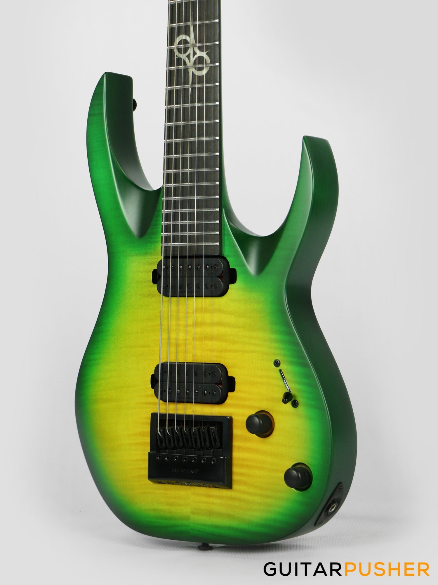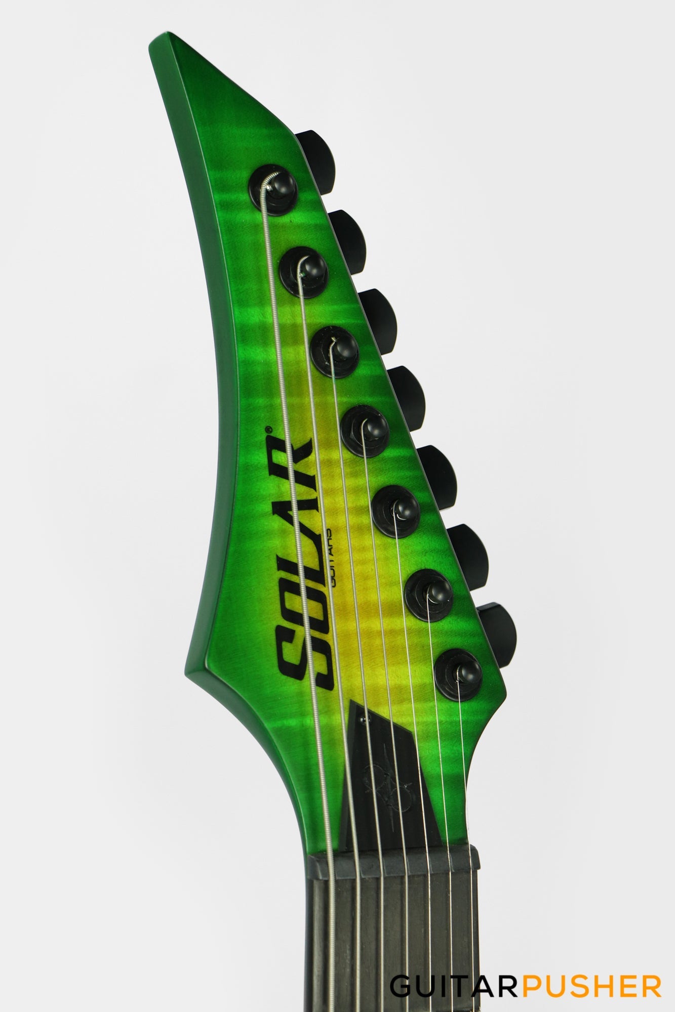 Solar Guitars A1.7LB Flame Lime Burst 7-String Electric Guitar w/ Evertune Bridge