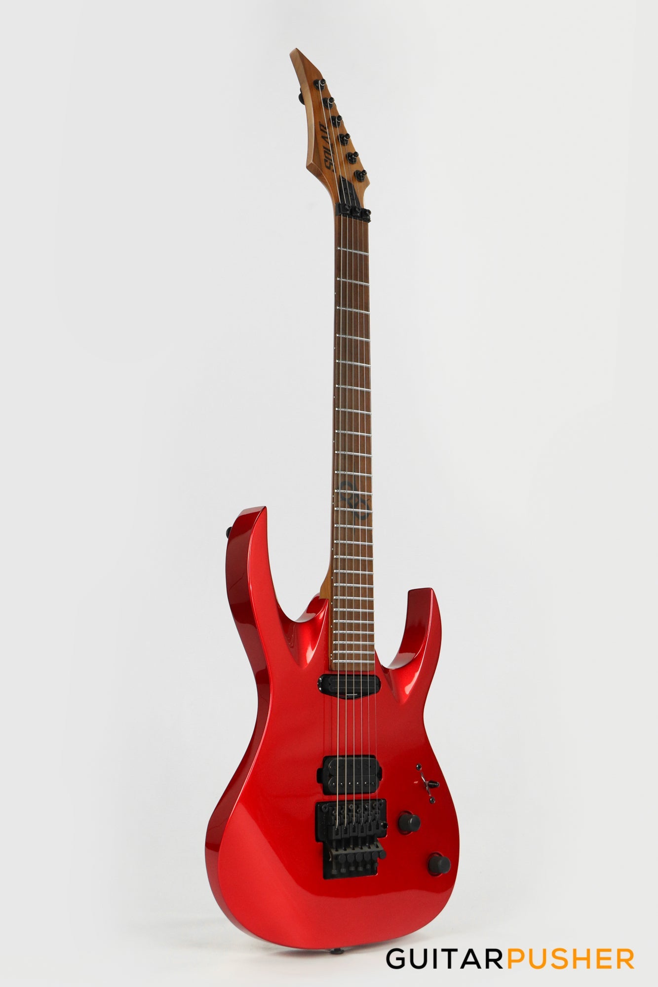 This Type AB1.6 six-string bolt-on guitar boasts stealth looks, a distinctive cutaway scoop and a remarkable feature set, making it the ultimate, precise and professional instrument suitable for both stage and studio work. The reliable Floyd Rose 1000, made of hardened steel combined with an oversized block, offers increased sustain and resonance while all tremolo springs are mechanically muted. It also features Duncan Solar pickups that provide a full spectrum of tonal options, from organic clean to heavily overdriven, all with fluid sustain and maximum clarity.The Type AB1.6 features a bolt-on neck joint design with 25.5” scale, an alder body, a fast, thin, comfortable roasted maple neck, a roasted maple fingerboard with 24 super-jumbo stainless steel frets, Luminlay ‘glow in the dark’ side dots for easy stage use. Loaded with Solar 18:1 locking tuners, graphite nut, 3-way blade switch with volume and tone push pull for series parallel pickup switching. Available in candy apple red metallic finish.