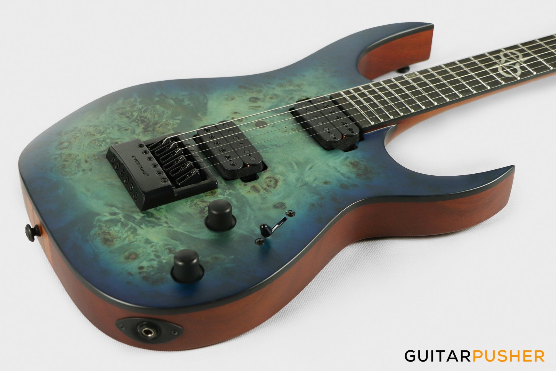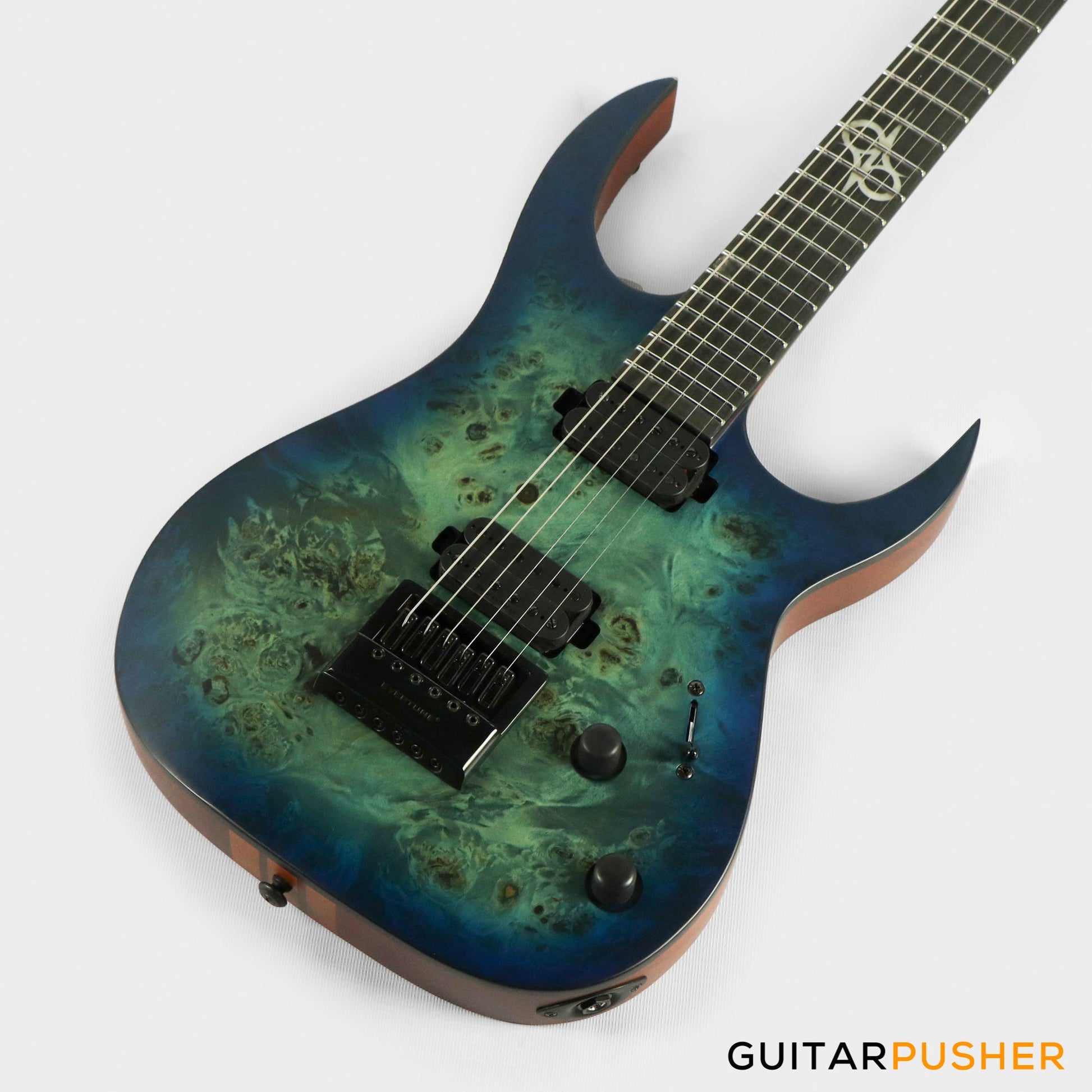 This Type S1.6BLB Poplar Burl guitar combines our dedicated craftsmanship, skill and care for detail with a remarkable feature set, making it the ultimate, precise and professional instrument suitable for both stage and studio work. The S1.6 features the Evertune® constant-tension bridge—a reliable, fully-mechanical system that keeps the guitar in tune under any circumstances. It is loaded with Duncan Solar pickups that provide a full spectrum of tonal options, from organic clean to heavily overdriven, all with fluid sustain and maximum clarity. This Type S1.6BLB guitar has a neck-through construction with 25.5” scale, a poplar burl veneer over mahogany body with black binding, a fast C-shaped thin 5-ply mahogany/jatoba neck, an ebony fingerboard with 24 super-jumbo stainless steel frets and Luminlay ‘glow in the dark’ side dots for easy stage use. It comes loaded with Solar 18:1 locking tuners, graphite nut, five-way blade pickup switching and full access neck. Available in blue burst matte finish.